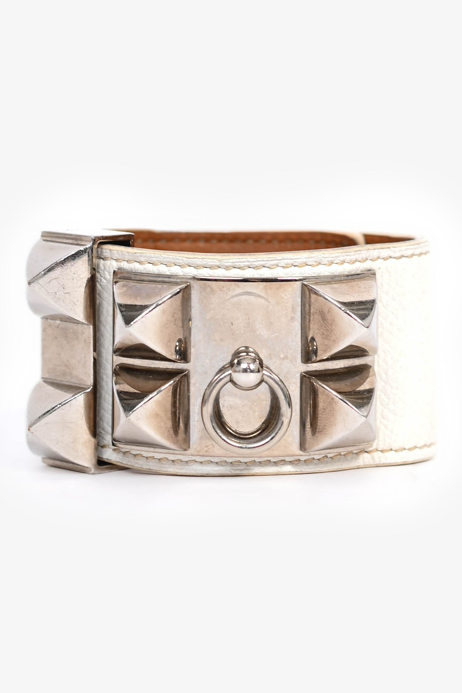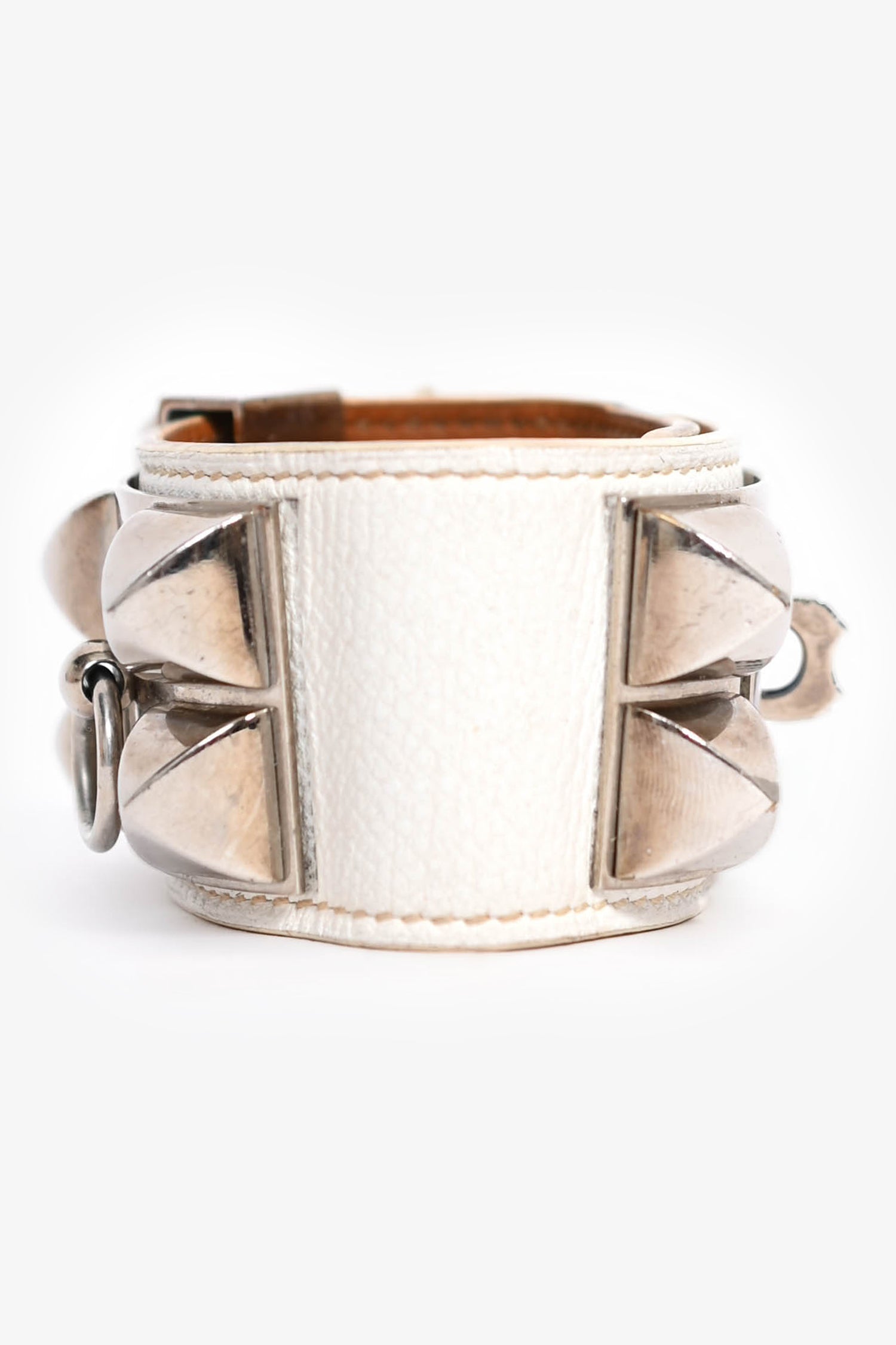 Refresh availabilityHermès 2014 White Epsom Leather Collier De Chien Bracelet PHW. Palladium hardware. Pull-through closure. Coated trimming. Tonal stitching.