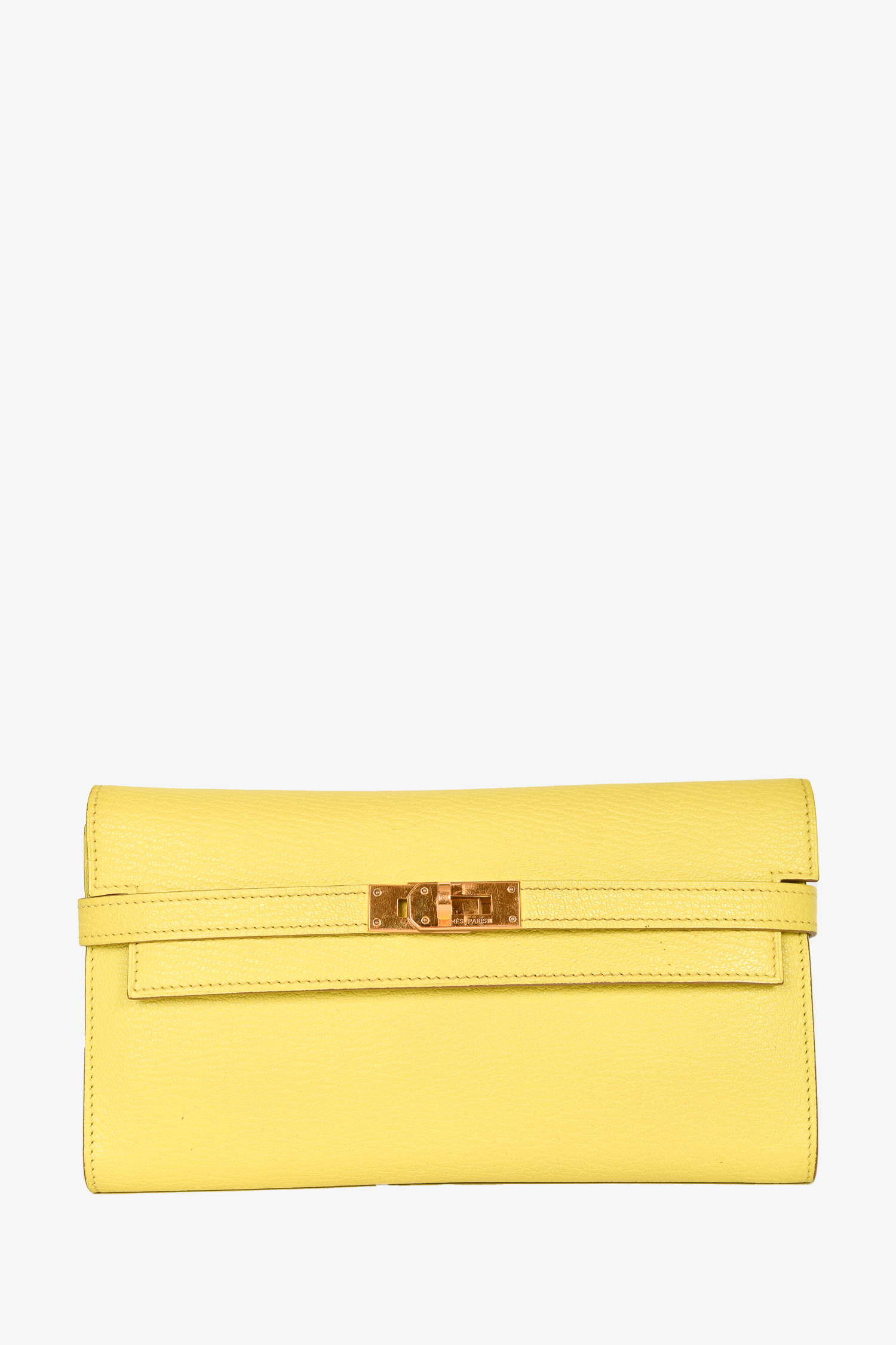 Hermès 2014 Yellow Chevre Leather Kelly Wallet