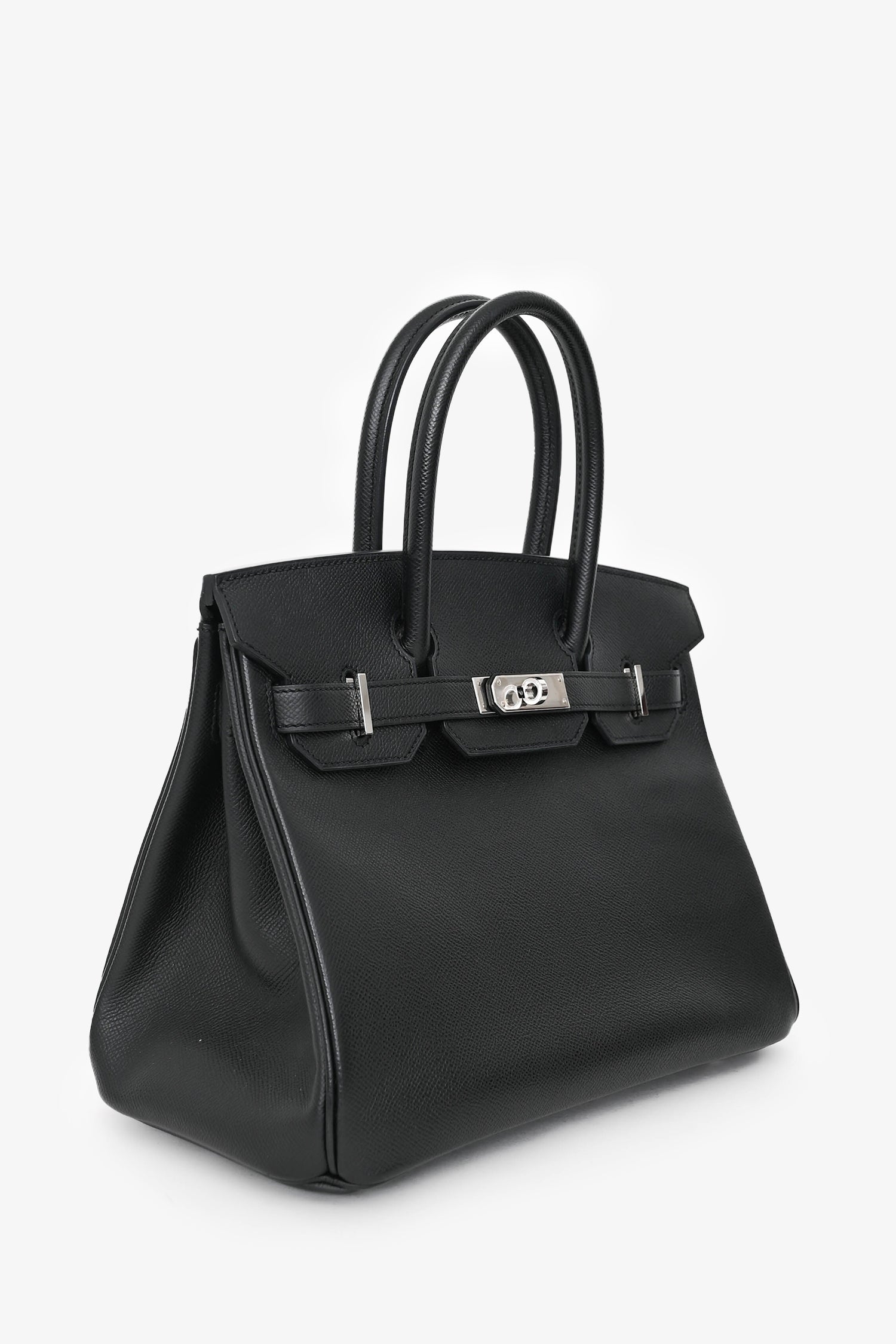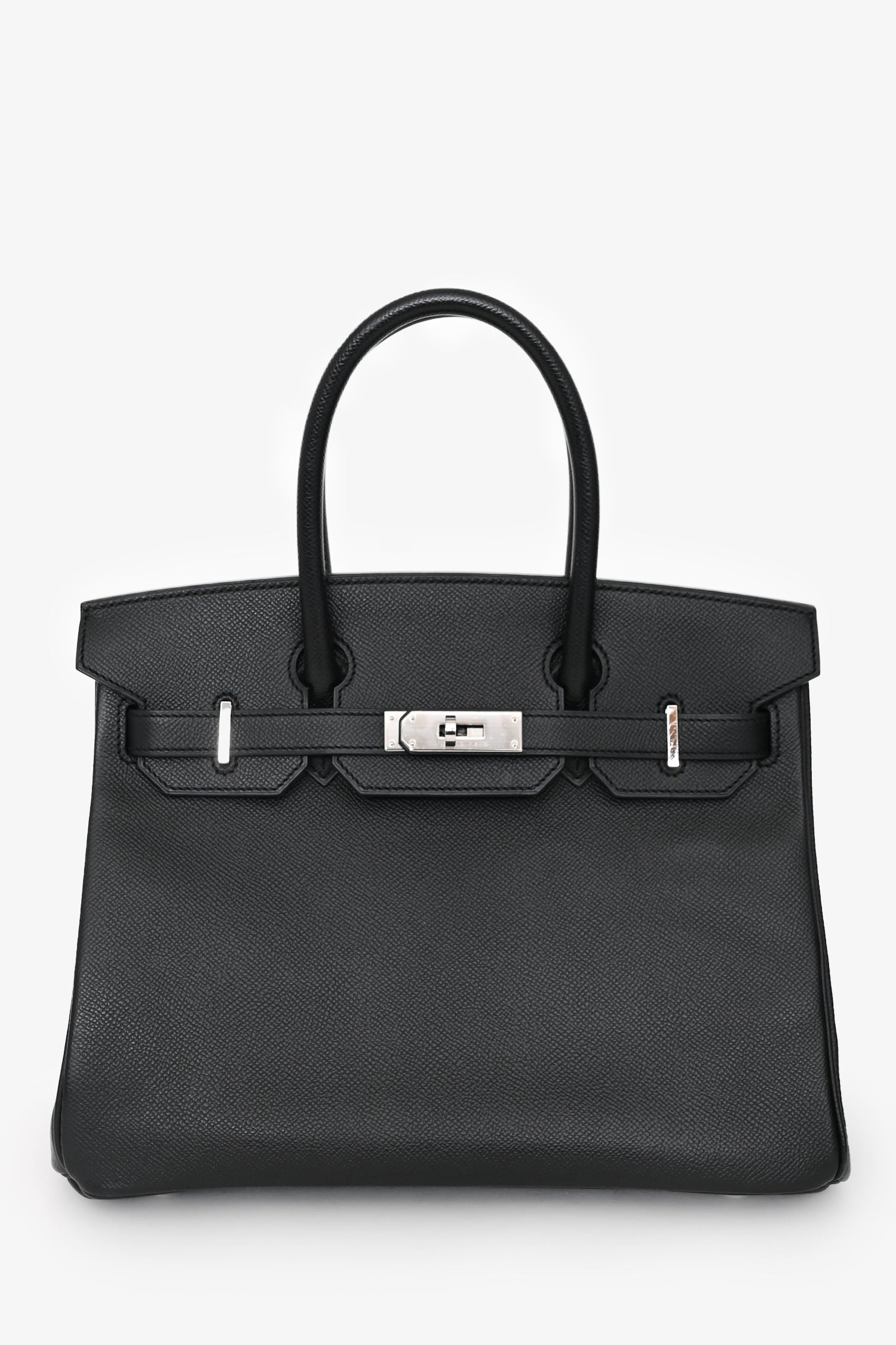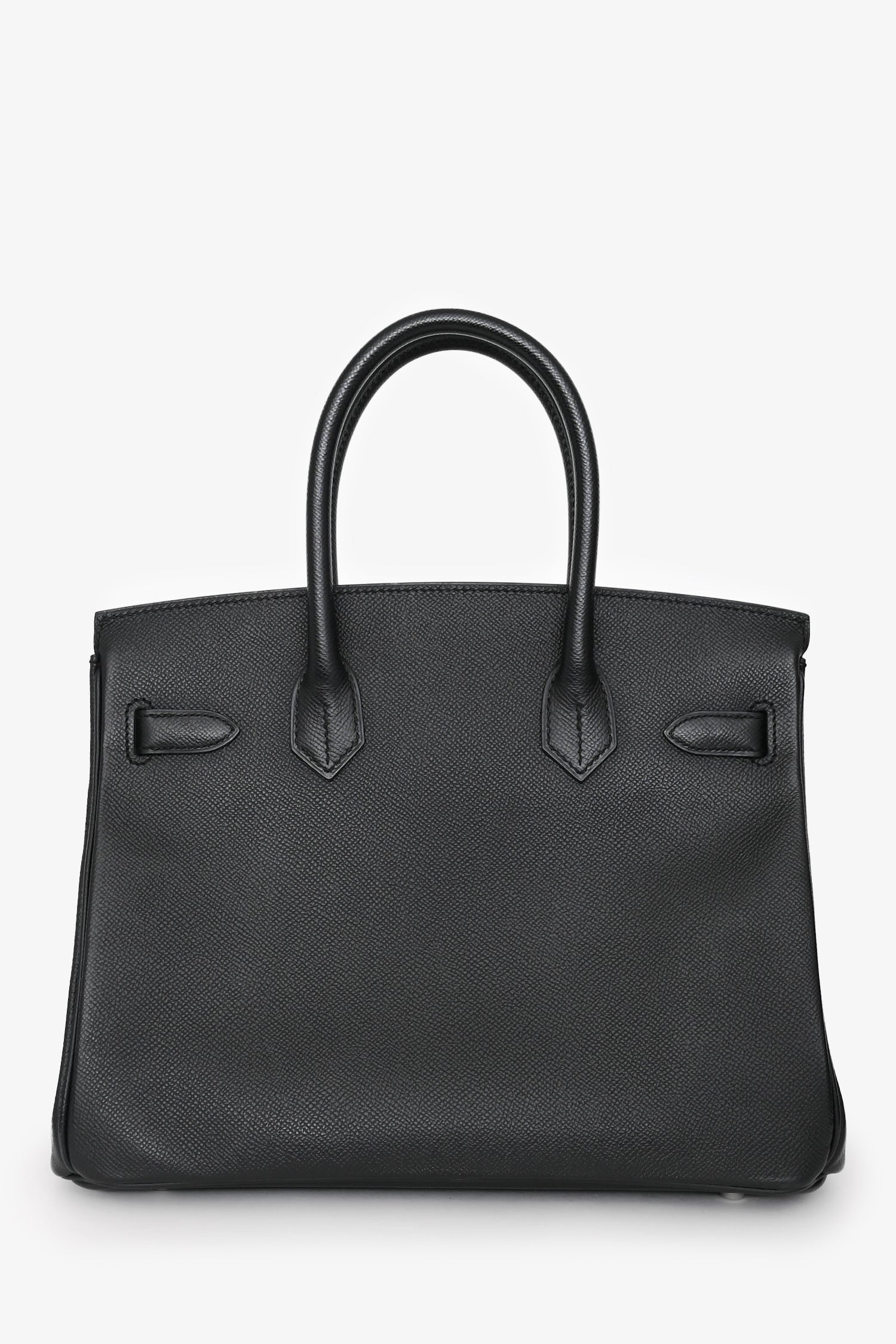 Refresh availabilityHermès 2017 Black Epsom Birkin 30. Front turn-lock closure. Dual rolled top handles. Protective base studs. Single interior compartment with a wall slip and zip pocket. Silver-tone hardware. Tonal stitching. Inclusions; clochette with keys and lock.