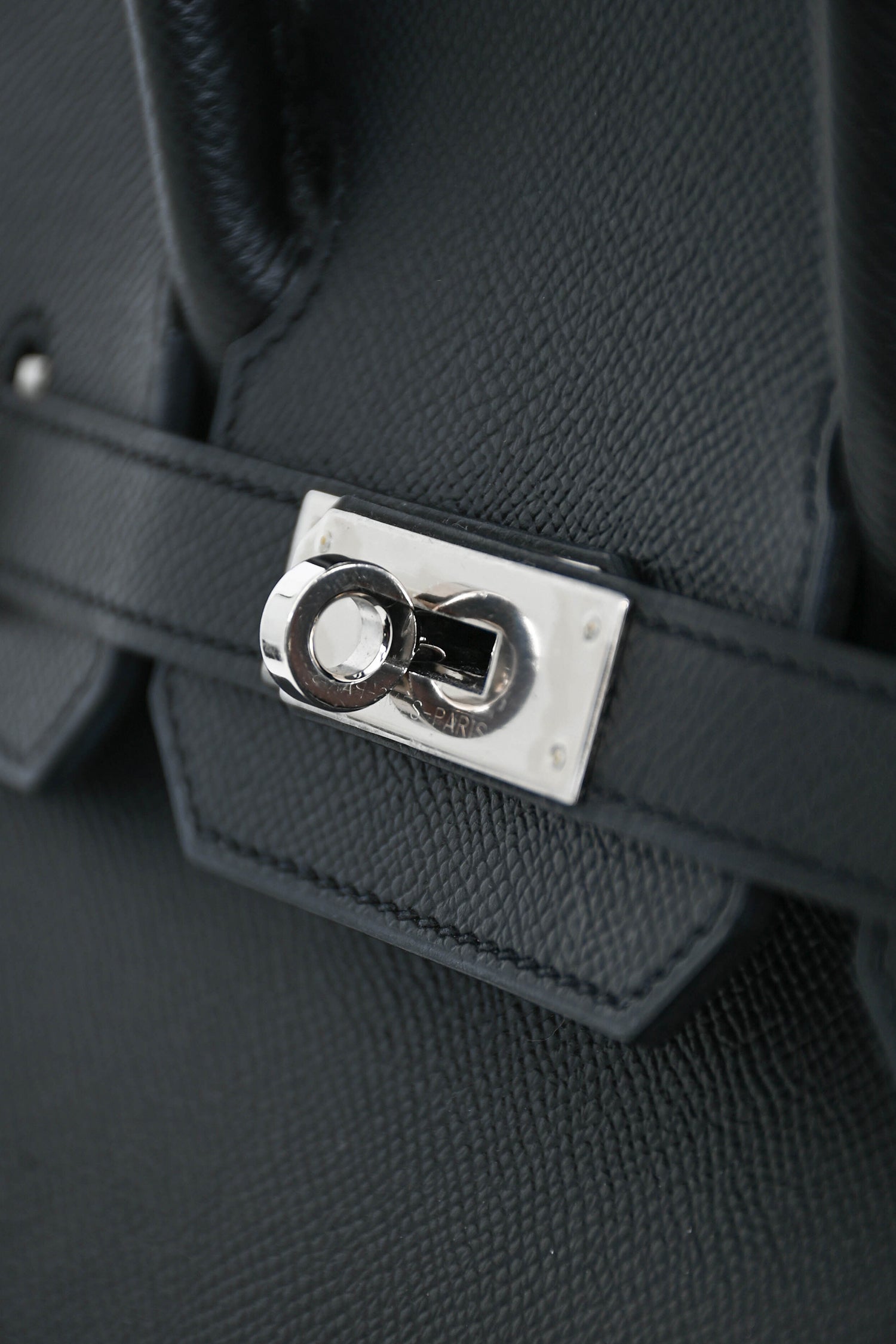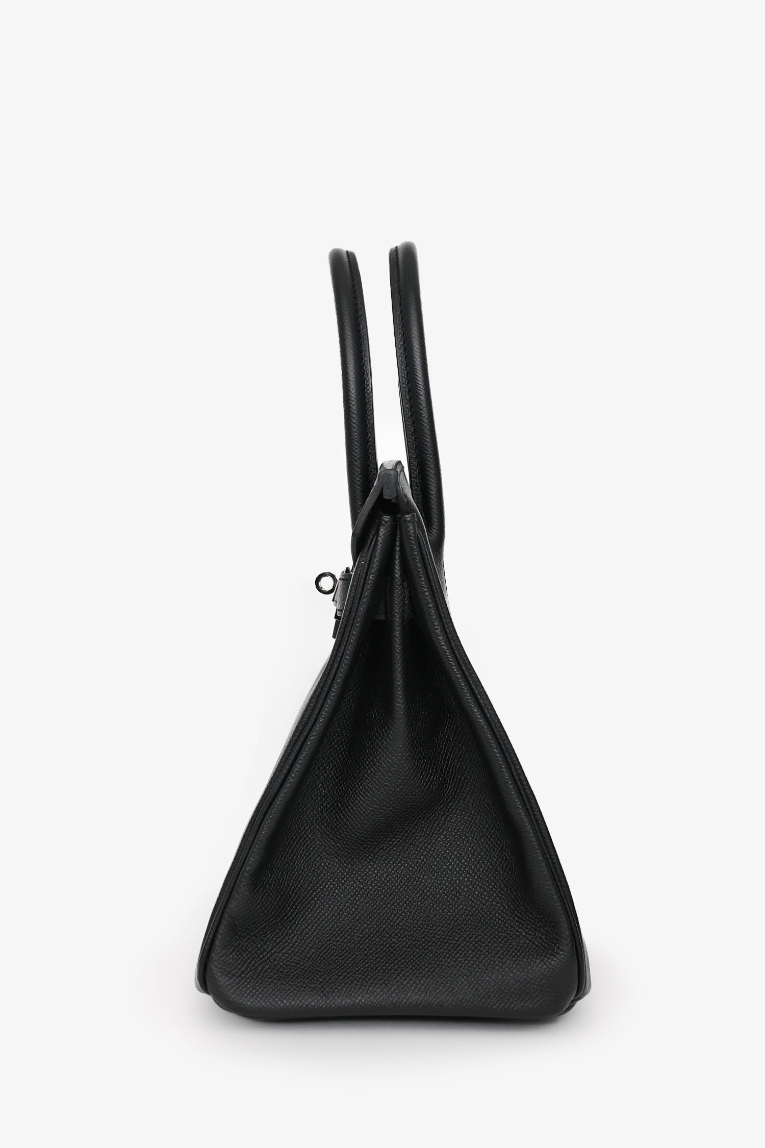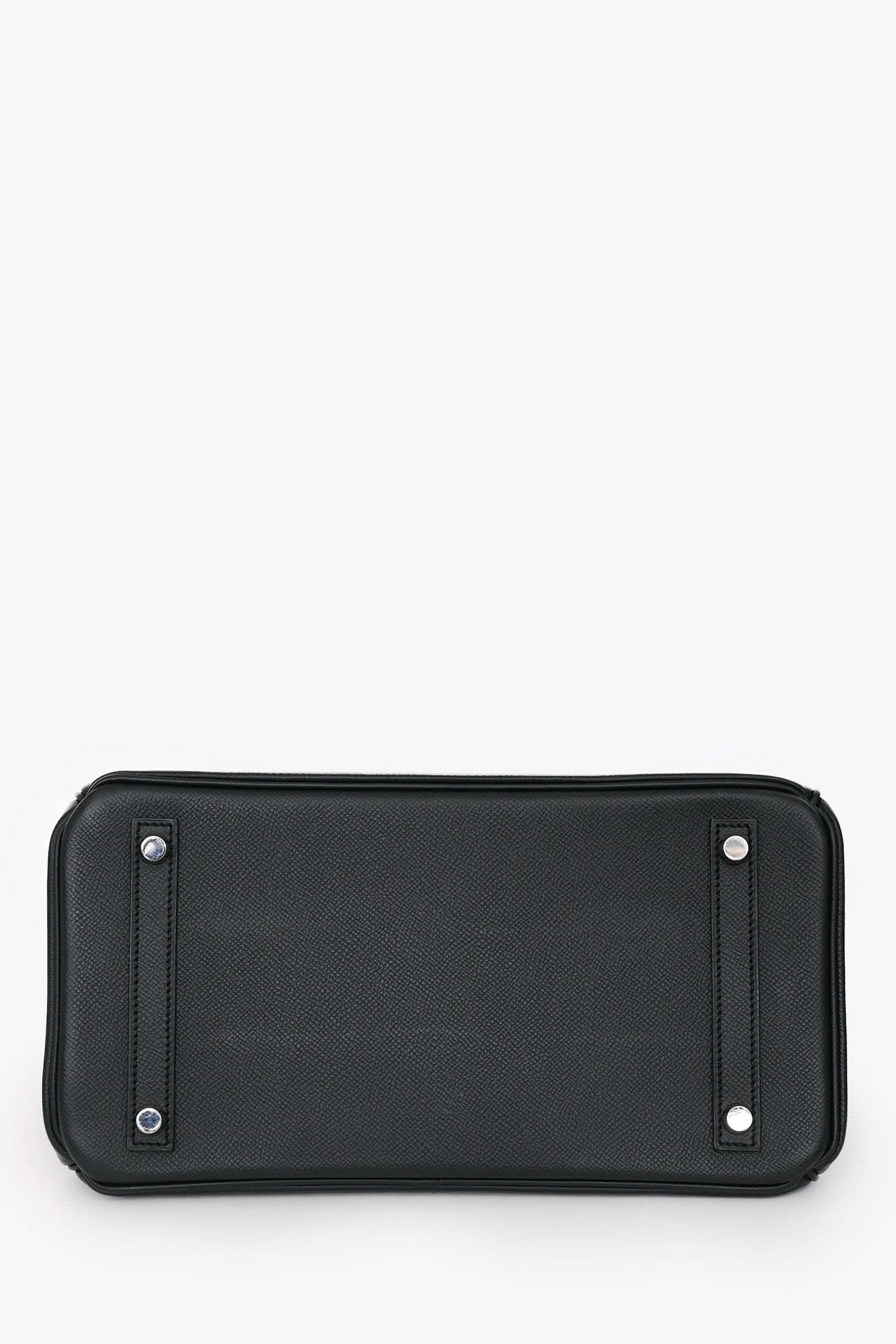 Refresh availabilityHermès 2017 Black Epsom Birkin 30. Front turn-lock closure. Dual rolled top handles. Protective base studs. Single interior compartment with a wall slip and zip pocket. Silver-tone hardware. Tonal stitching. Inclusions; clochette with keys and lock.