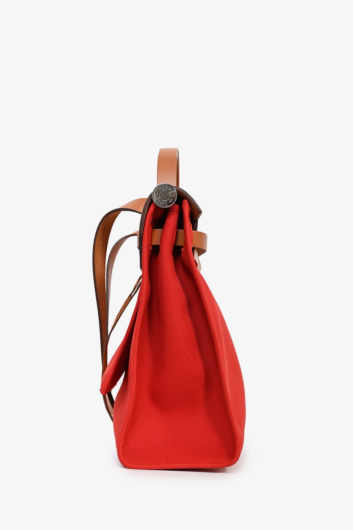 Hermès 2017 Red Canvas/Brown Leather Herbag 31