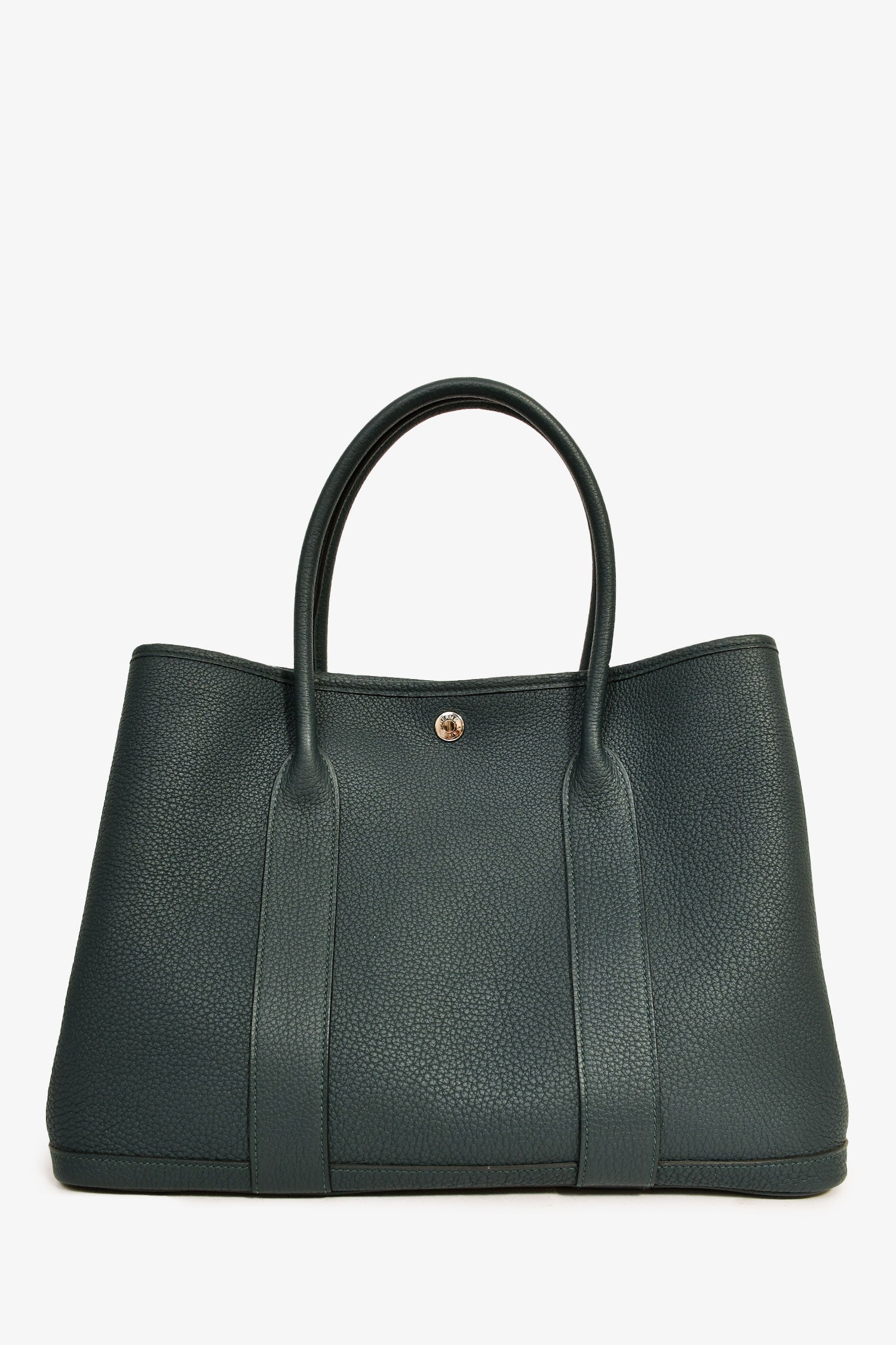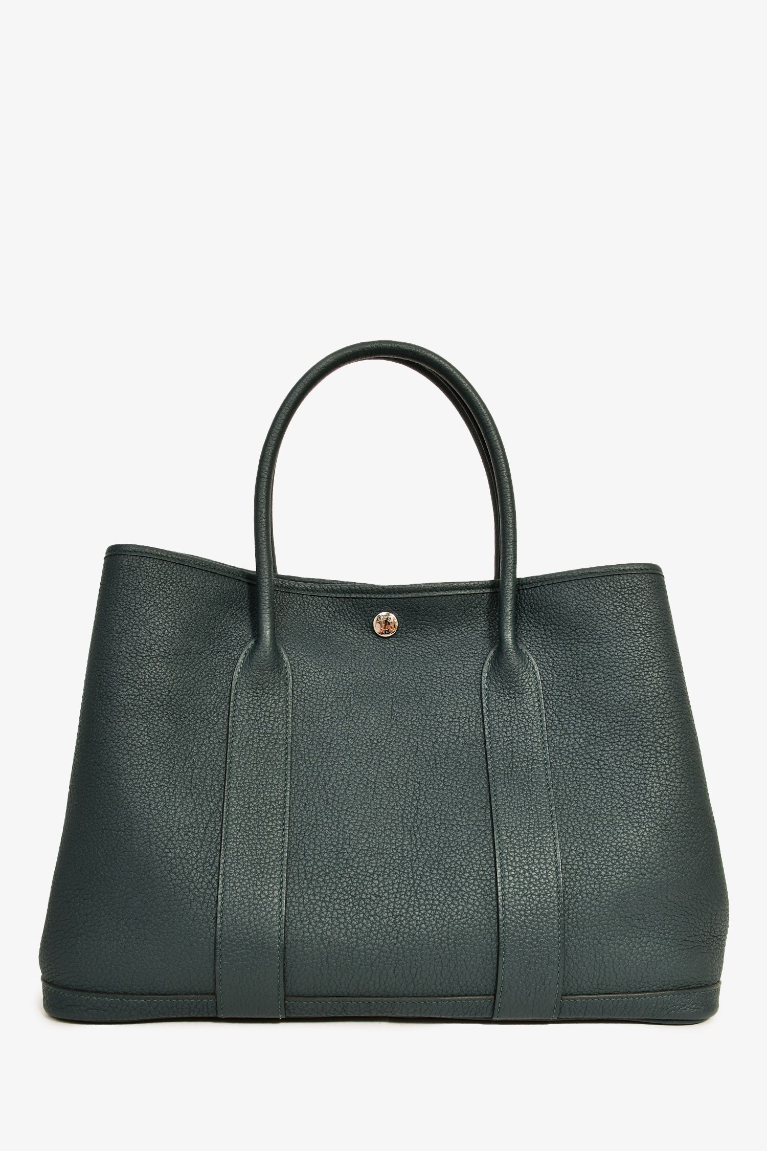 Refresh availabilityHermès 2019 Green Leather Garden Party 36. Rolled top handles. Concealed snap closure. Lined interior. Zipped interior compartment. Side snap closures. Tonal stitching.