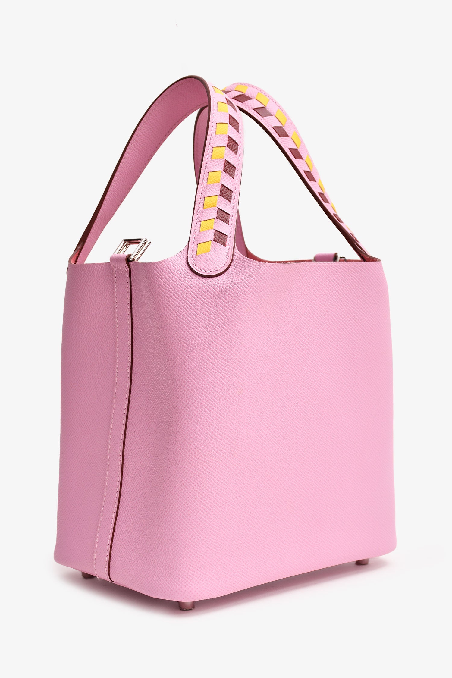 Refresh availabilityHermès 2019 Mauve Epsom Leather Tressage de Cuir Picotin Lock 18. Silver-tone hardware. Bag insert included. Top buckle closure. Tonal stitching.