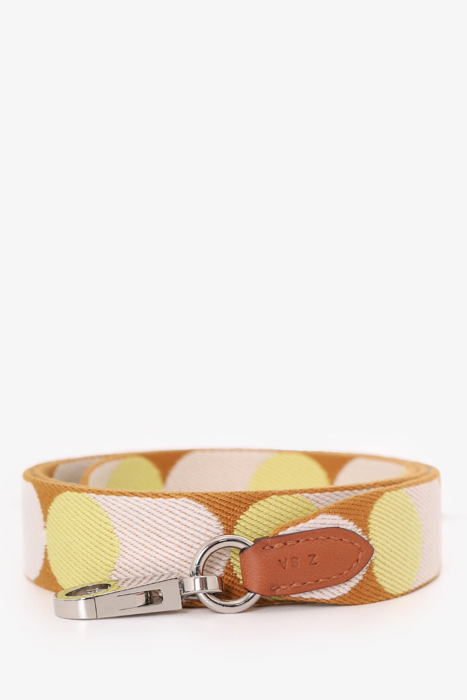 Refresh availabilityHermès 2021 Yellow/Brown Toile Sangle Flipperball 25mm To Go Bag Strap. Lobster claps closure. Tonal stitching.