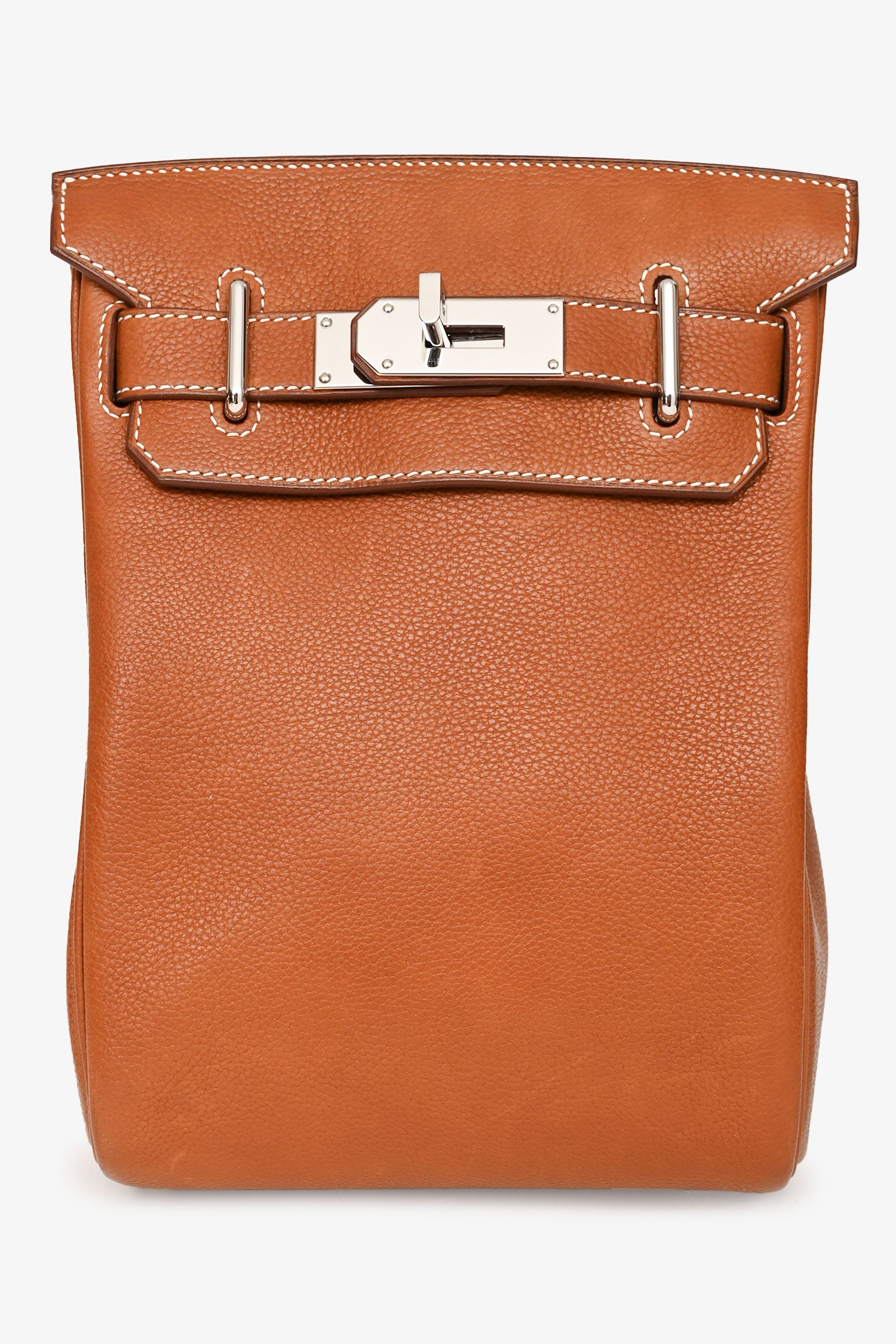 Refresh availabilityHermès 2022 Barenia Leather Hac A Dos PM Backpack. Structured silhouette. Adjustable single crossbody strap. Palladium-tone hardware. Interior leather slip pocket. Tonal stitching.