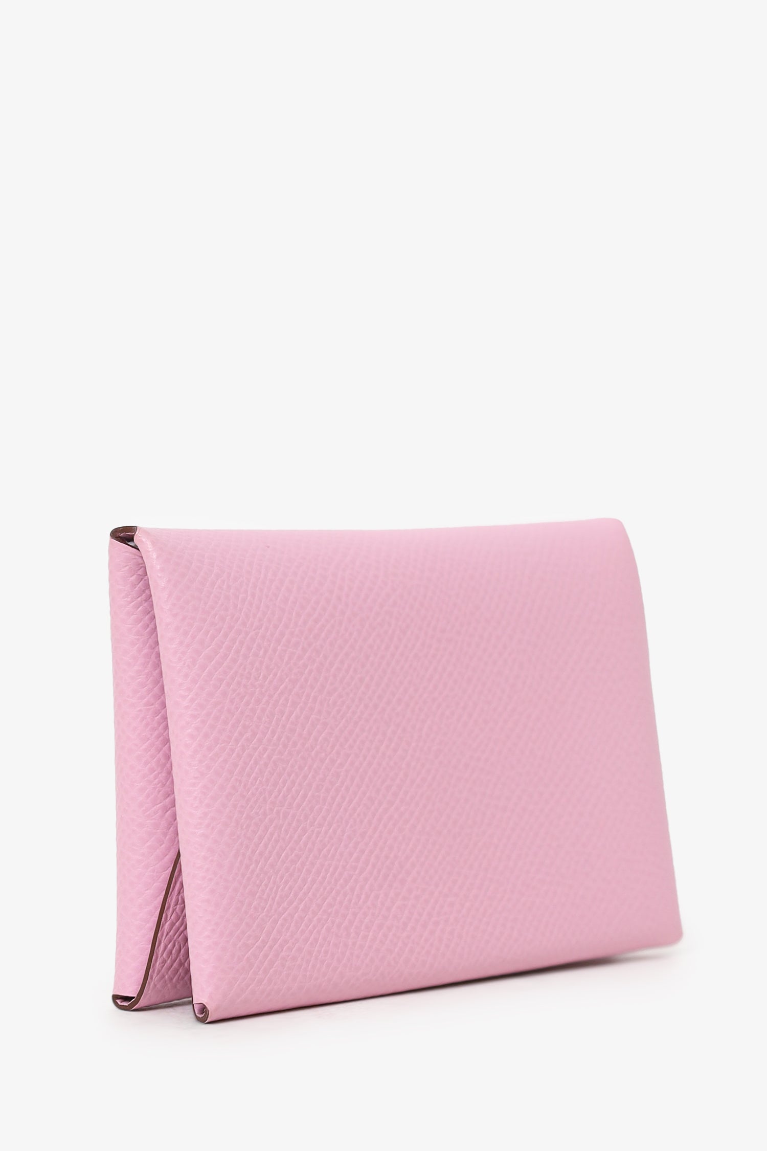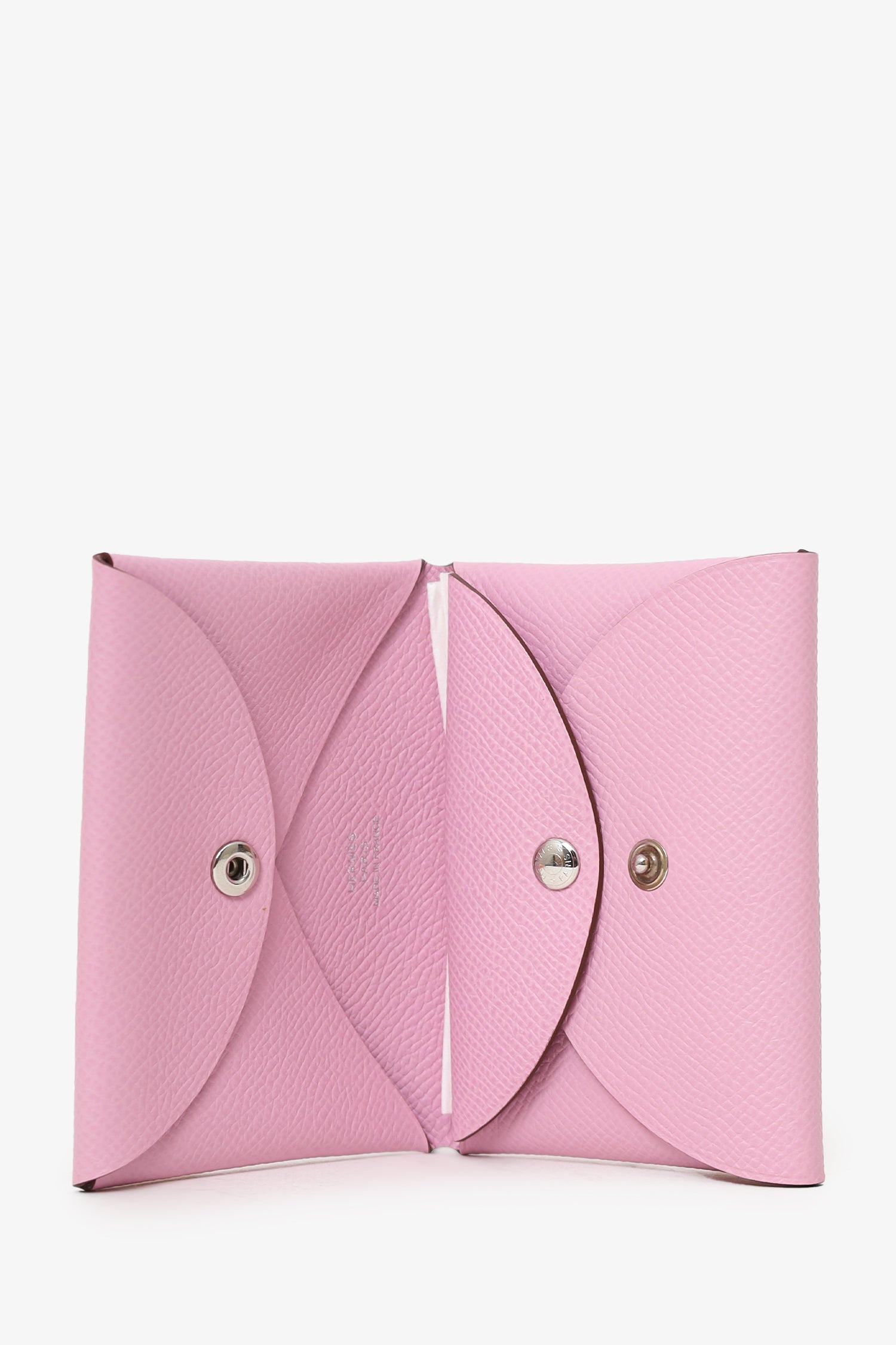 Hermès 2023 Pink Chevre Mysore Leather Calvi Duo Compact Card Holder