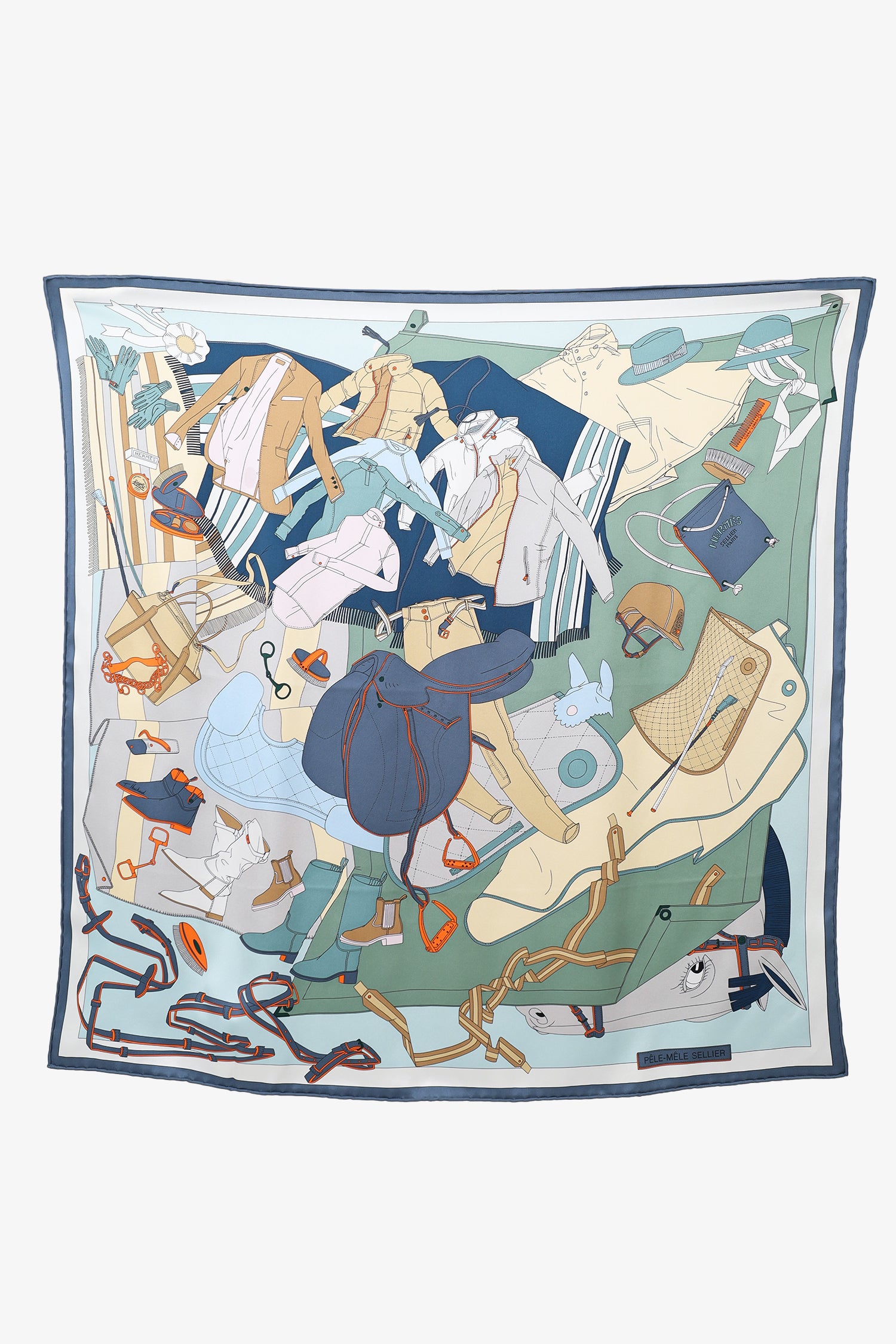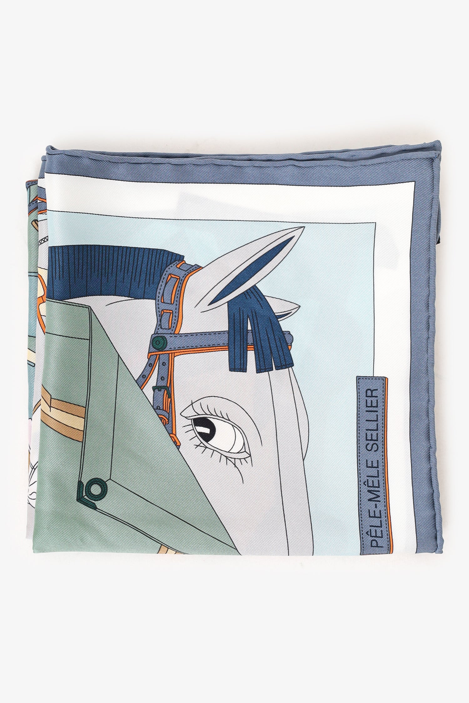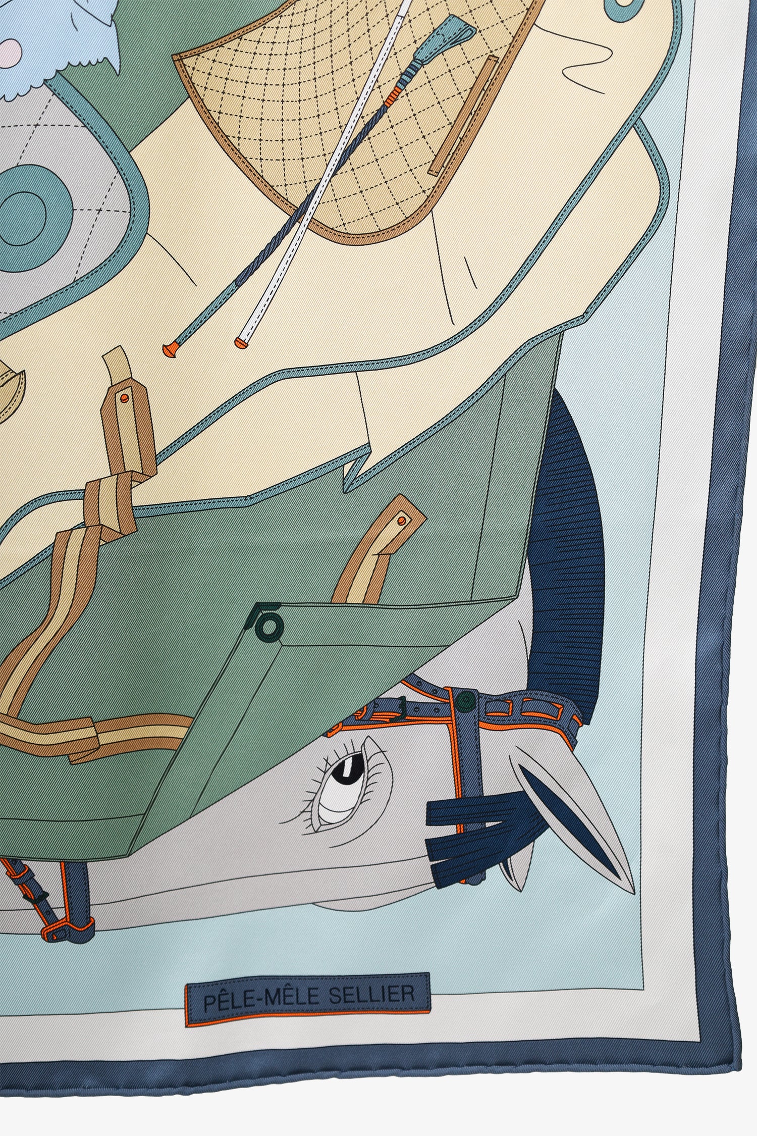 Hermes Ardoise/Vert/Beige Silk Pele-Mele Sellier Scarf 70CM