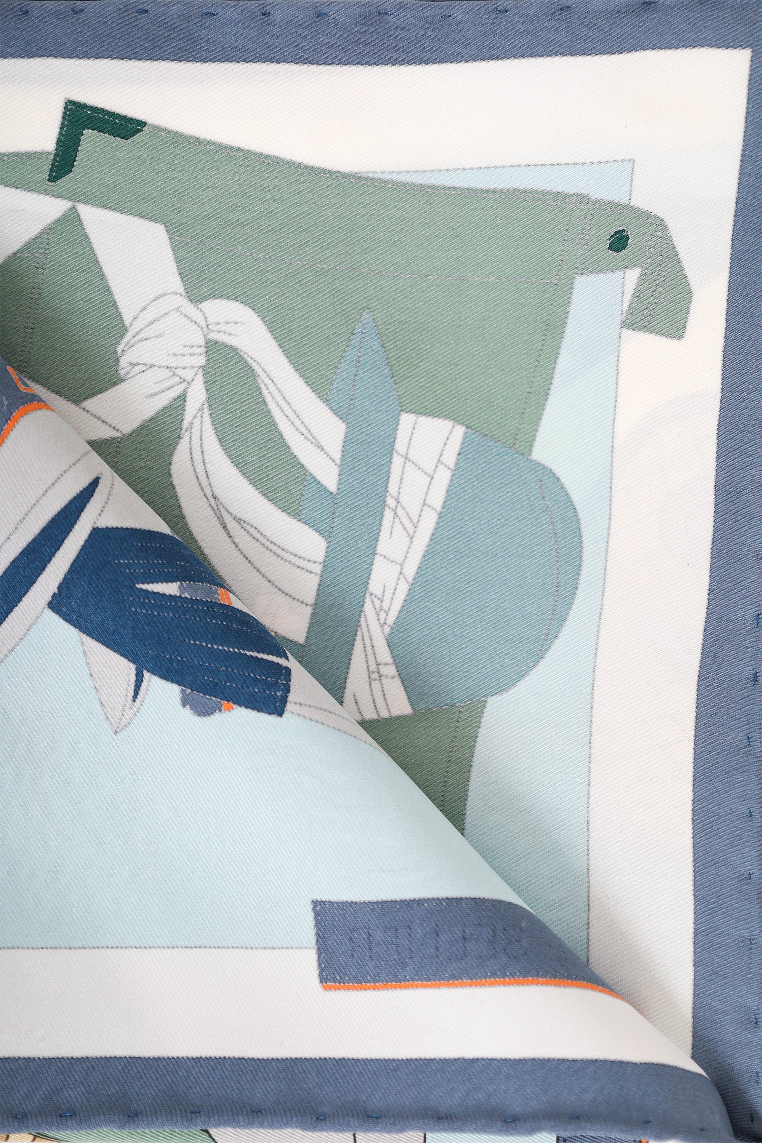 Refresh availabilityHermes Ardoise/Vert/Beige Silk Pele-Mele Sellier Scarf. Tonal stitching.