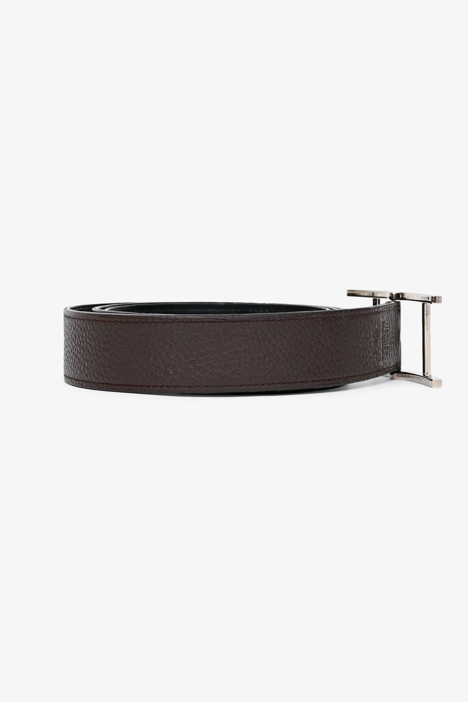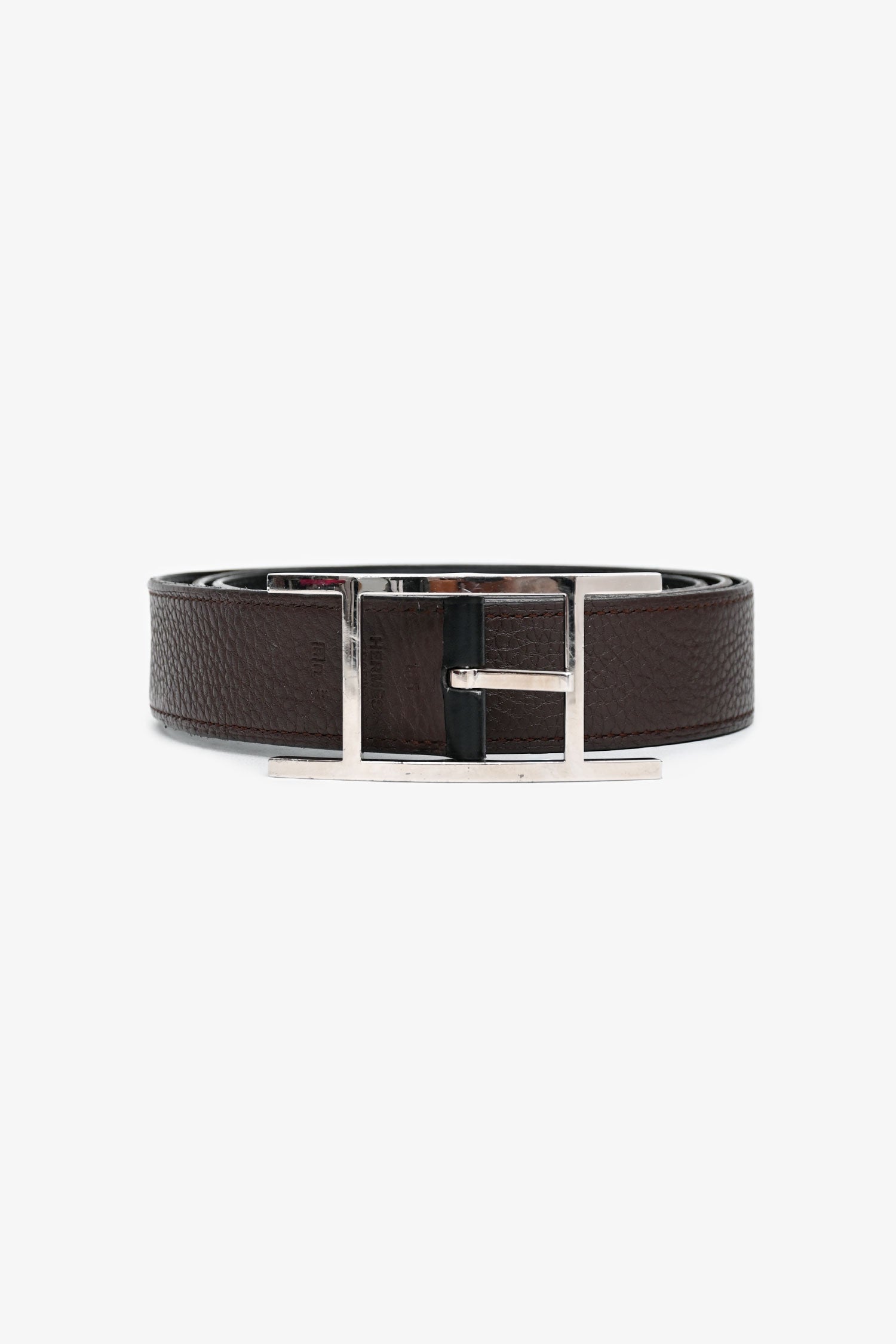 Hermès Black/Brown Leather Quentin Reversible Belt Size 105