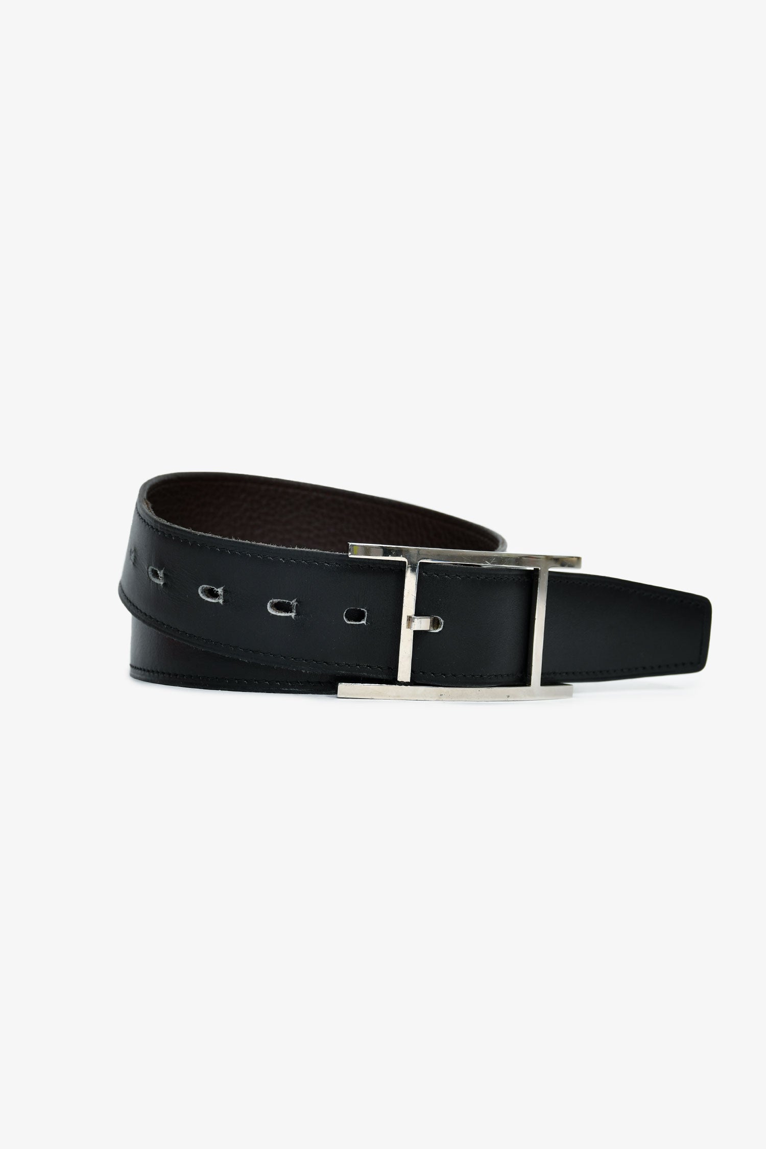Refresh availabilityHermès Black/Brown Leather Quentin Reversible Belt. Pin-hole buckle closure. Silver-tone hardware.