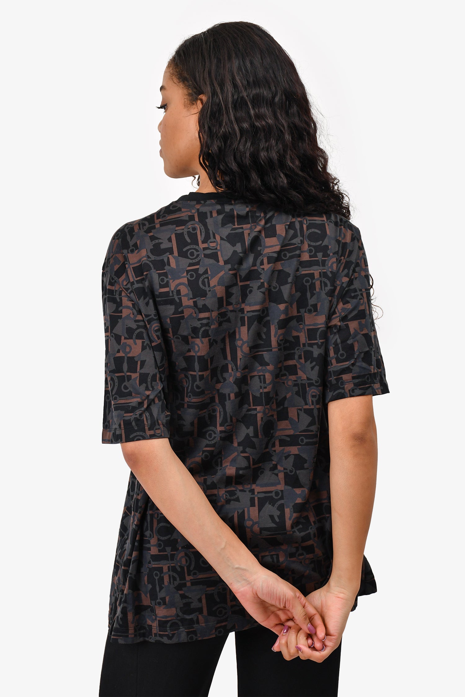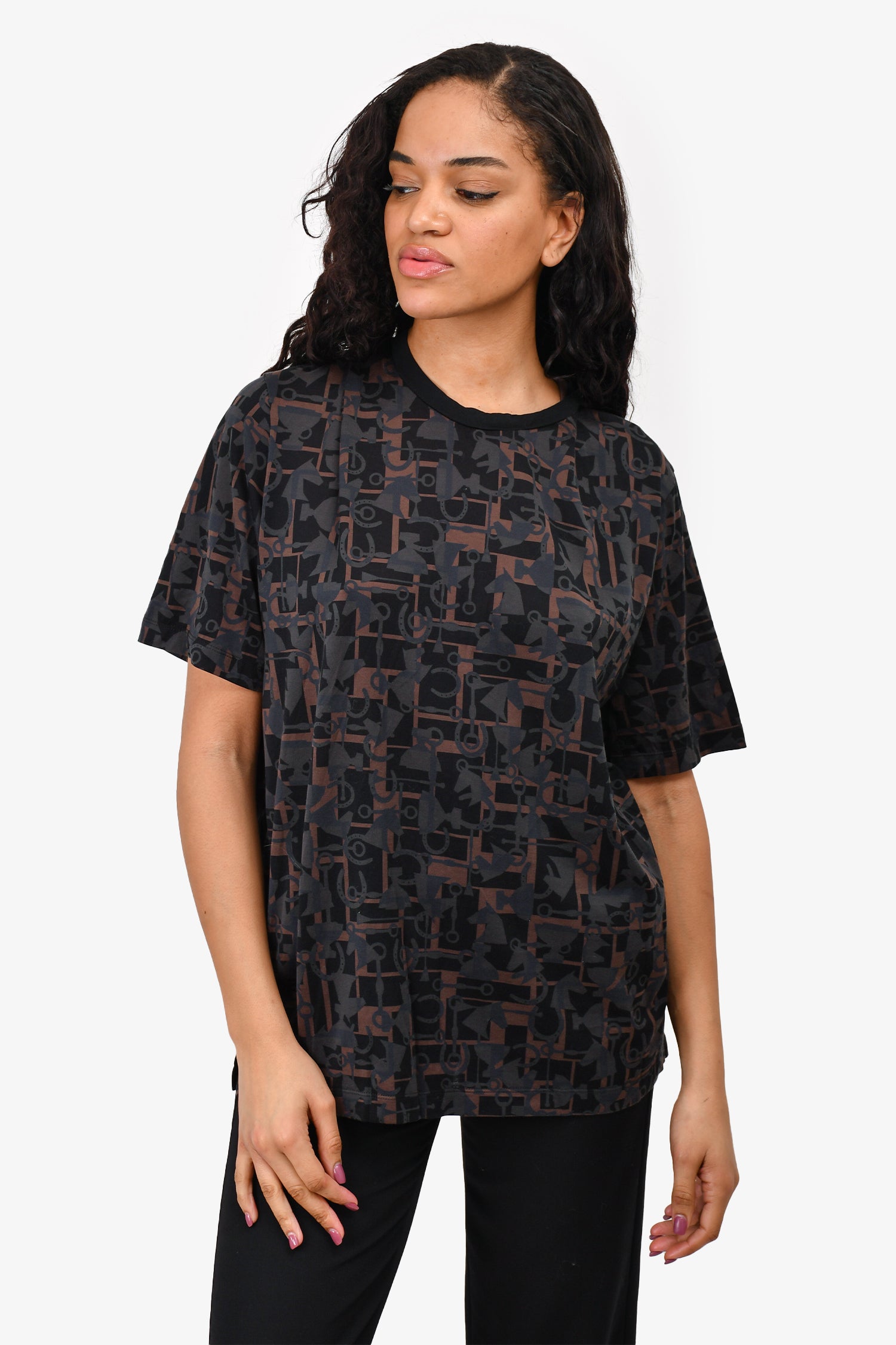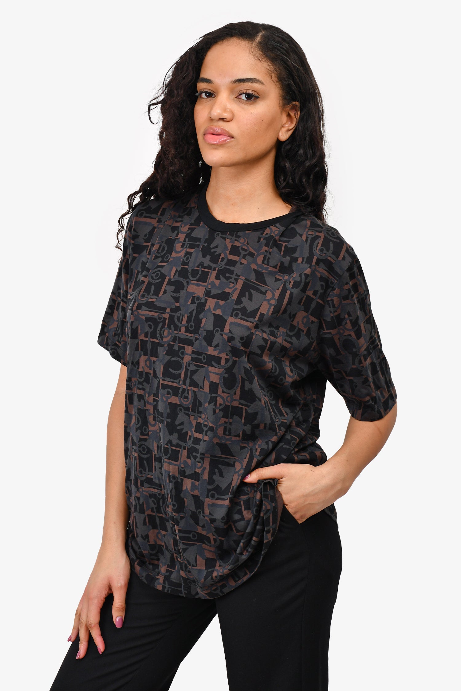 Refresh availabilityHermès Black/Brown Printed Cotton T-Shirt. Pull-on. Round neck.