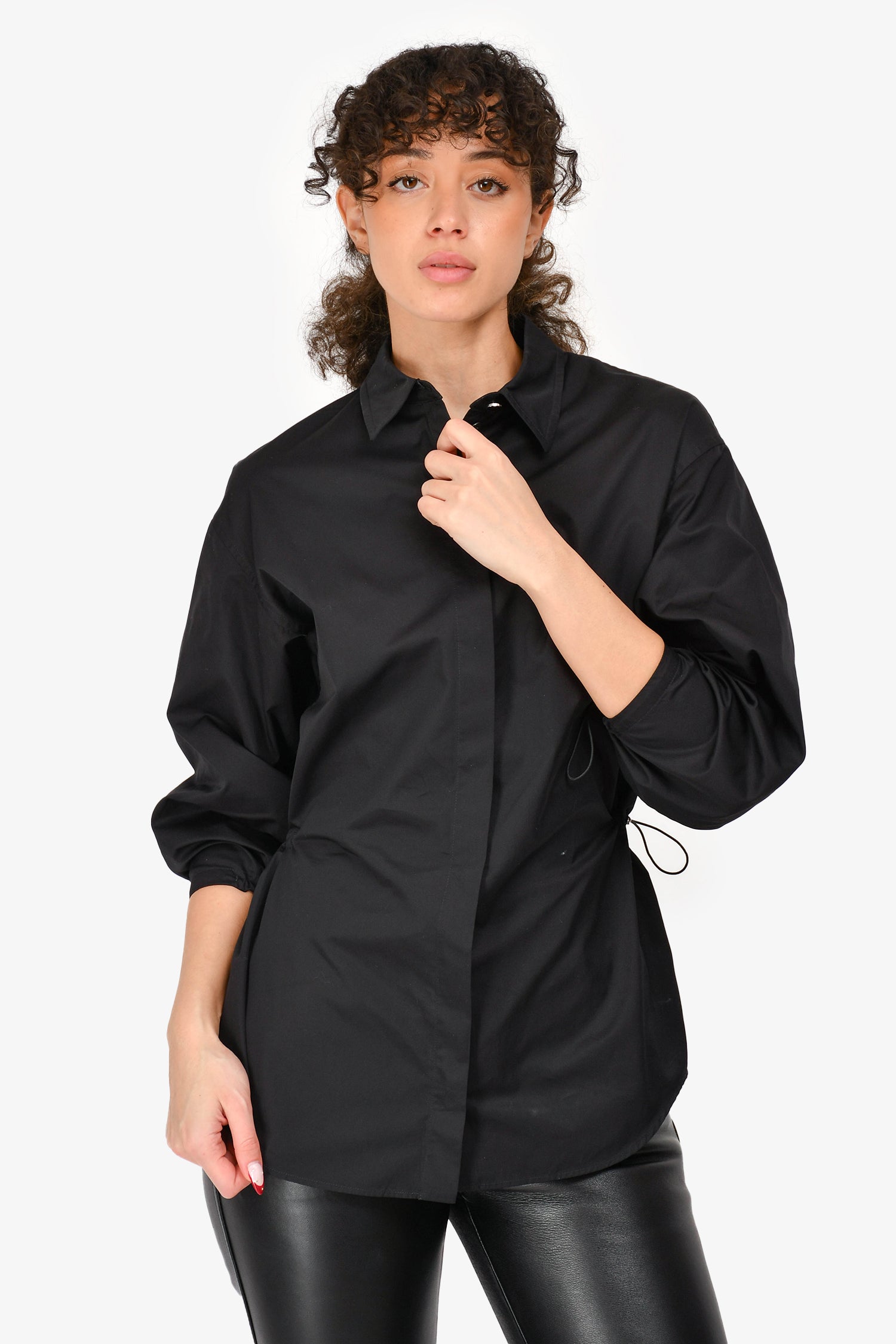 Refresh availabilityHermes Black Cinched Waist Detailed Button Up Long Sleeve Shirt. Drawstring cinched waist and cuffs. Silver-toned hardware. Tonal stitching.
