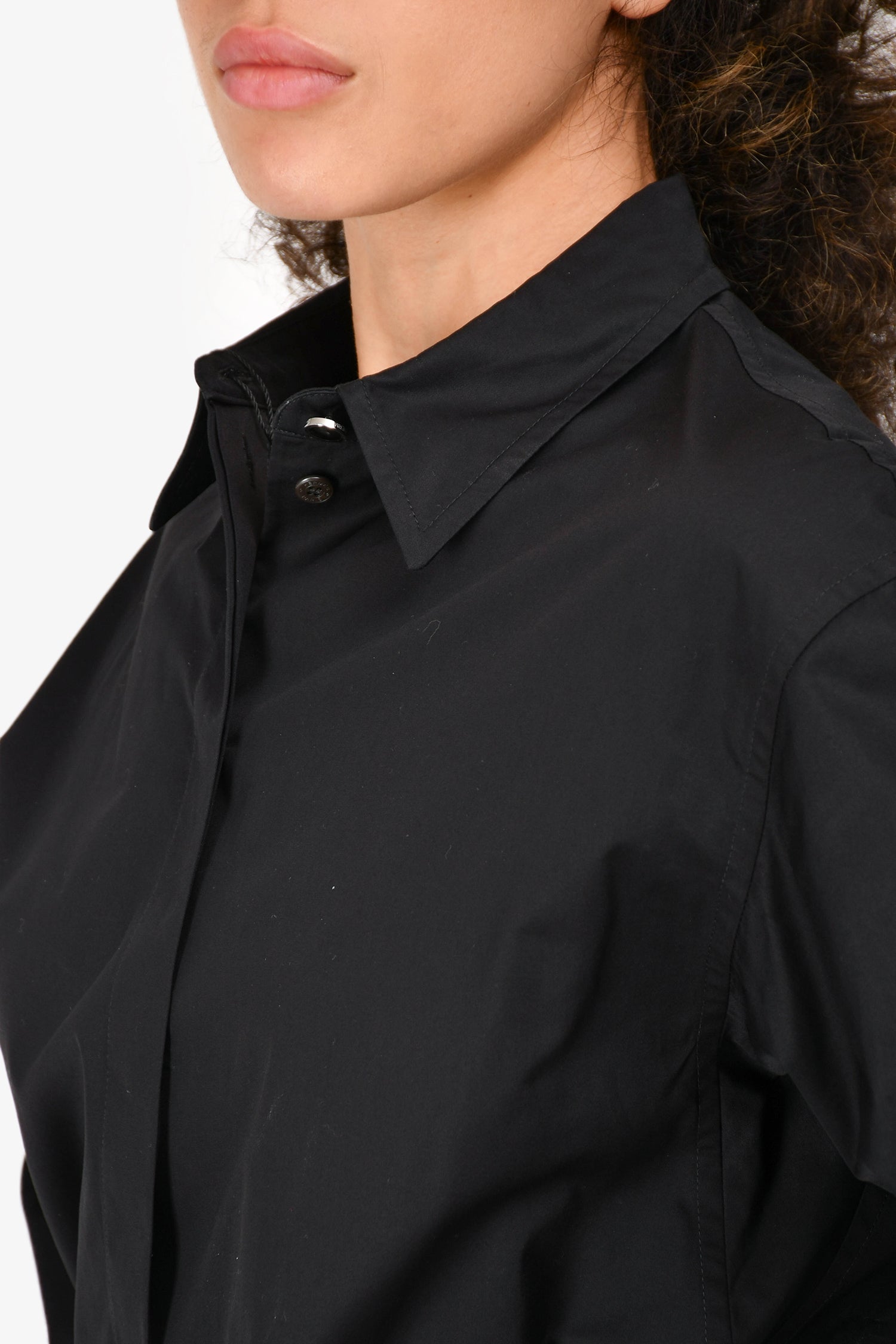Hermes Black Cinched Waist Detailed Button Up Long Sleeve Shirt Size 34
