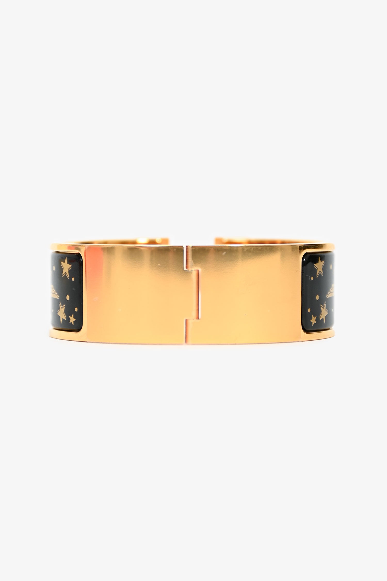 Hermès Black/Gold Enamel Printed H 'Poste et Cavalerie' Clic Clac Bracelet