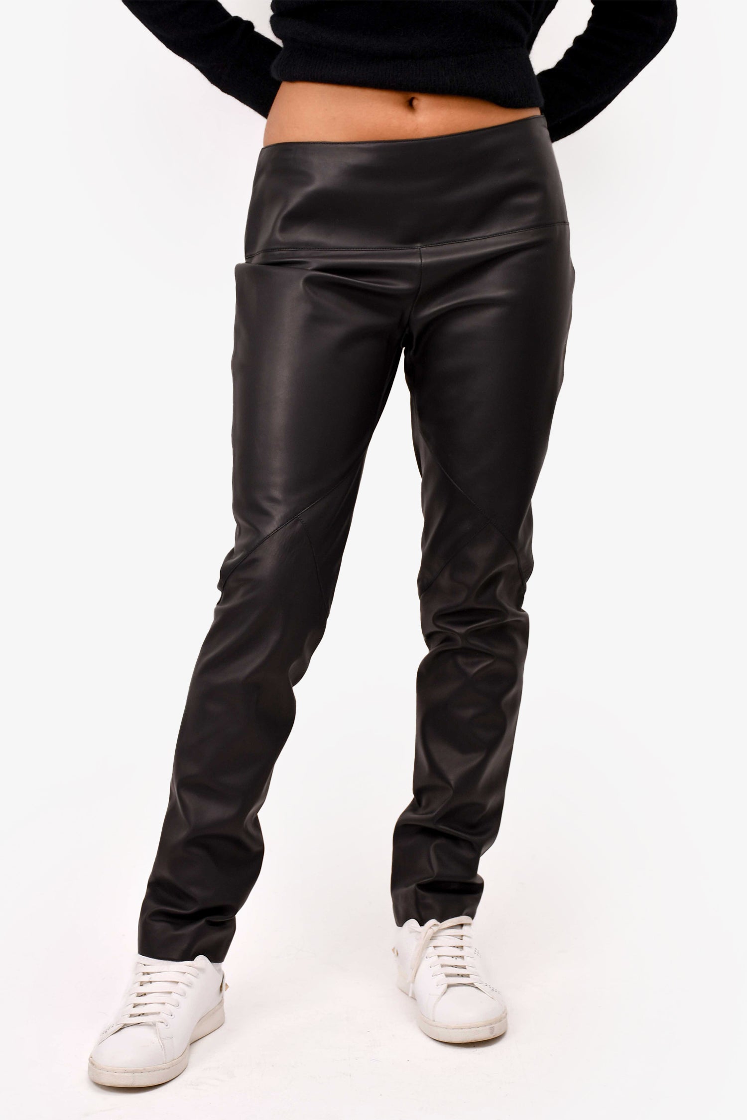 Hermès Black Lambskin Leather High Waisted Pants Size 42