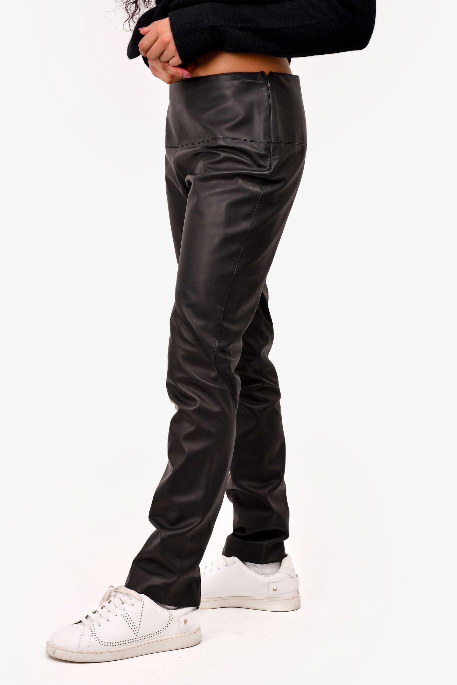 Refresh availabilityHermès Black Lambskin Leather High Waisted Pants. Side zip and hook closure. Lined.