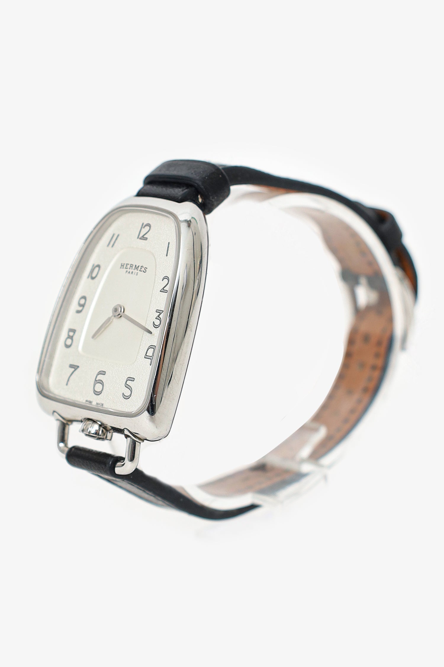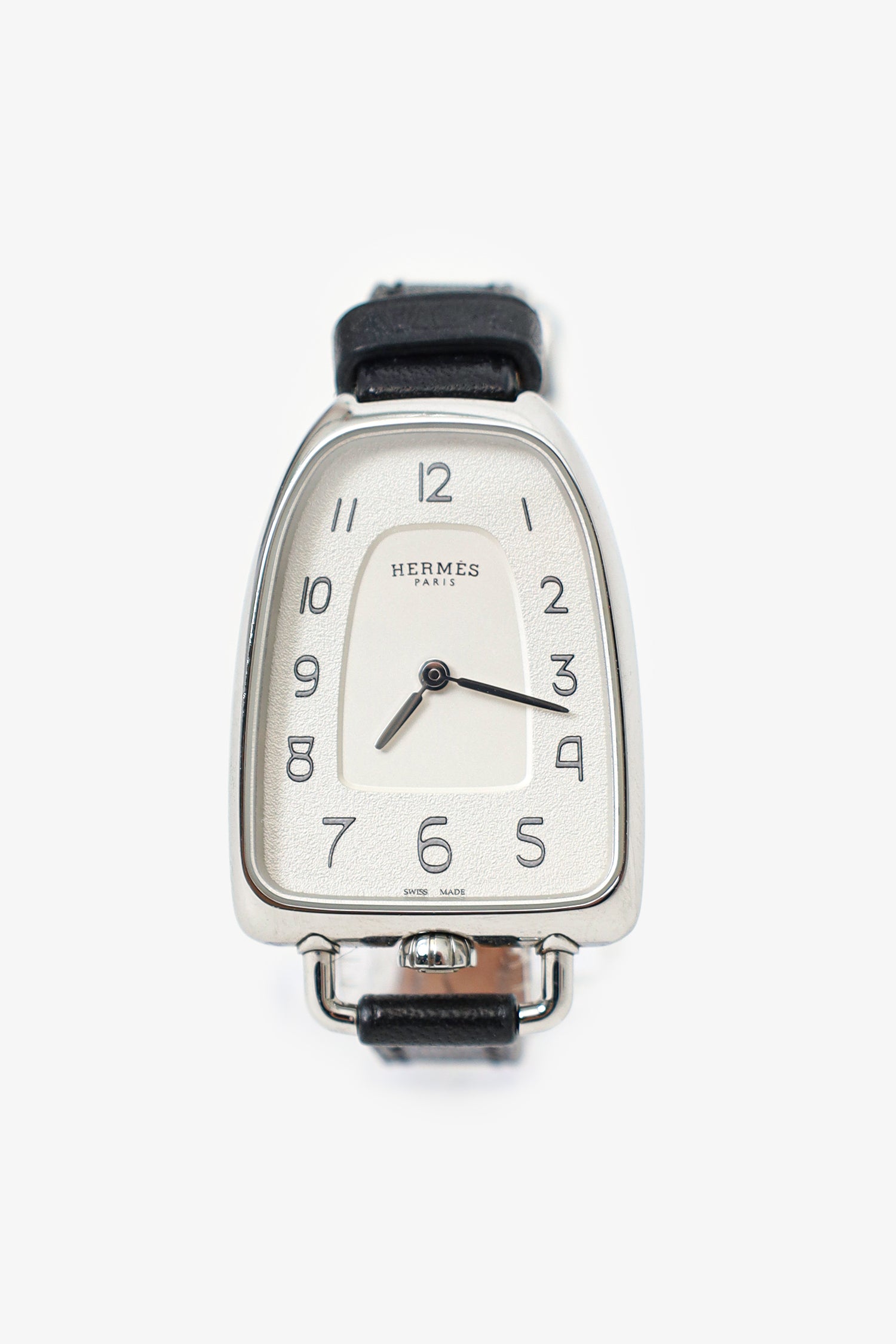 Refresh availabilityHermès Black Leather Galop D'hermes Watch. Adjustable strap with buckle closure.