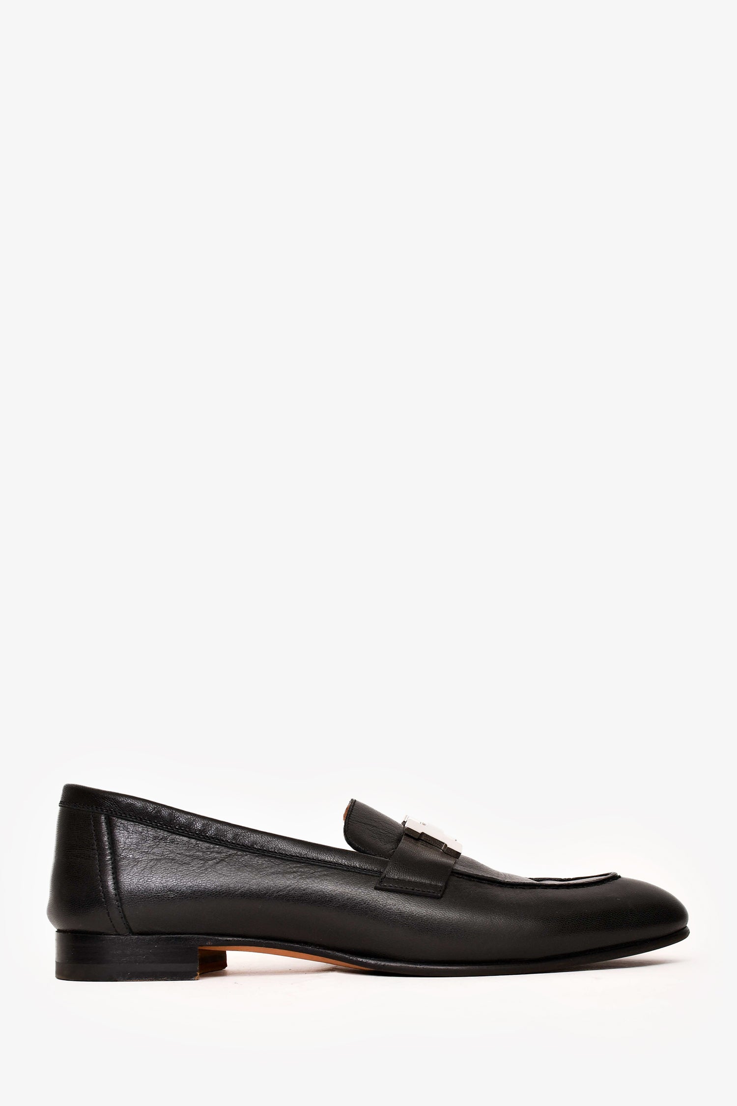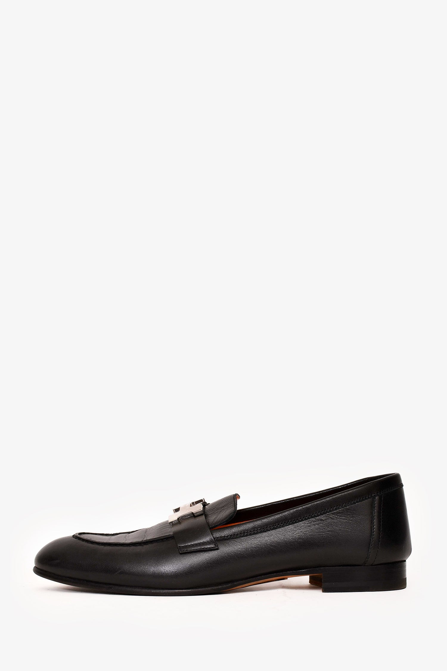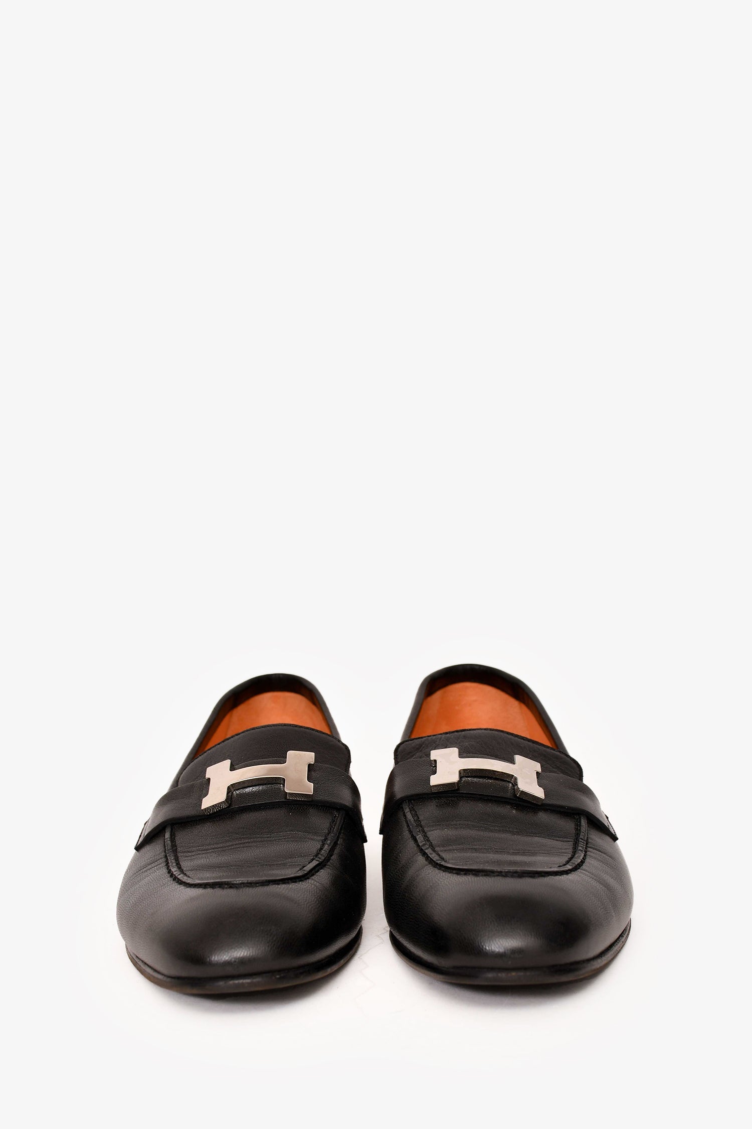 Hermès Black Leather Paris Loafers Size 37 (As Is)