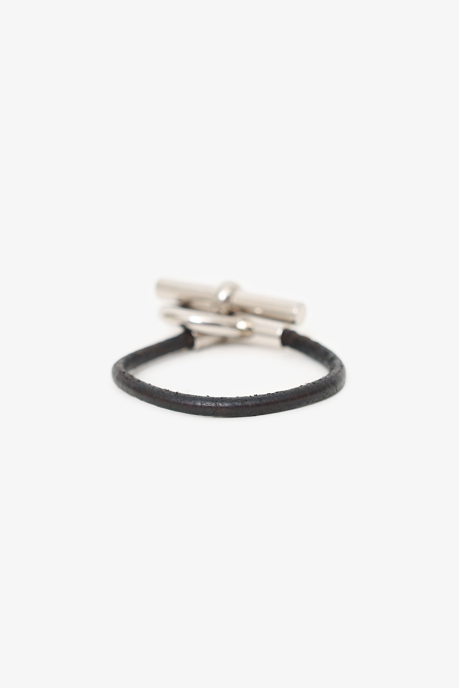Refresh availabilityHermès Black Leather T-Bar Bracelet. Pull through closure.