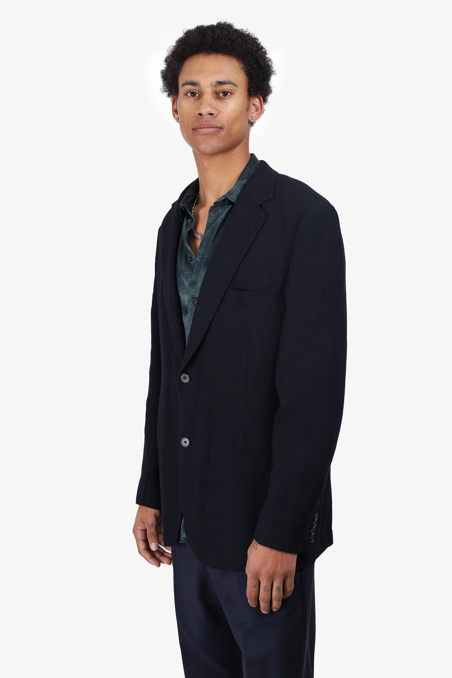 Refresh availabilityHermès Black Linen Blazer. Notch lapel. Front button-up closure. Interior padded shoulders. 1 front slip pocket on left chest. 3 front pockets with closed seams. 2 interior slip pockets. Sleeve cuffs with 4-button closure. High-low bottom hem. Rear vent. Unlined. Tonal stitching.