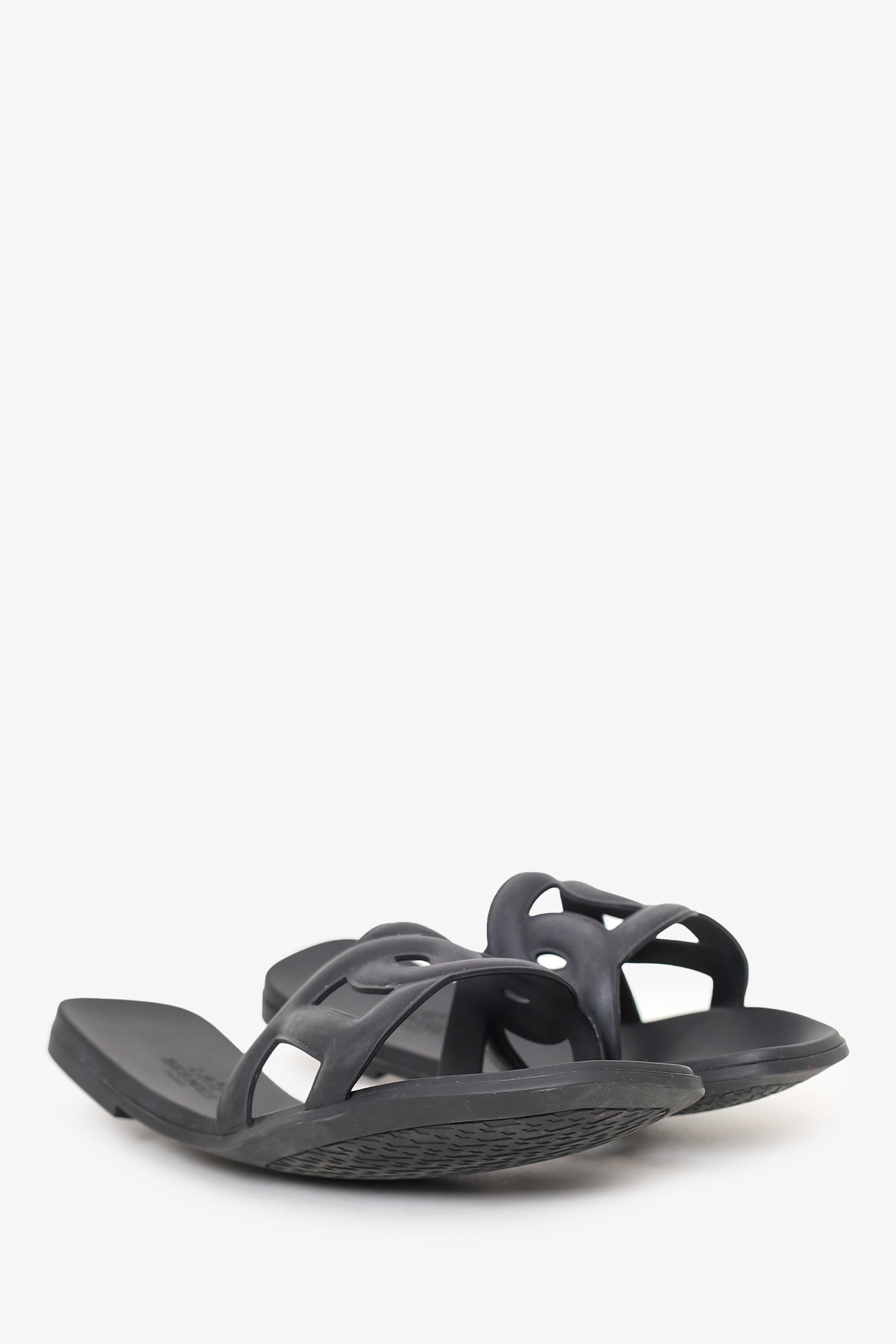 Refresh availabilityHermès Black Rubber Aloha Sandals. Slip-on. Round open toe.