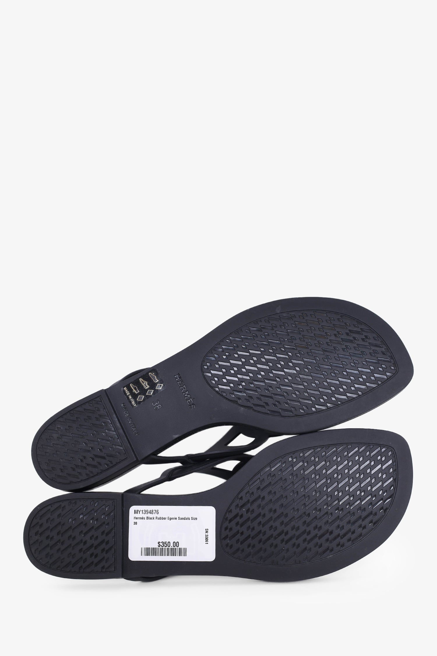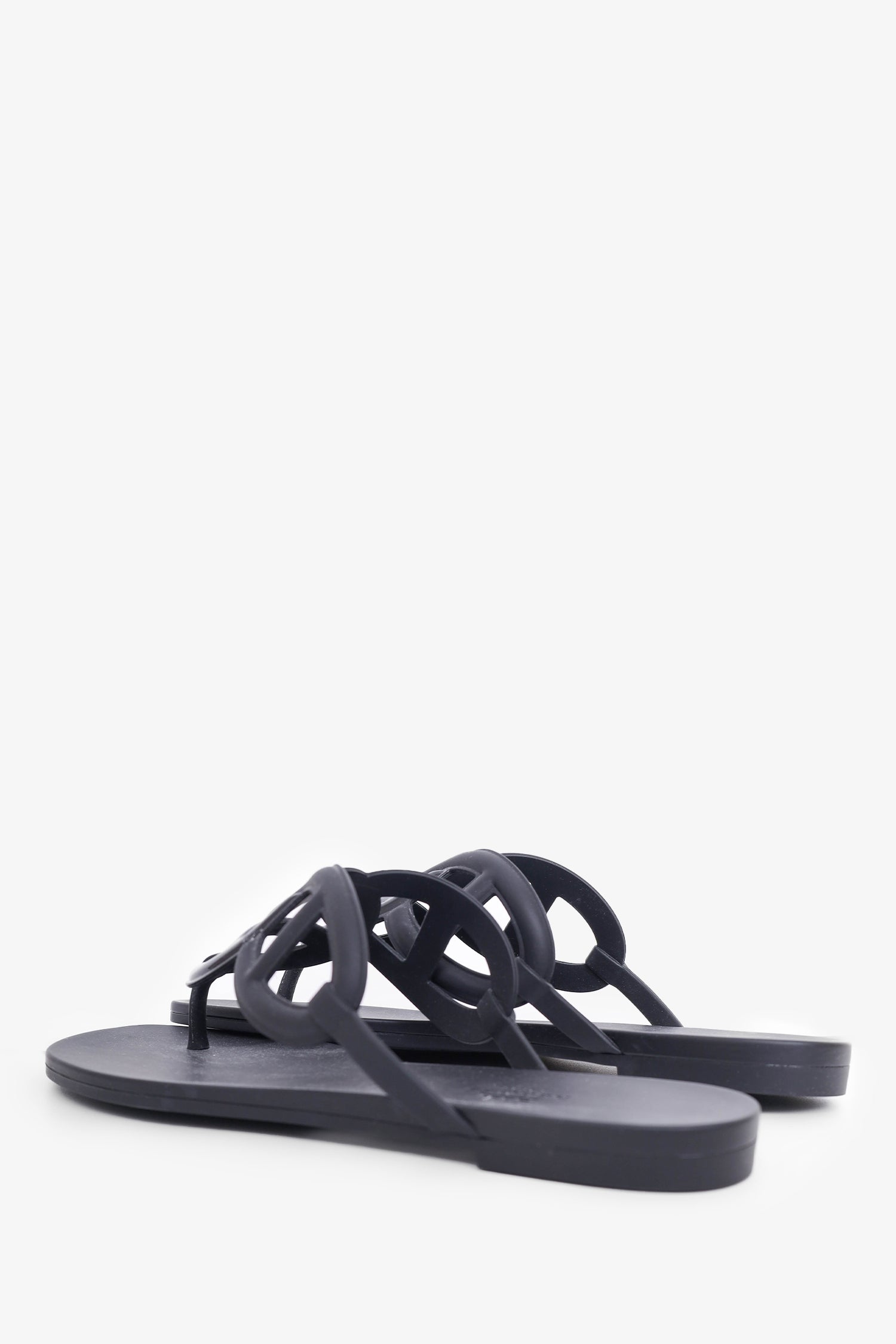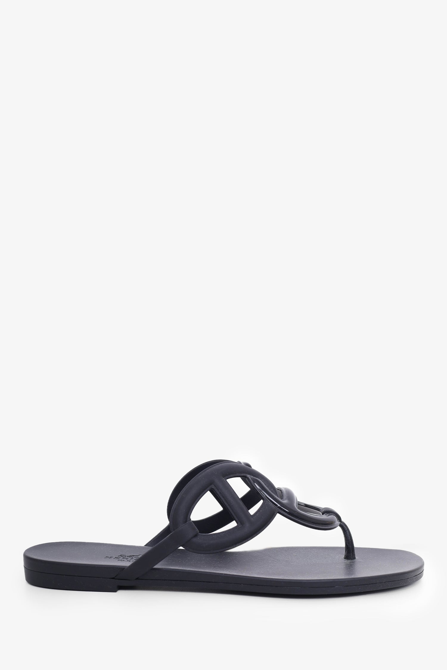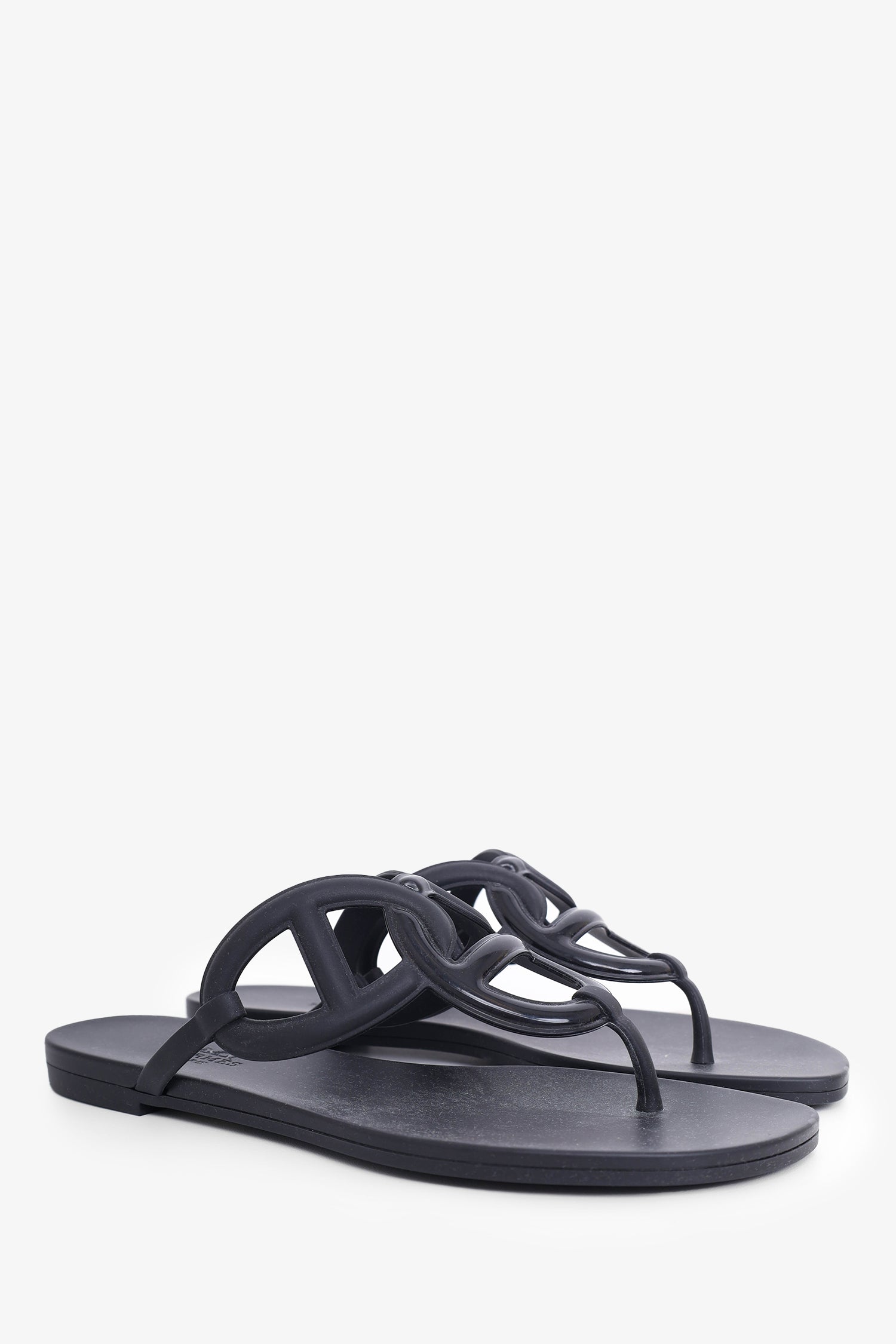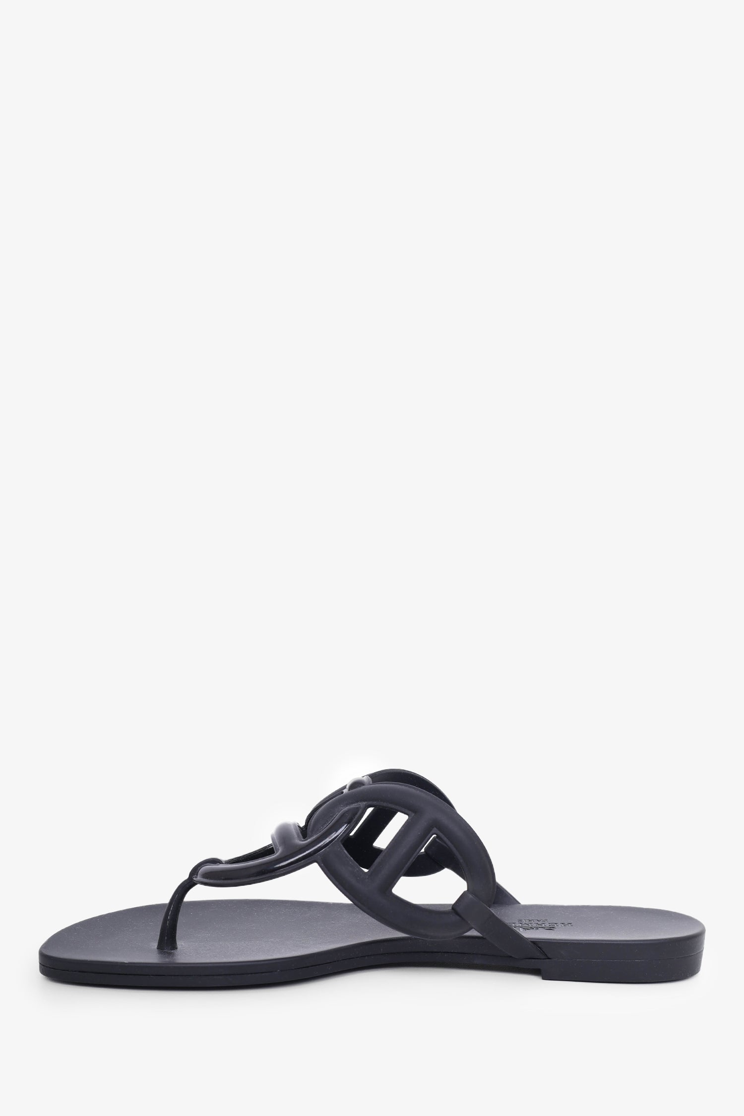 Refresh availabilityHermès Black Rubber Egerie Sandals. Slip on. Chain motif. Tonal.