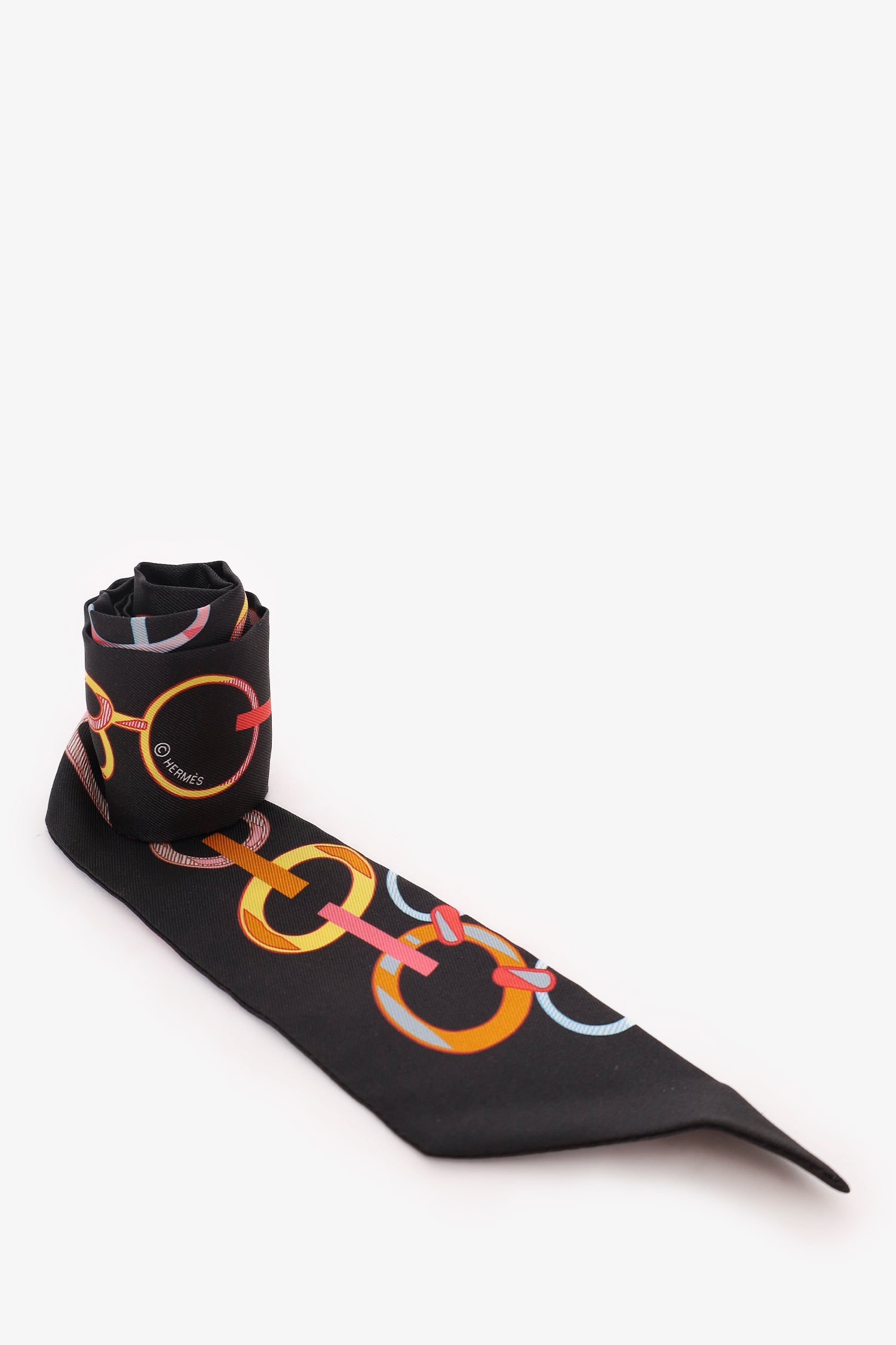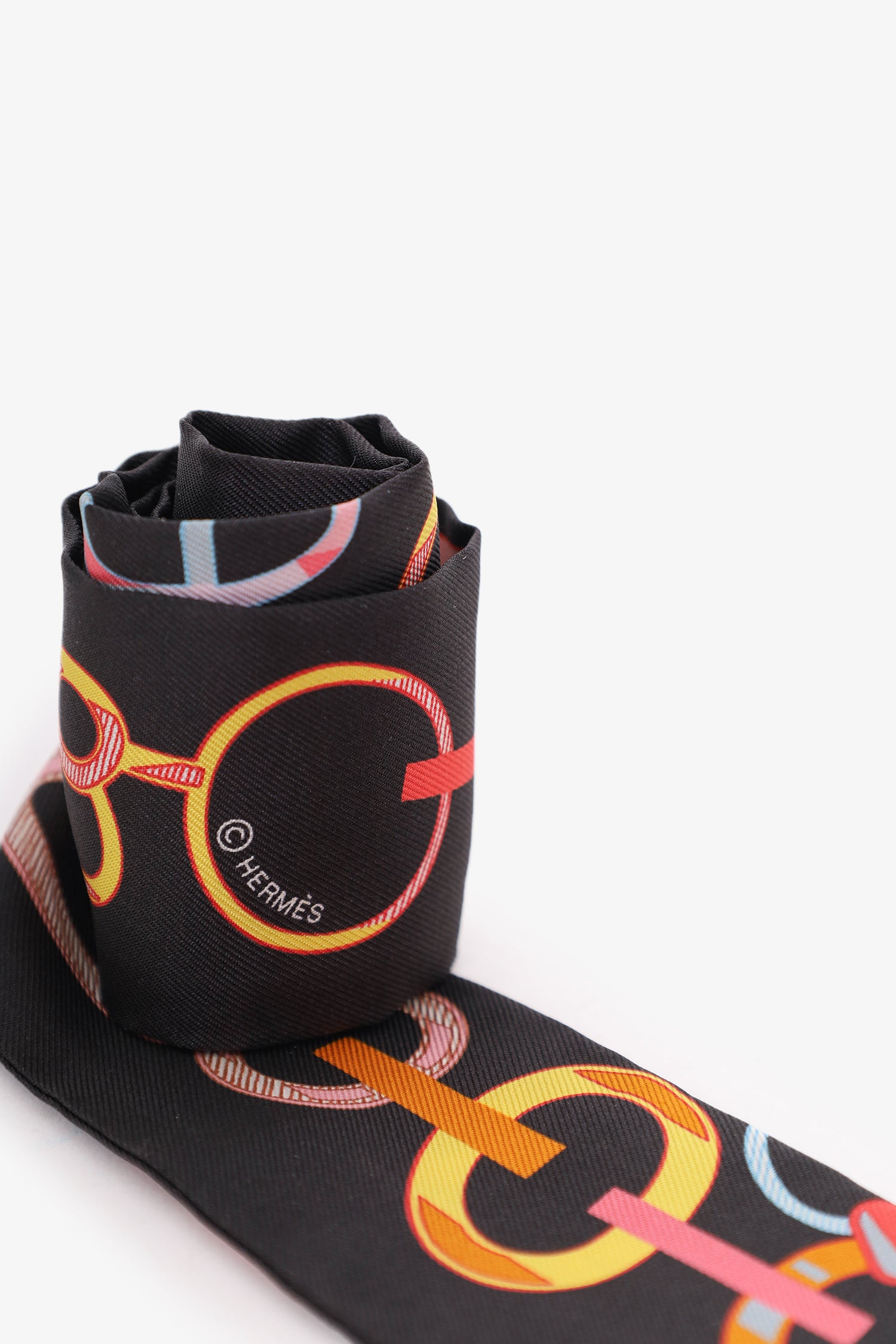 Refresh availabilityHermès Black Silk Printed Twilly. Tonal stitching. Comes original box.