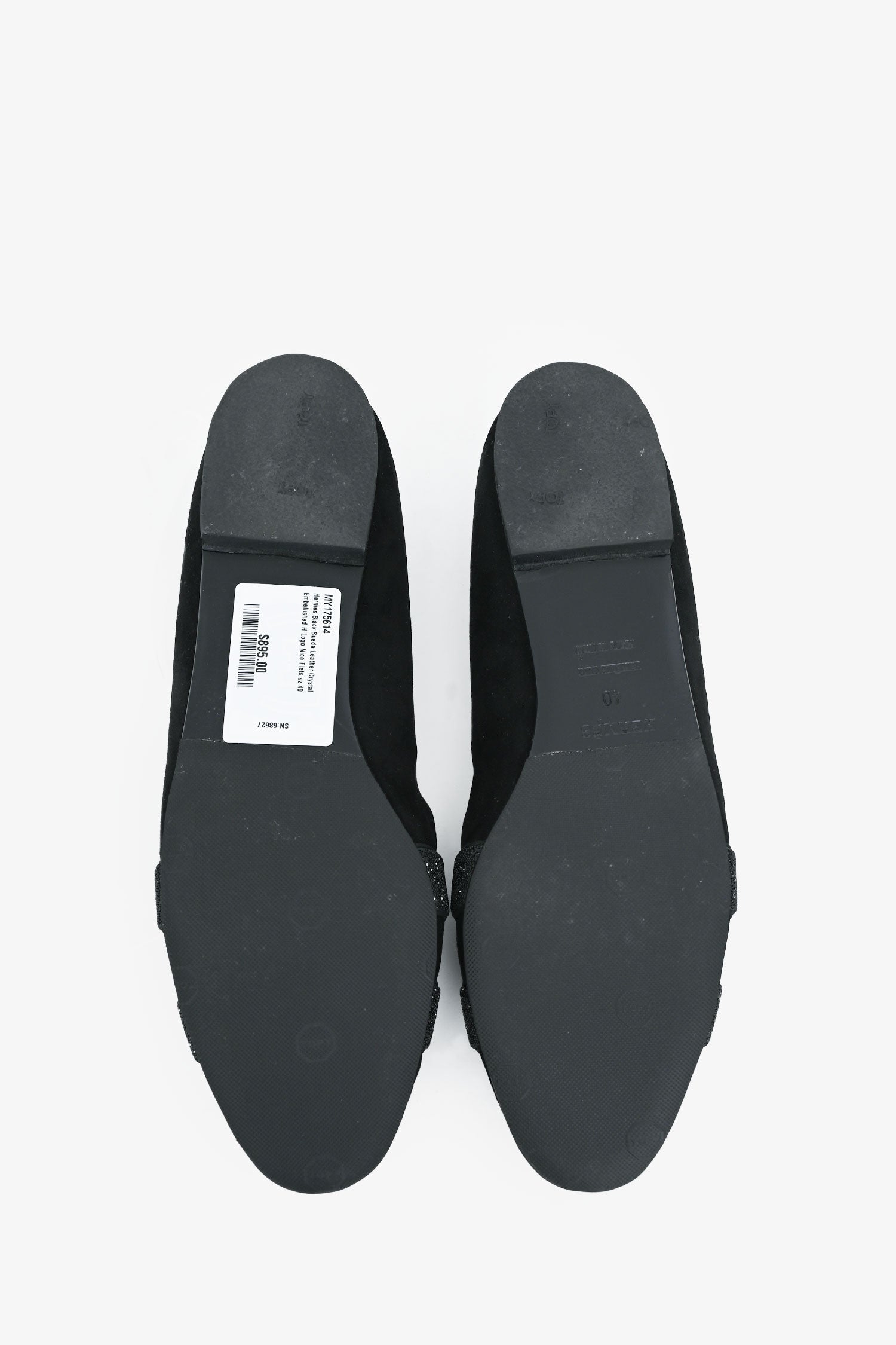 Hermes Black Suede Leather Crystal Embellished H Logo Nice Flats Size 40