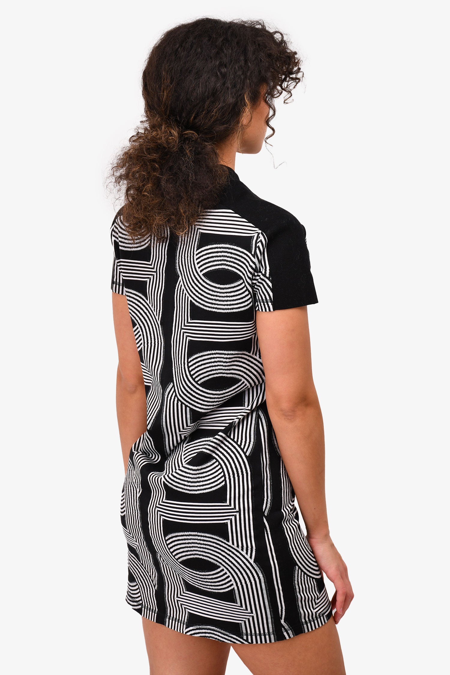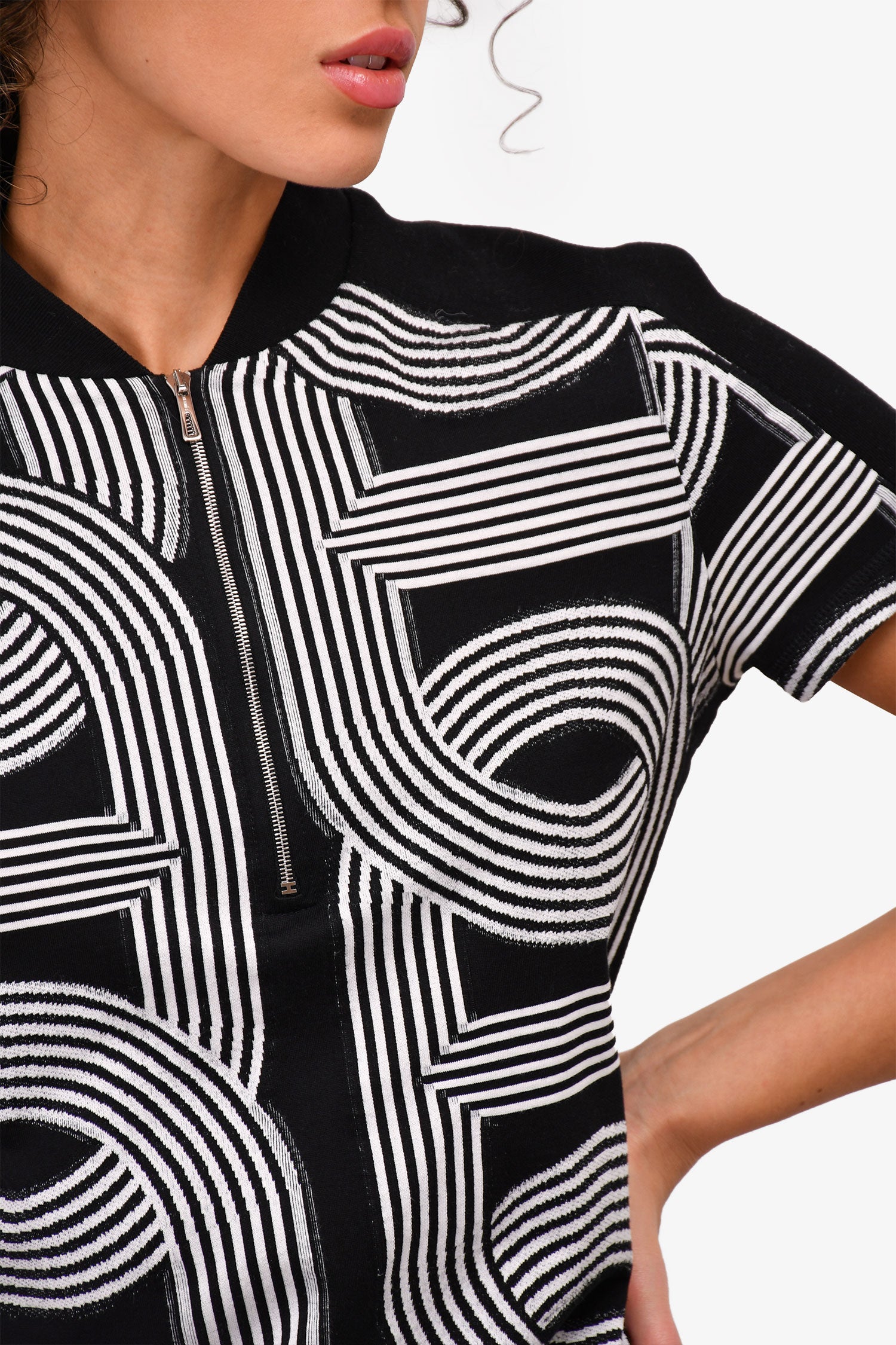 Refresh availabilityHermès Black/White Cotton Printed Quarter Zip Dress. Silver-tone hardware. Elasticated trimming. Tonal stitching.