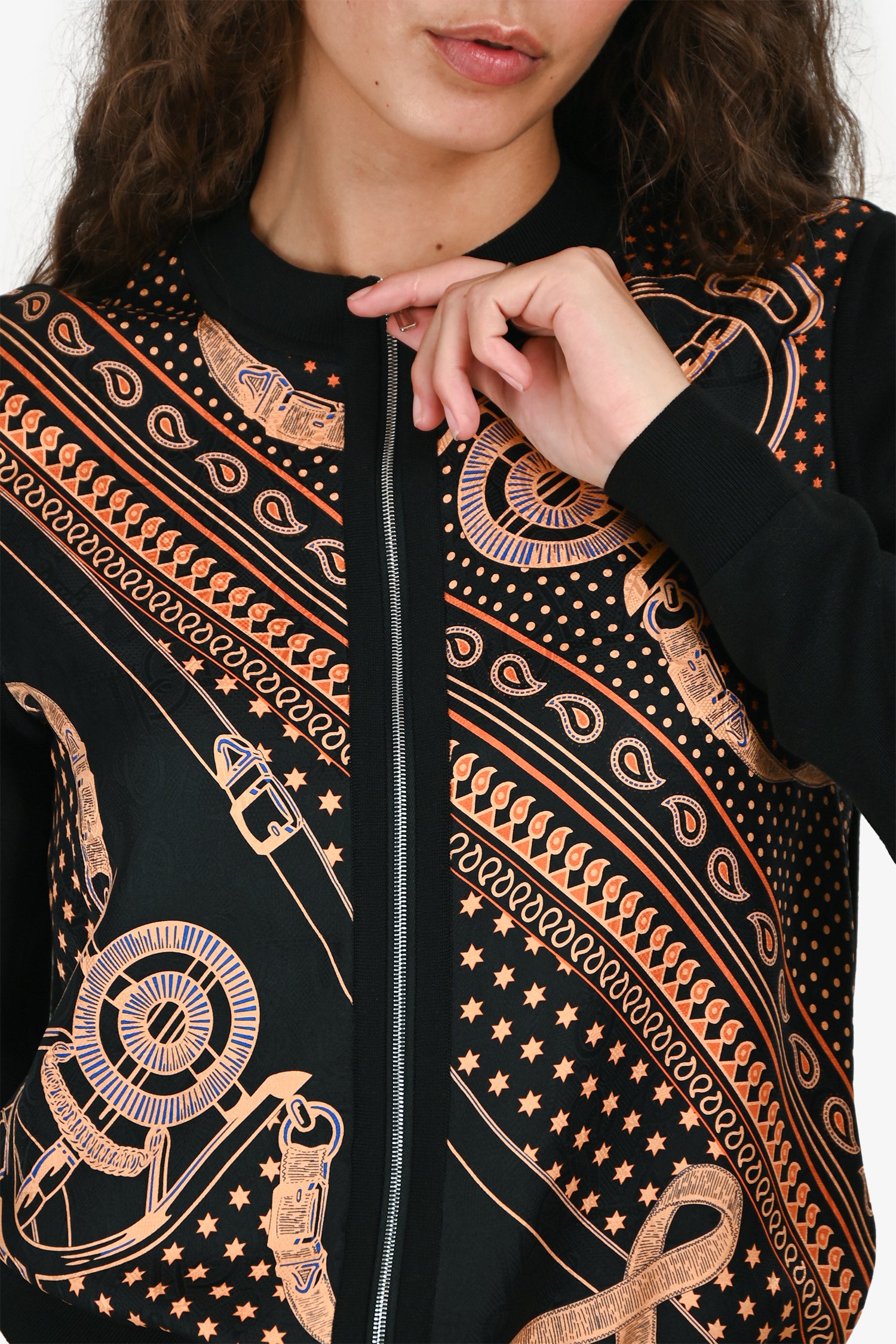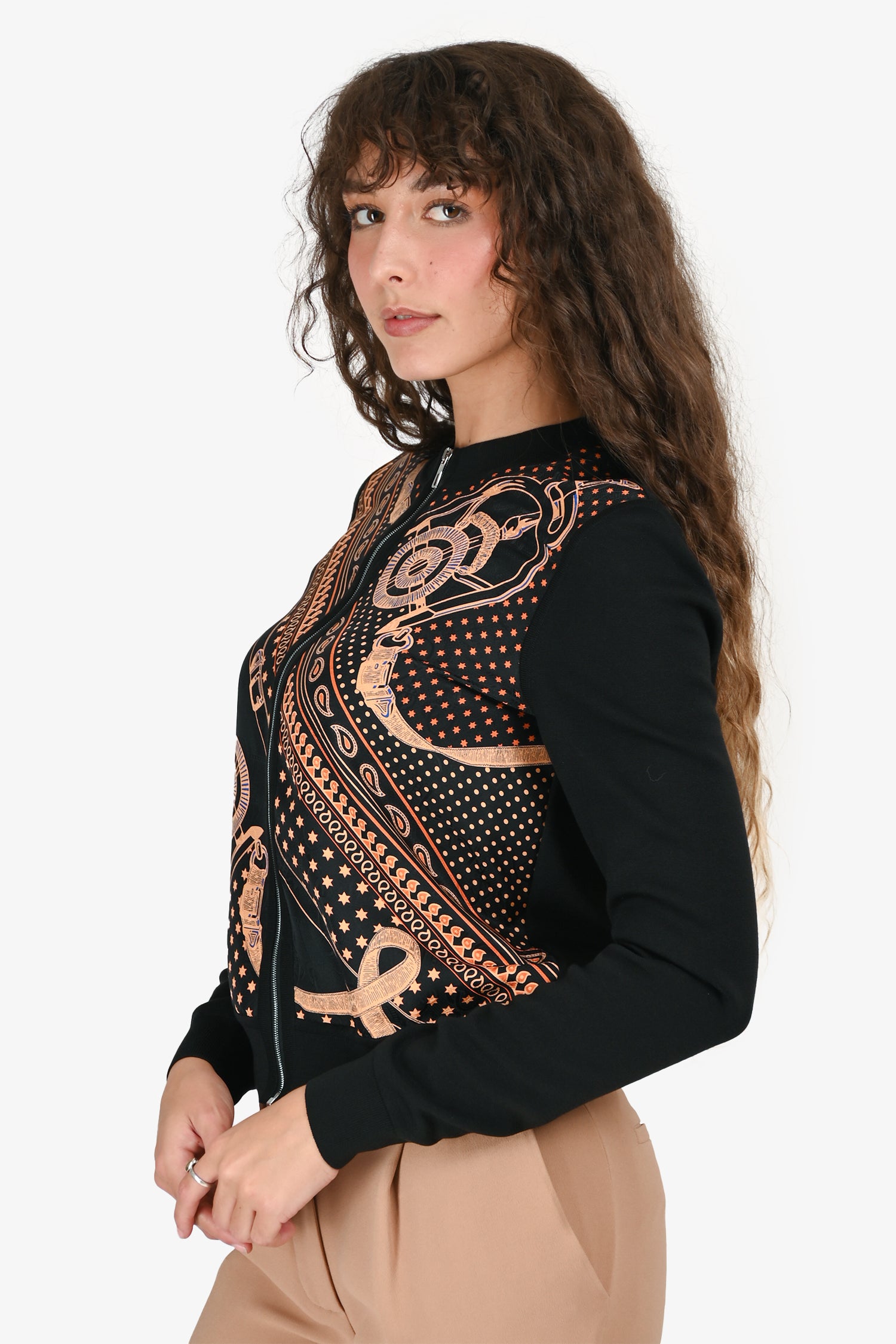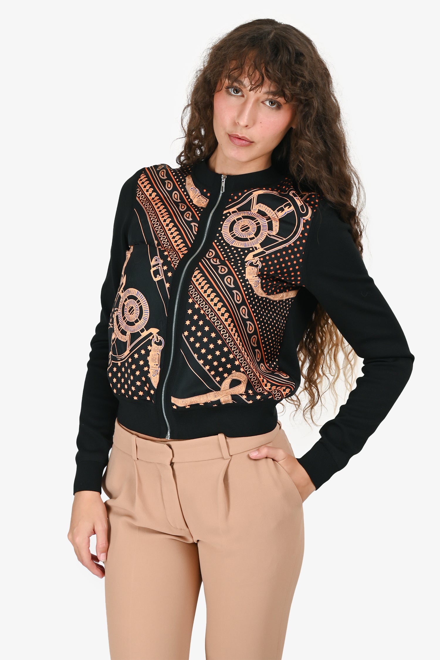 Hermès Black/Orange Silk "Eperon d'Or Bandana" Zip Up Twillaine Cardigan Size 36