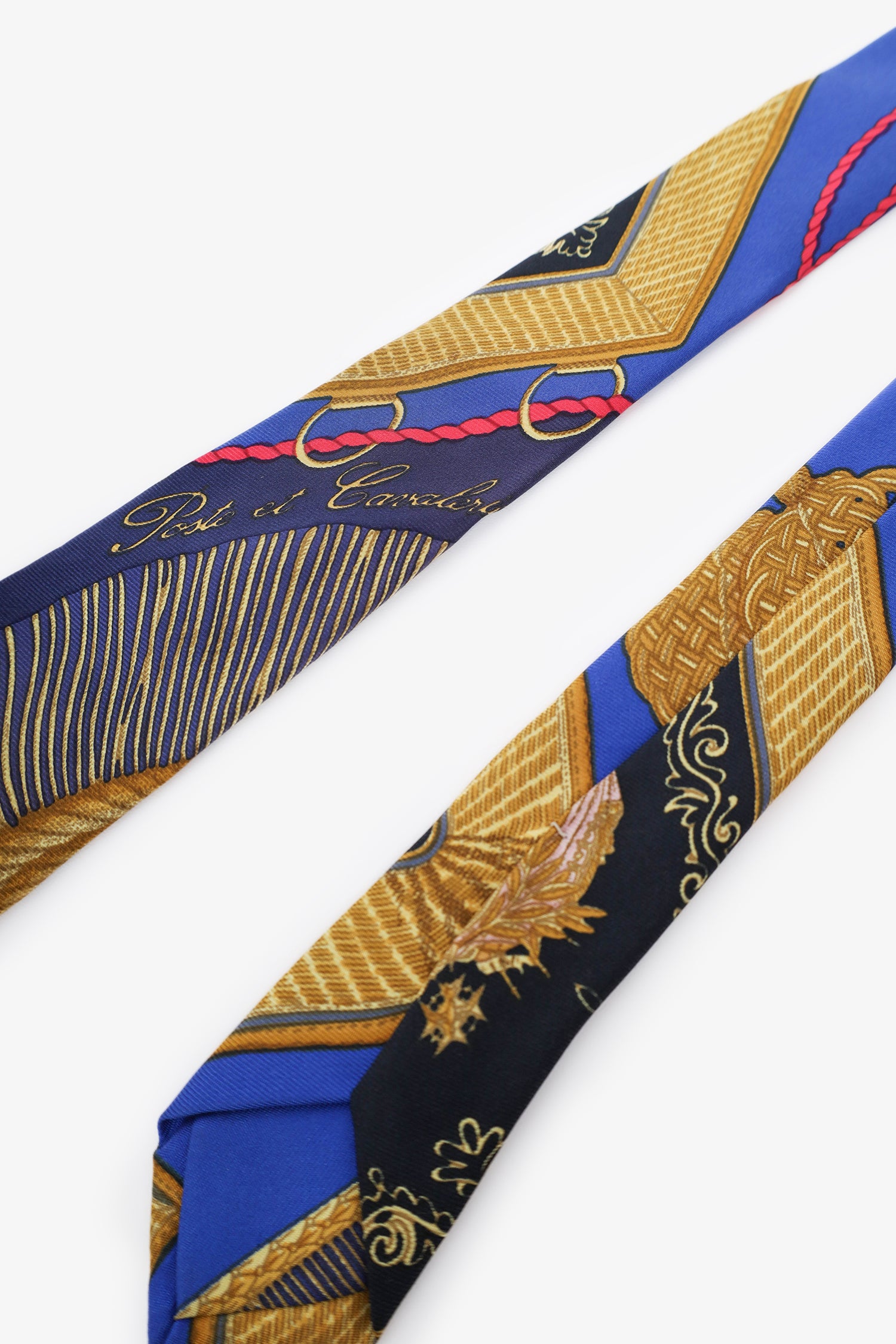 Refresh availabilityHermès Blue/Gold Silk Printed Tie. Tonal stitching.