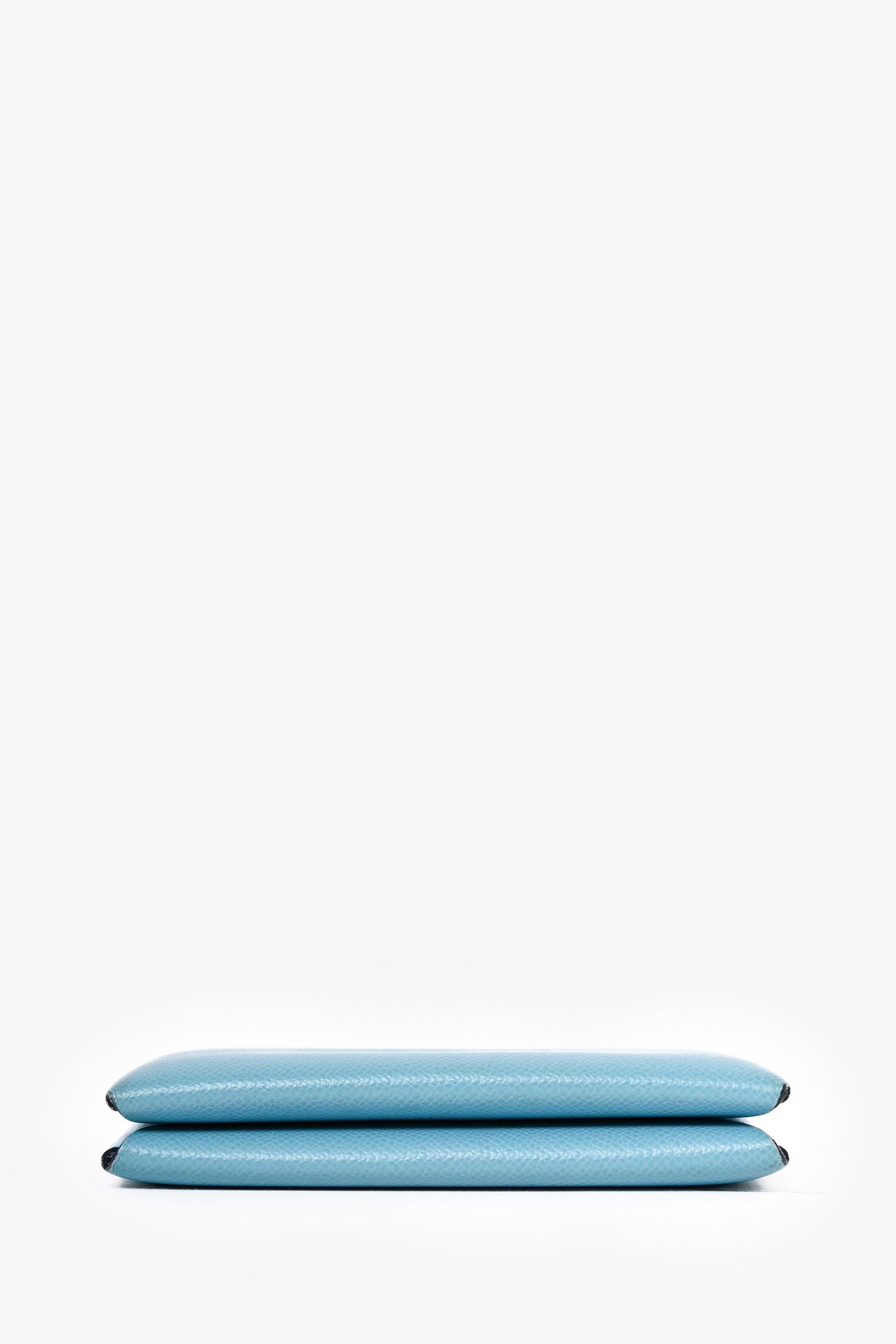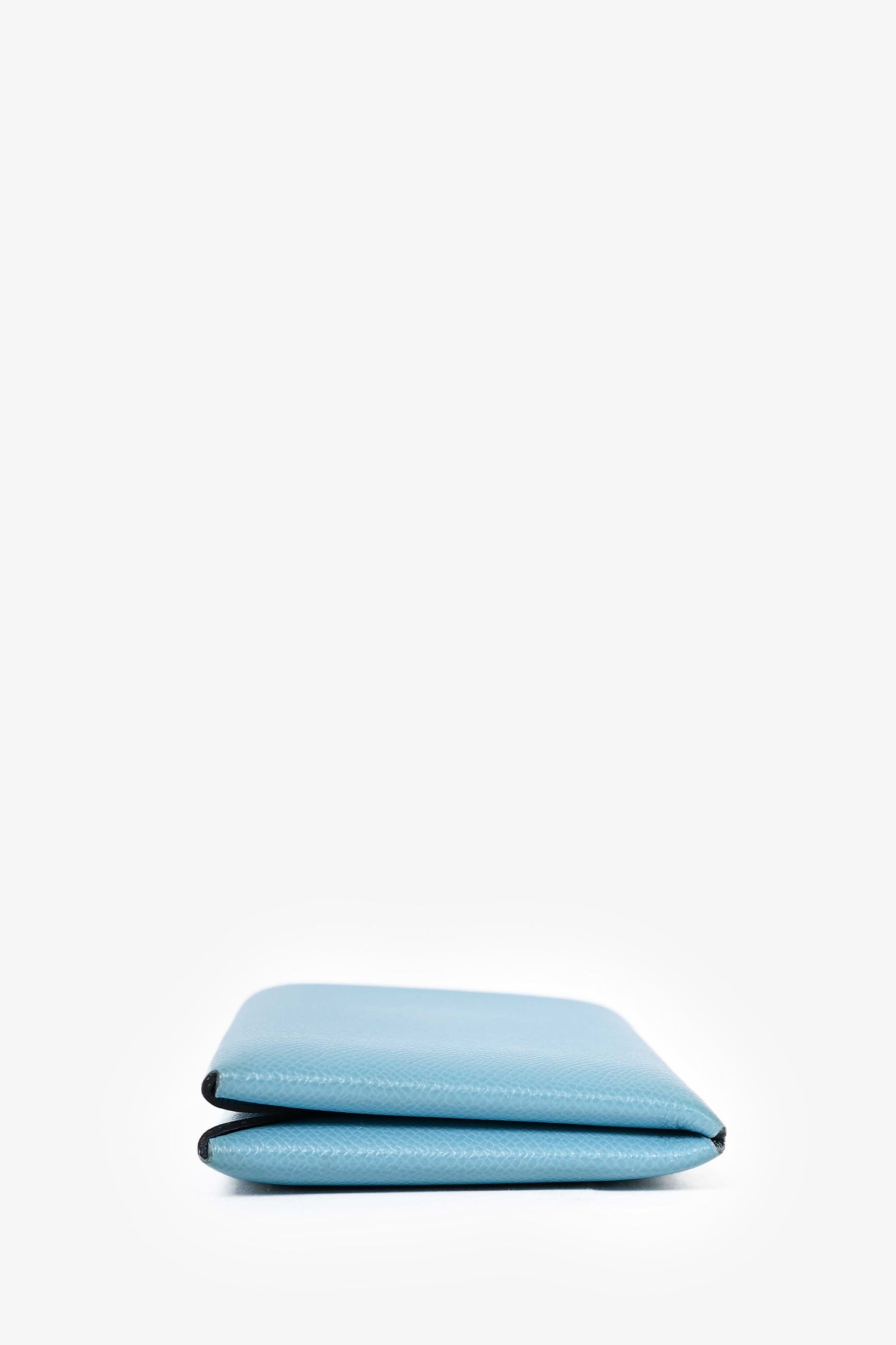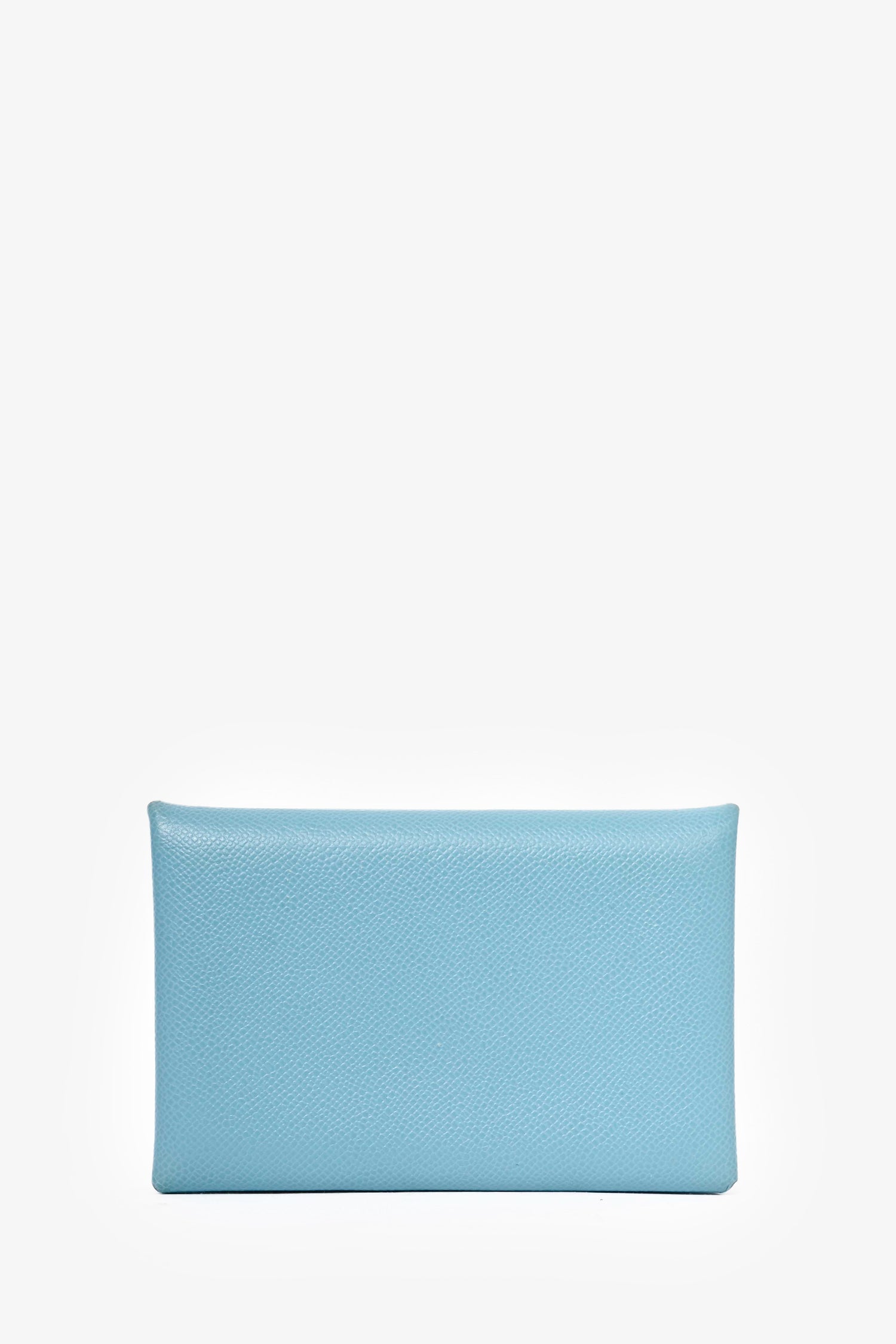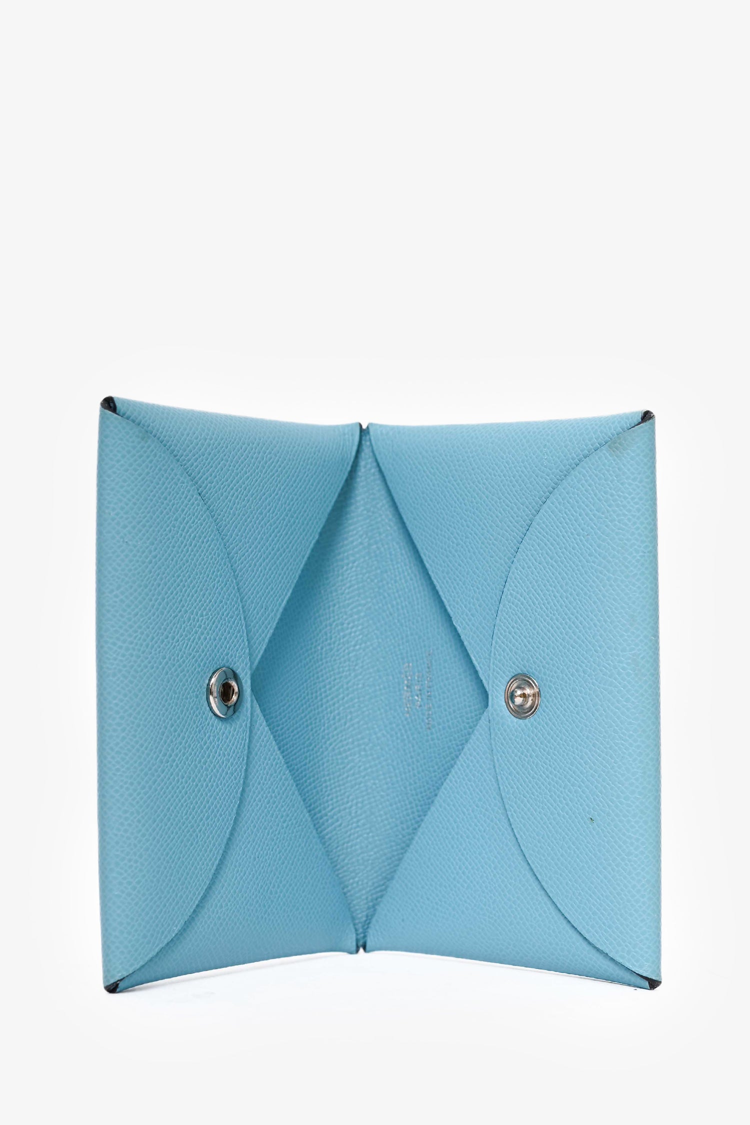Refresh availabilityHermès Blue Leather Calvi Wallet. Bifold closure. Concealed snap closure. 2 card compartments. Coated trimming. Epsom leather. Tonal stitching.