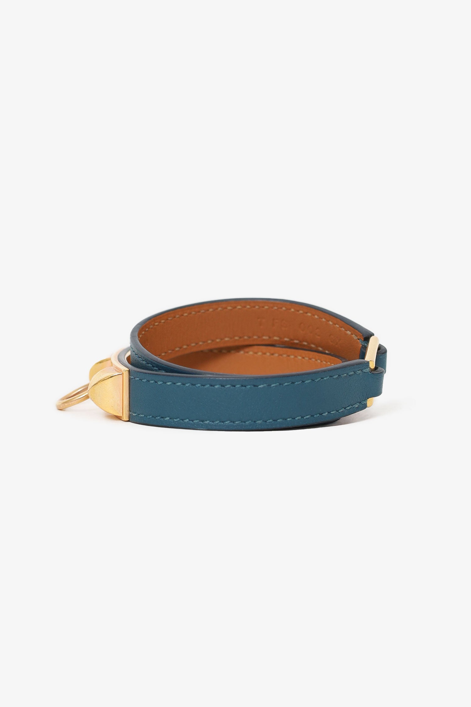 Hermès Blue Leather Gold Hardware Rivale Double Tour Bracelet