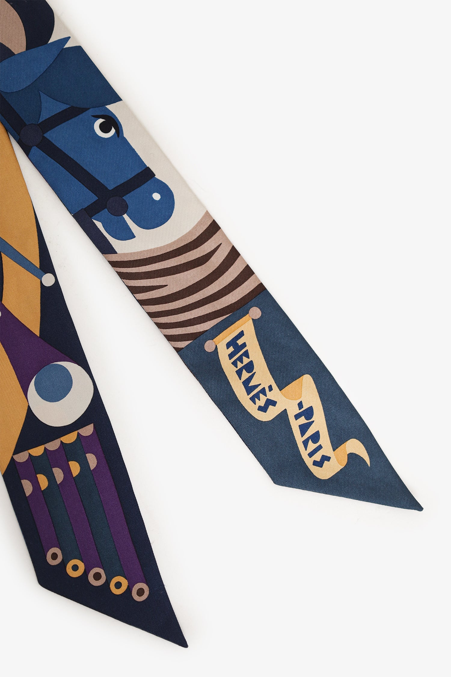 Refresh availabilityHermes Blue/Orange Silk Printed Twilly. Tonal stitching.