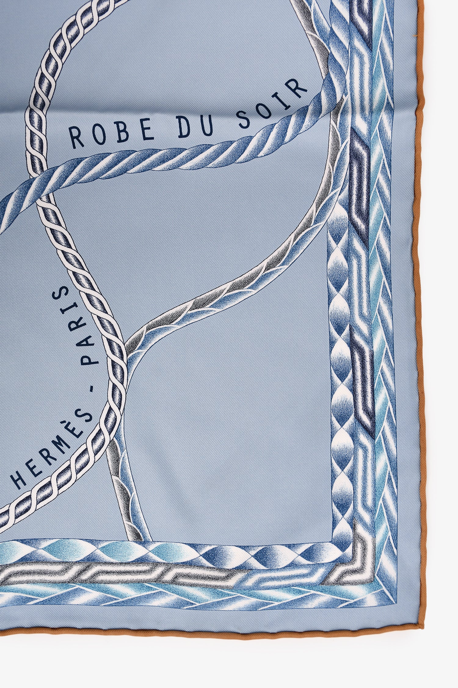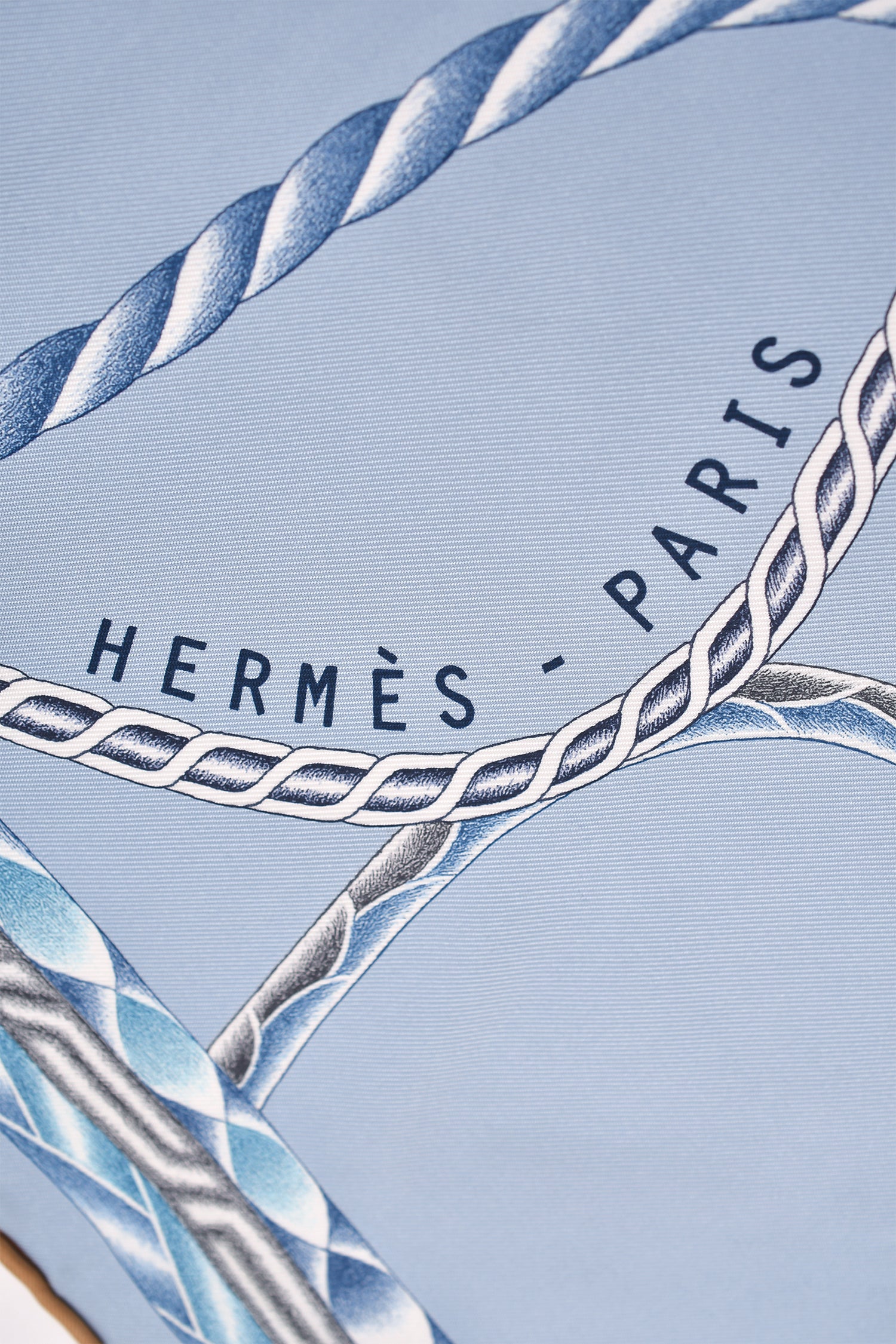 Refresh availabilityHermès Blue Printed Silk Scarf 90. Tonal stitching.