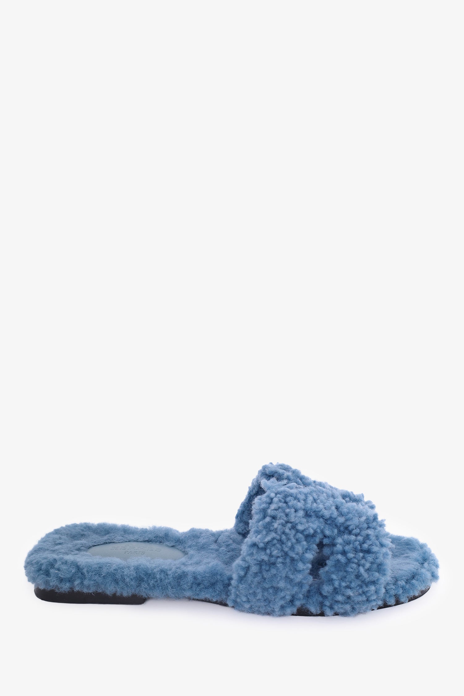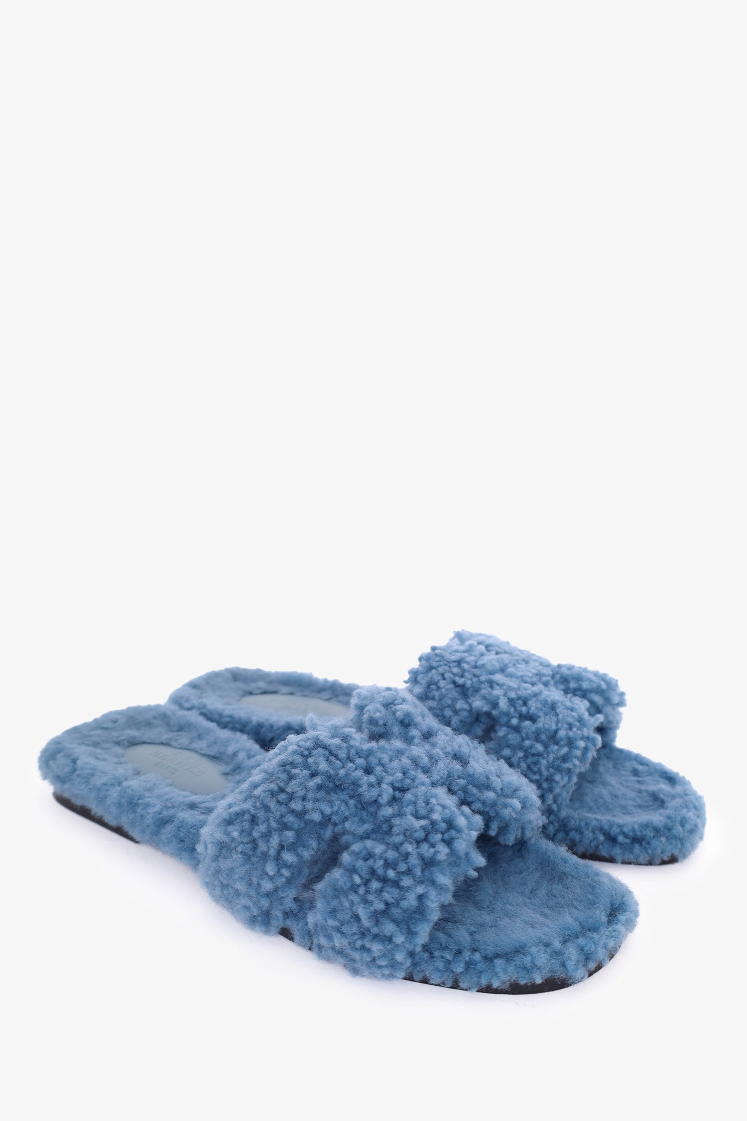 Refresh availabilityHermès Blue Shearling Oran Sandals. Slip-on. Square toe. Comes with dust bags and box.