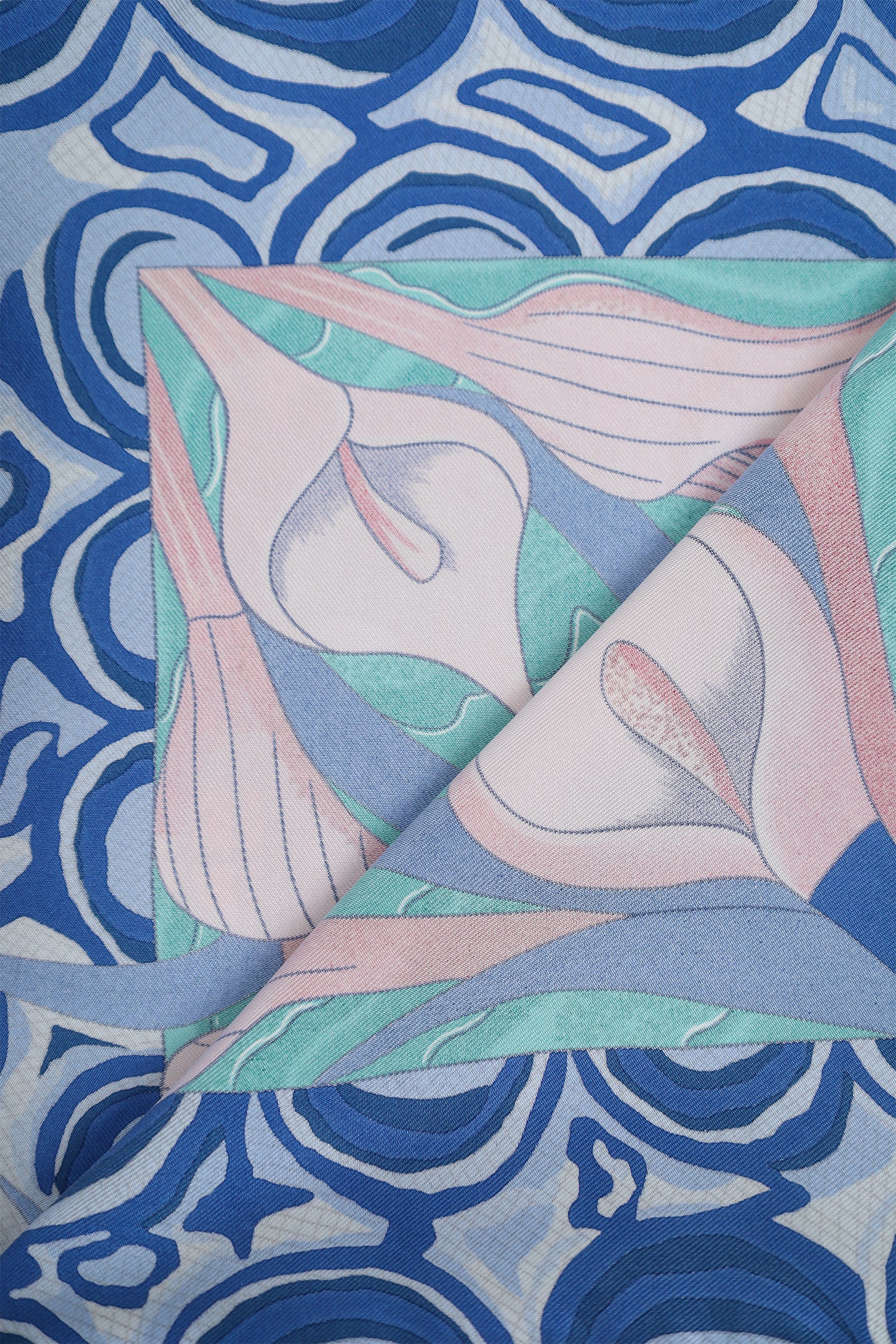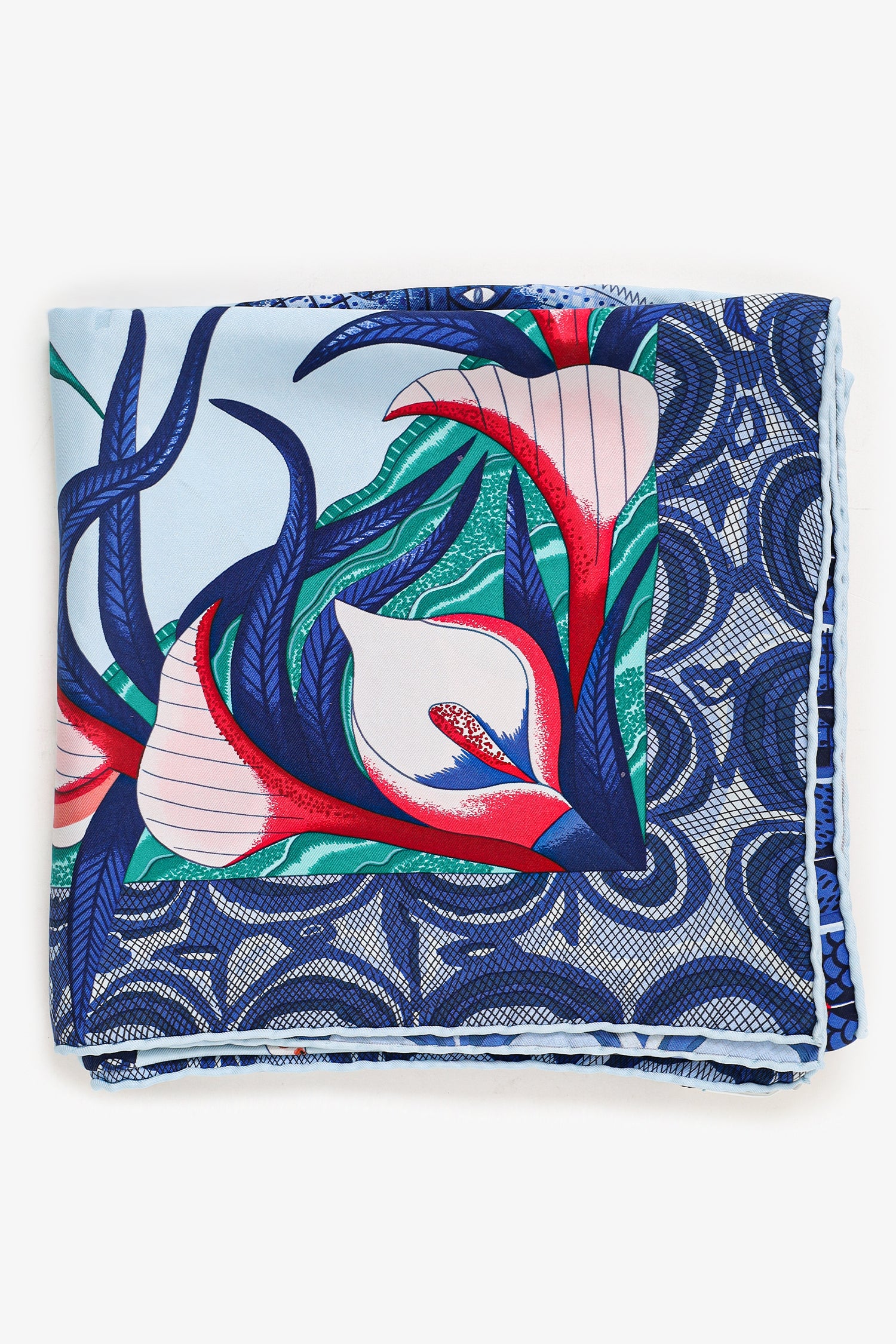 Refresh availabilityHermès Blue Silk 'La Marche du Zambeze' Scarf. Tonal stitching.