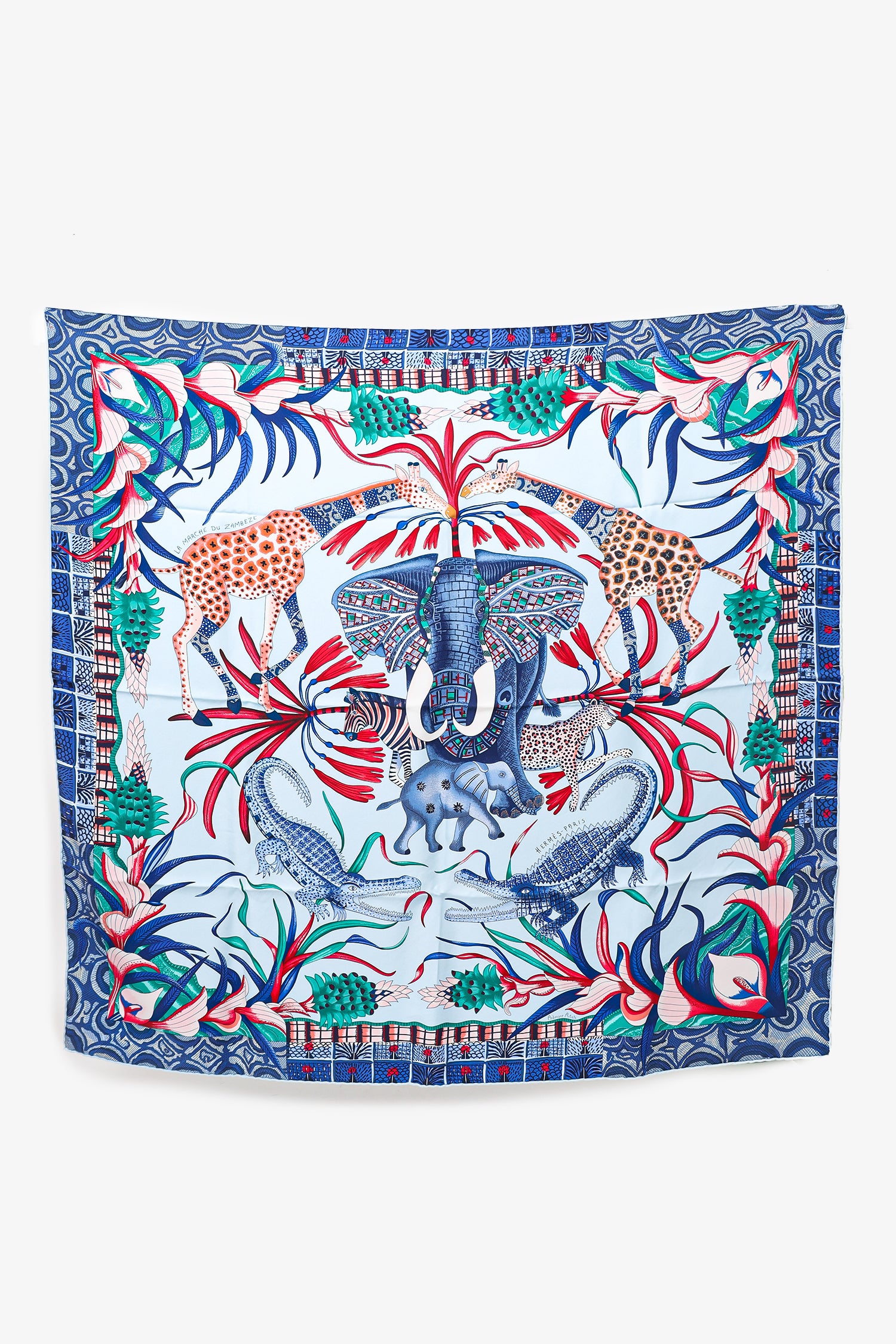 Hermès Blue Silk 'La Marche du Zambeze' Scarf Size 90cm