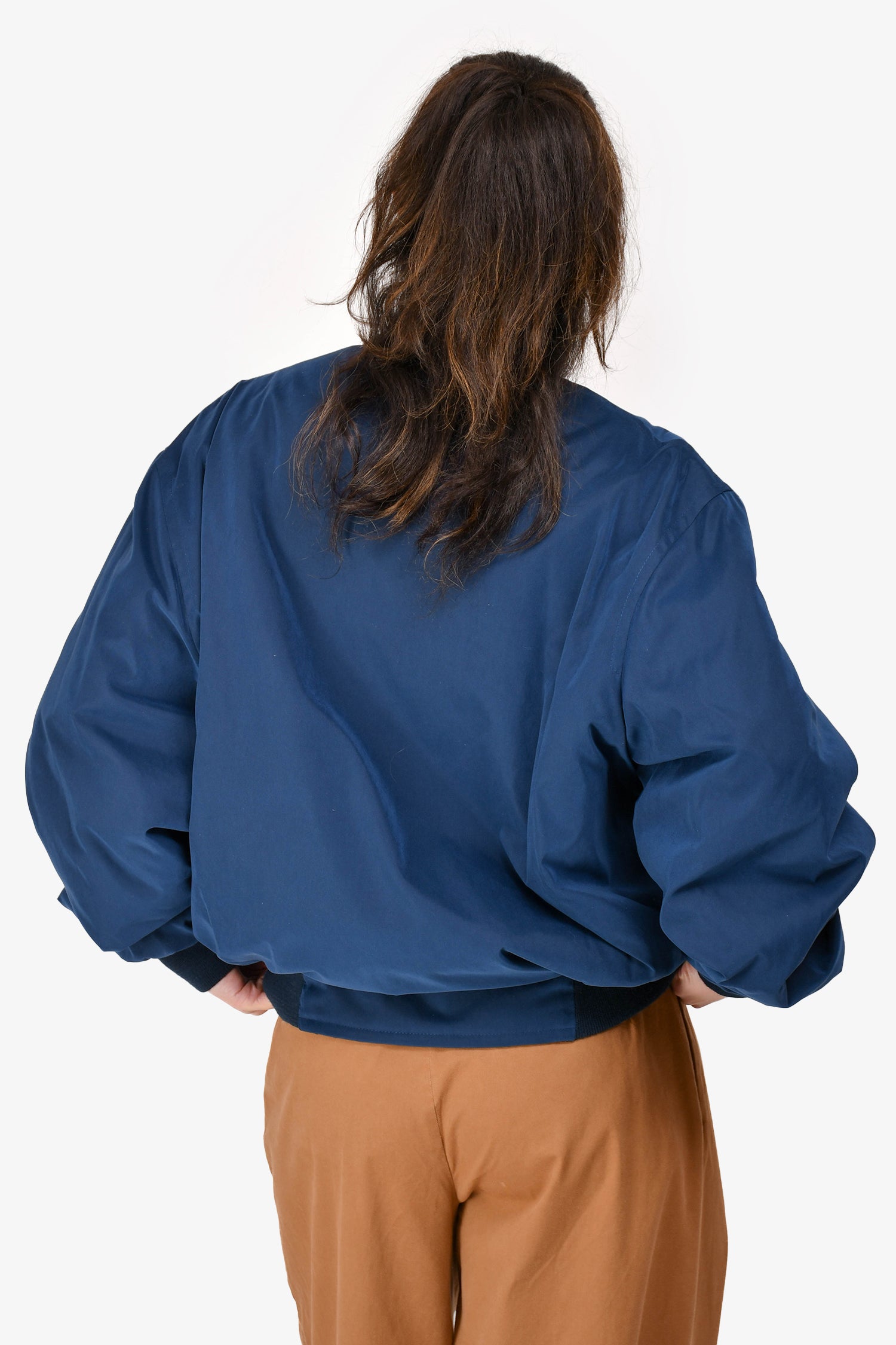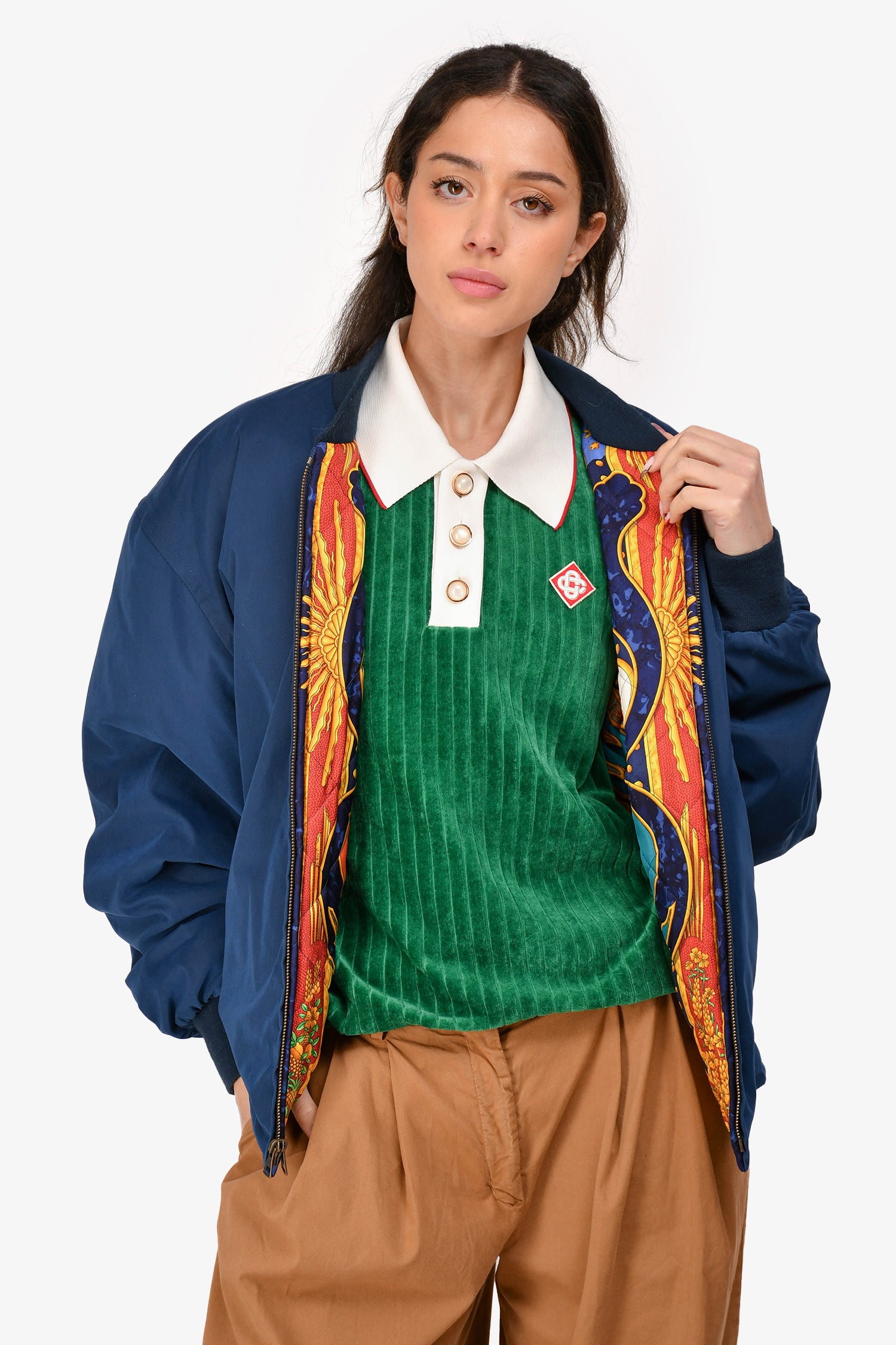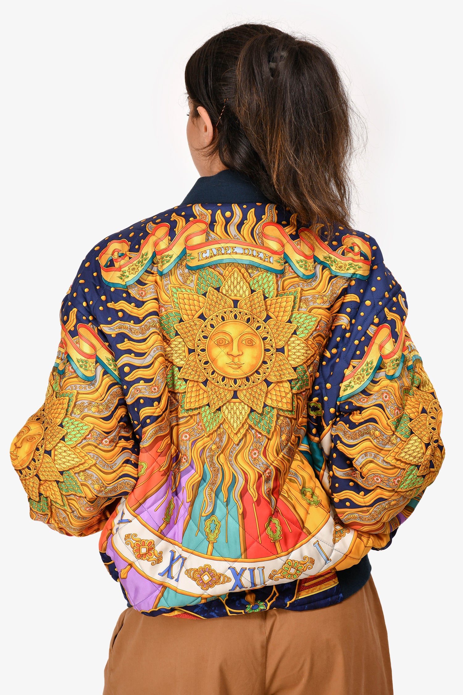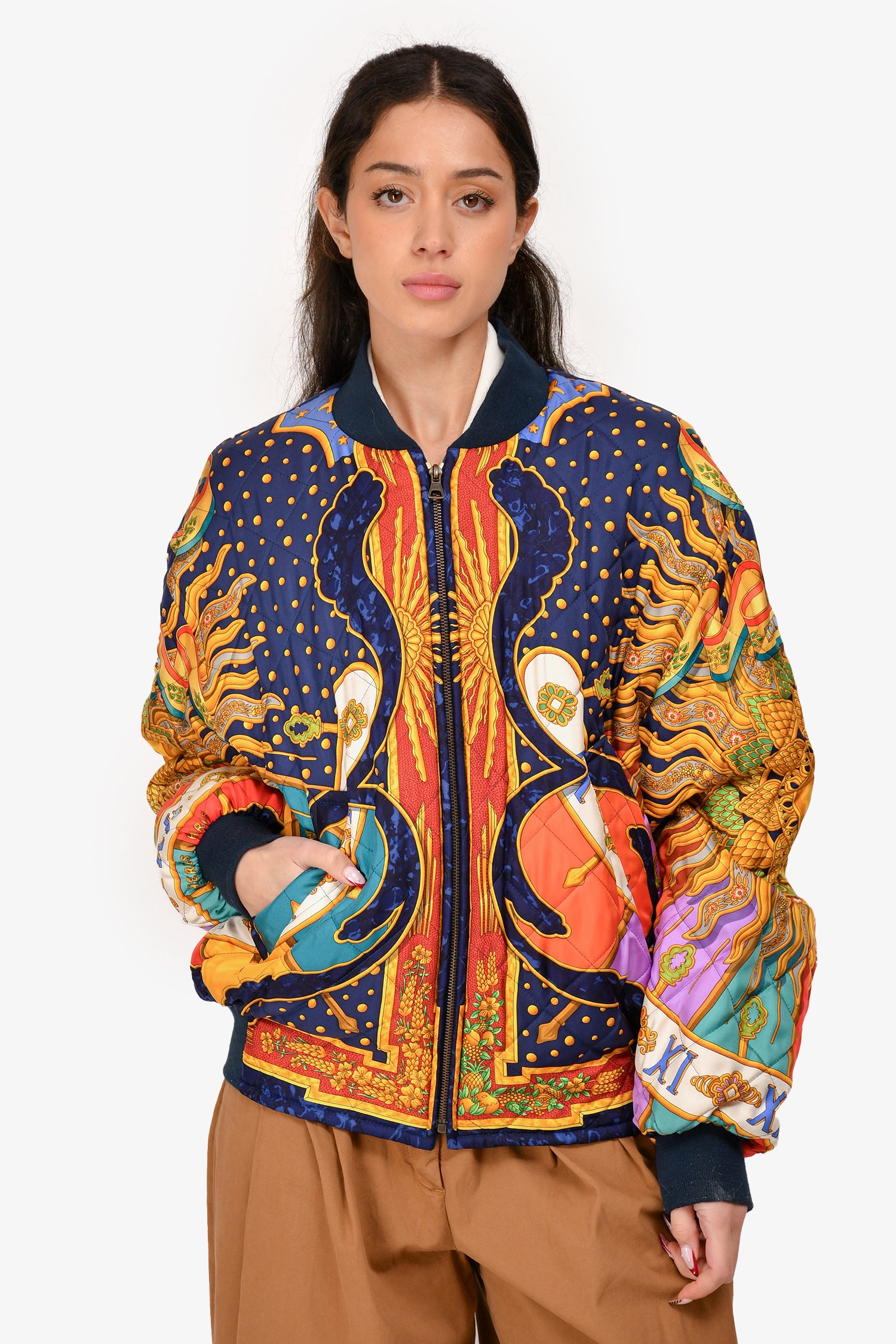 Hermès Blue Silk Reversible Bomber Jacket Size 50
