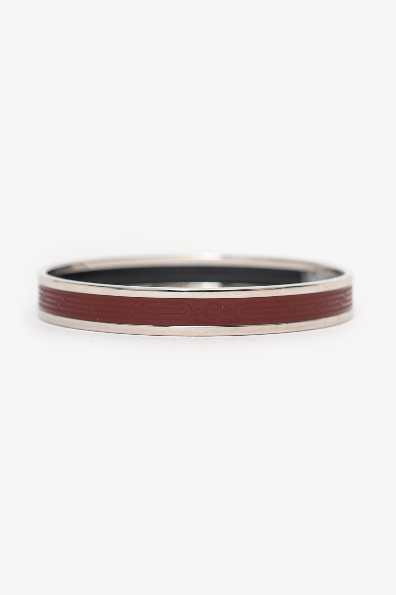 Refresh availabilityHermes Bordeaux Colour Sellier Bangle. Palladium-tone hardware.