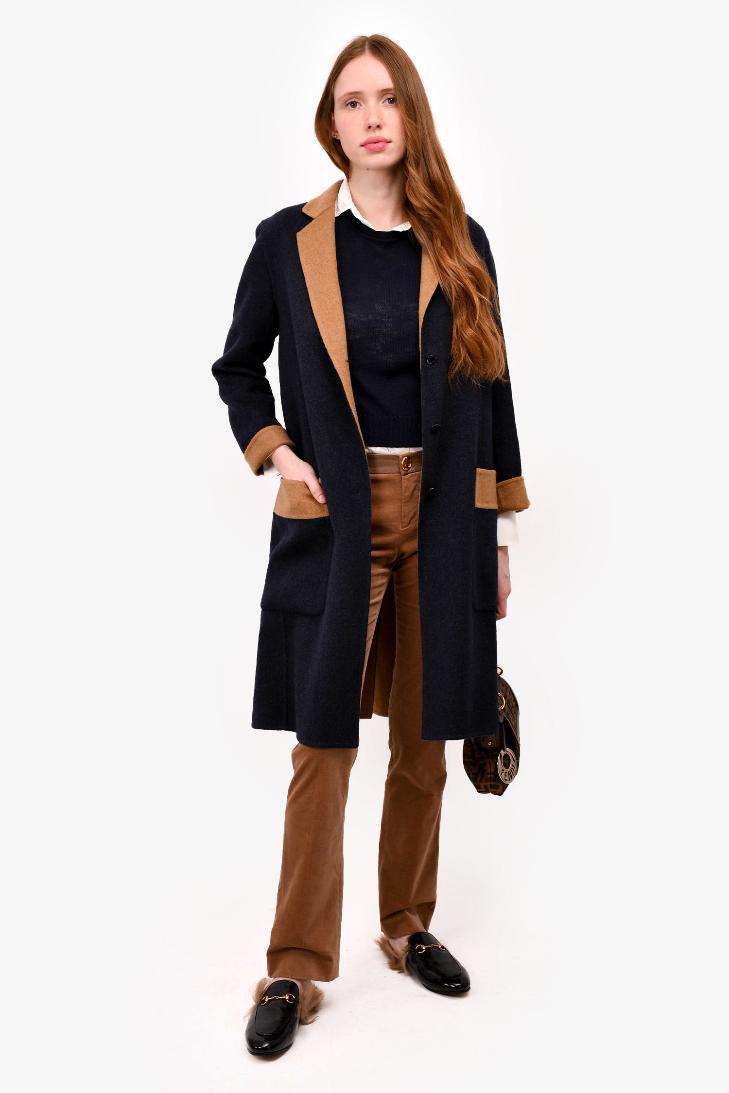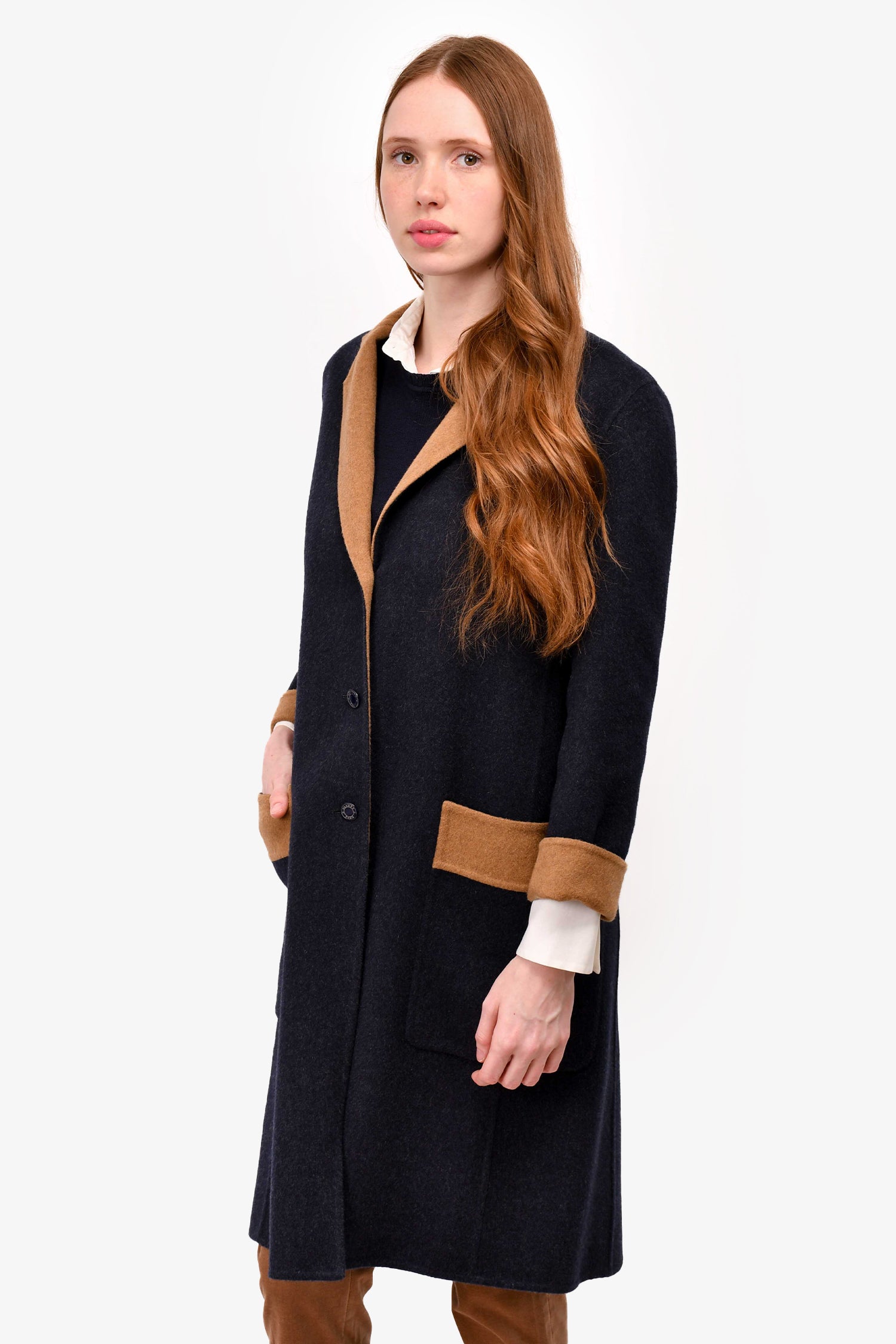 Hermès Charcoal Grey/Beige Cashmere Coat Size 38
