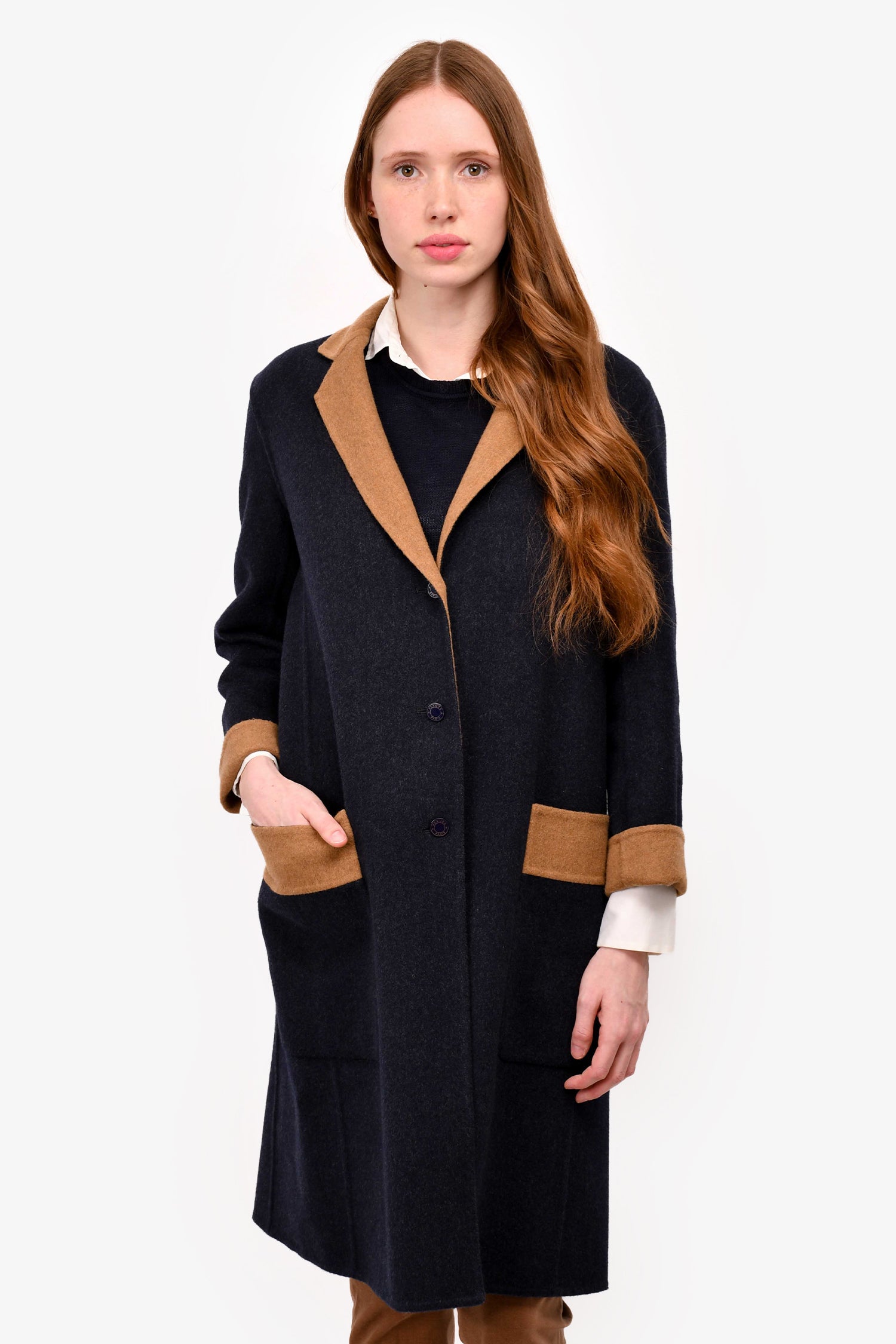 Refresh availabilityHermès Charcoal Grey/Beige Cashmere Coat Size 38. Tonal stitching. Colour blocked. Front button closure. 2 front pockets.