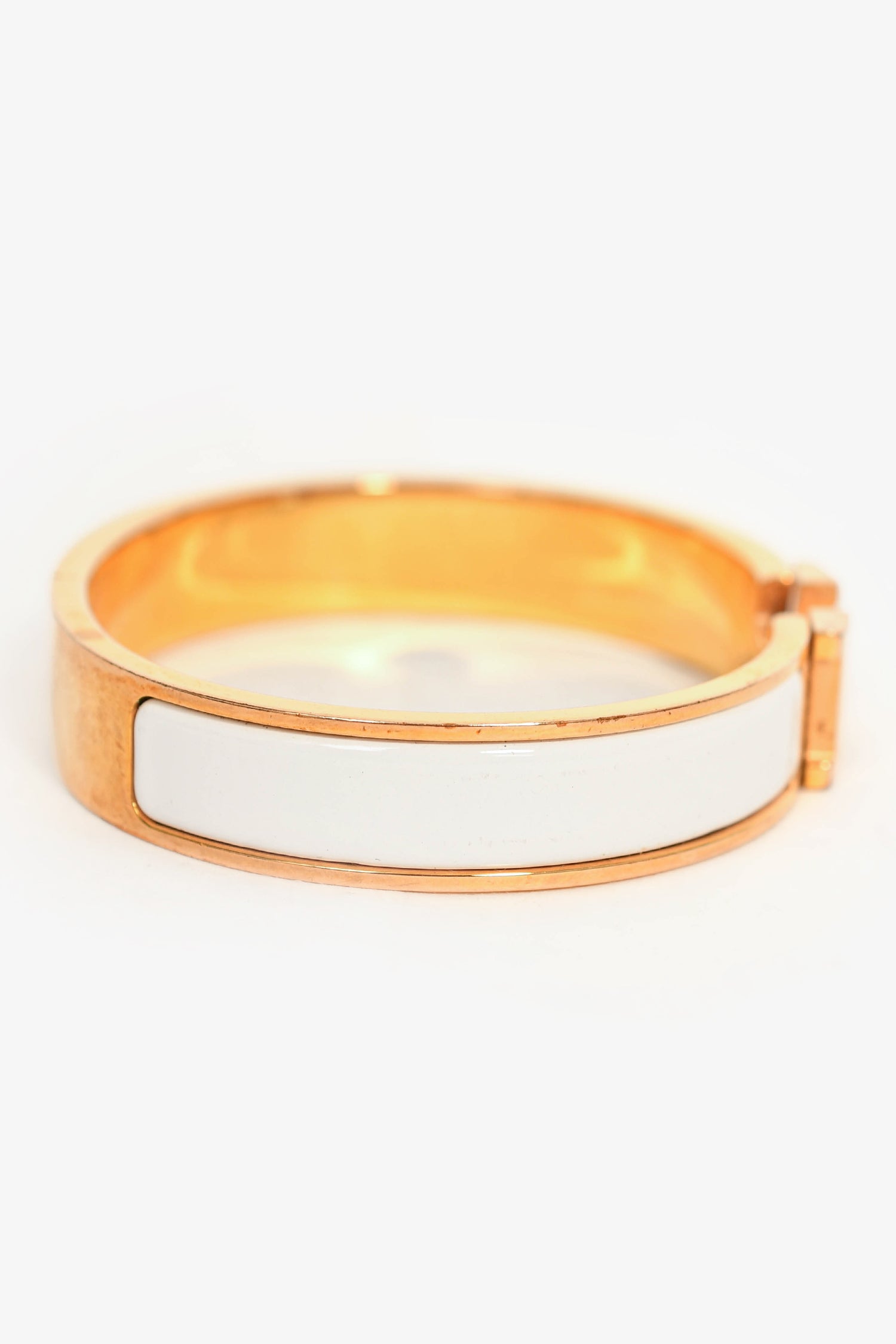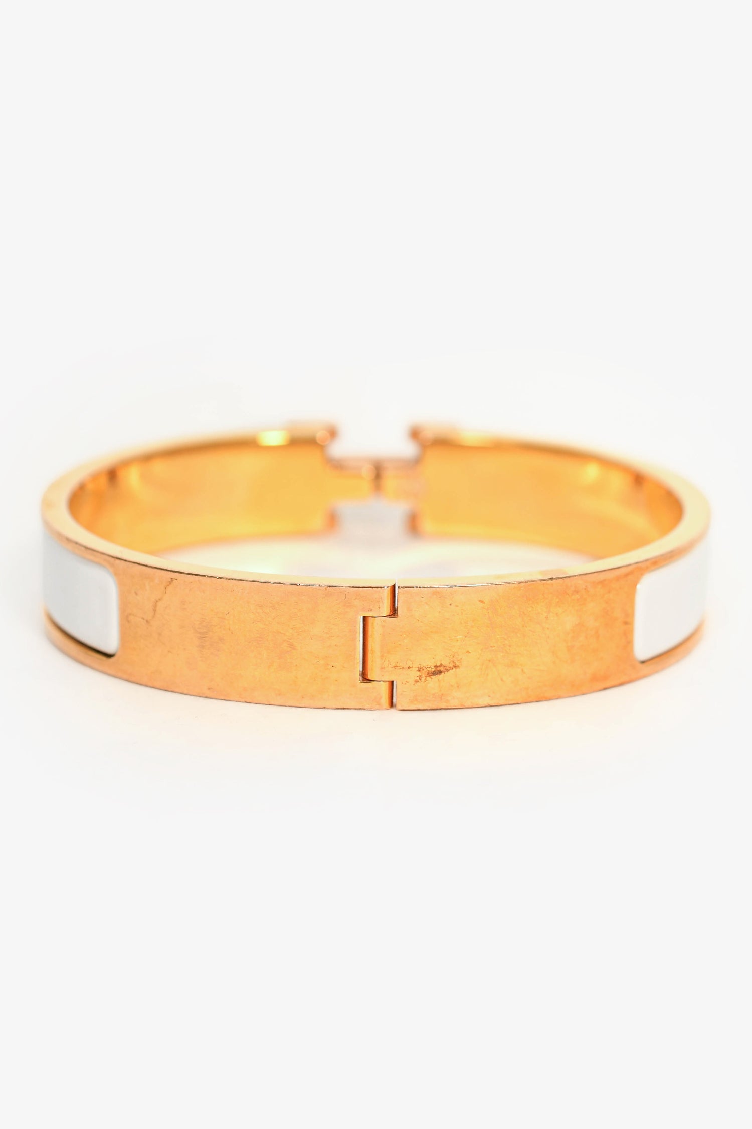 Hermès Gold Tone/White Metal/Enamel Clic Clac H Bracelet