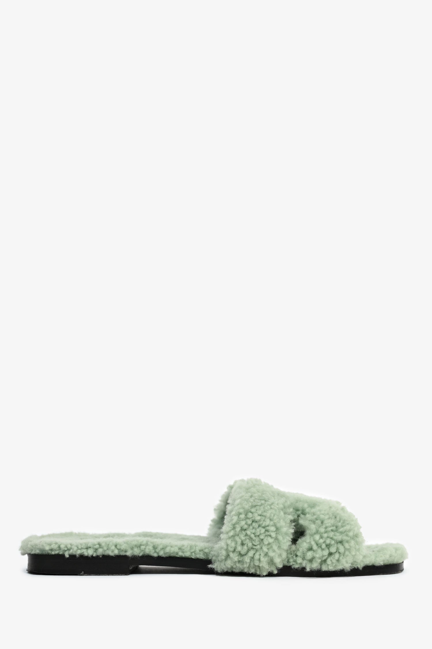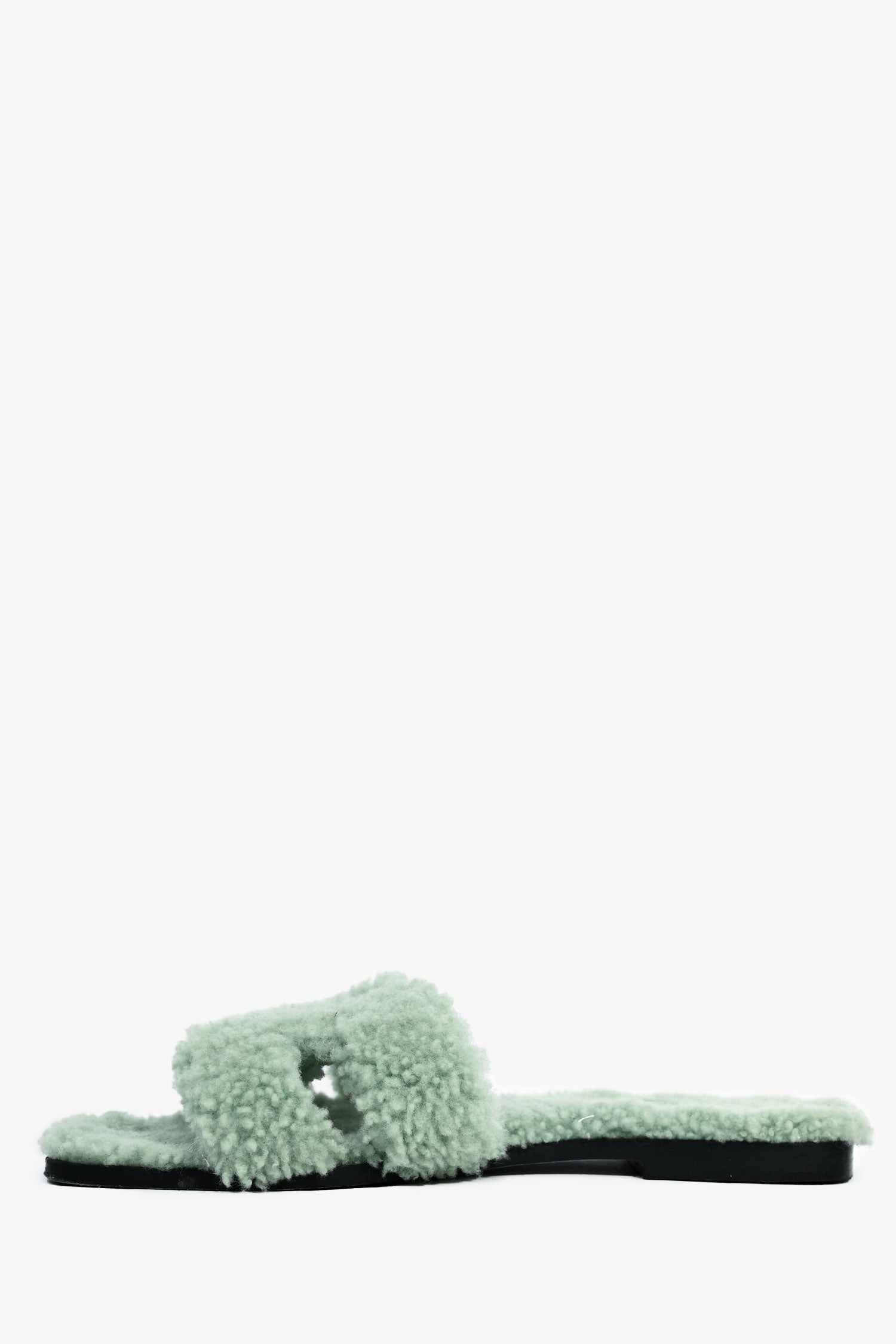 Refresh availabilityHermès Green Shearling 'Oran' Sandals. Open-toe. Slip-on. Tonal stitching.