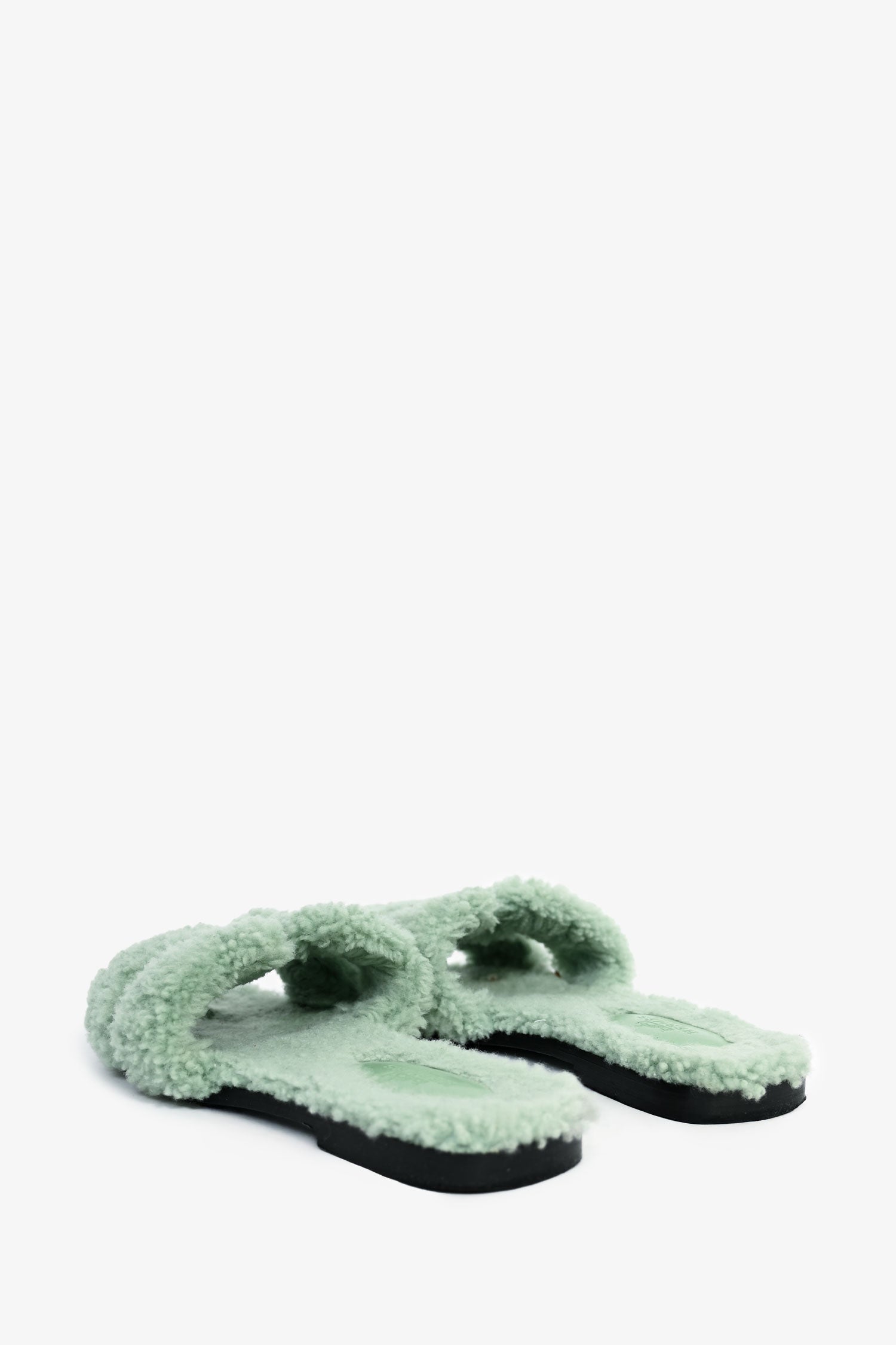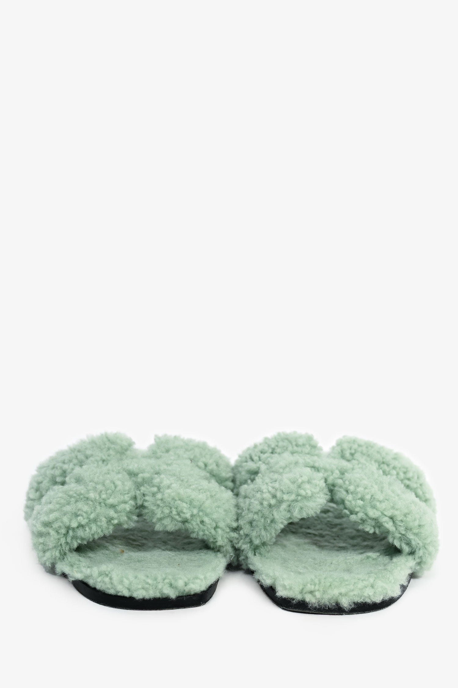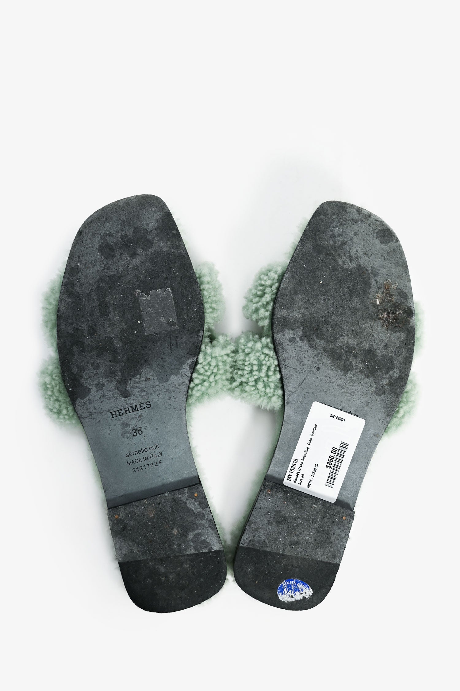 Hermès Green Shearling 'Oran' Sandals Size 38