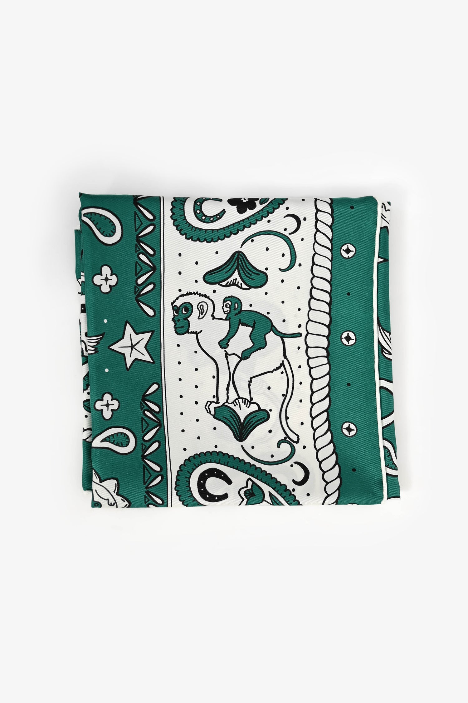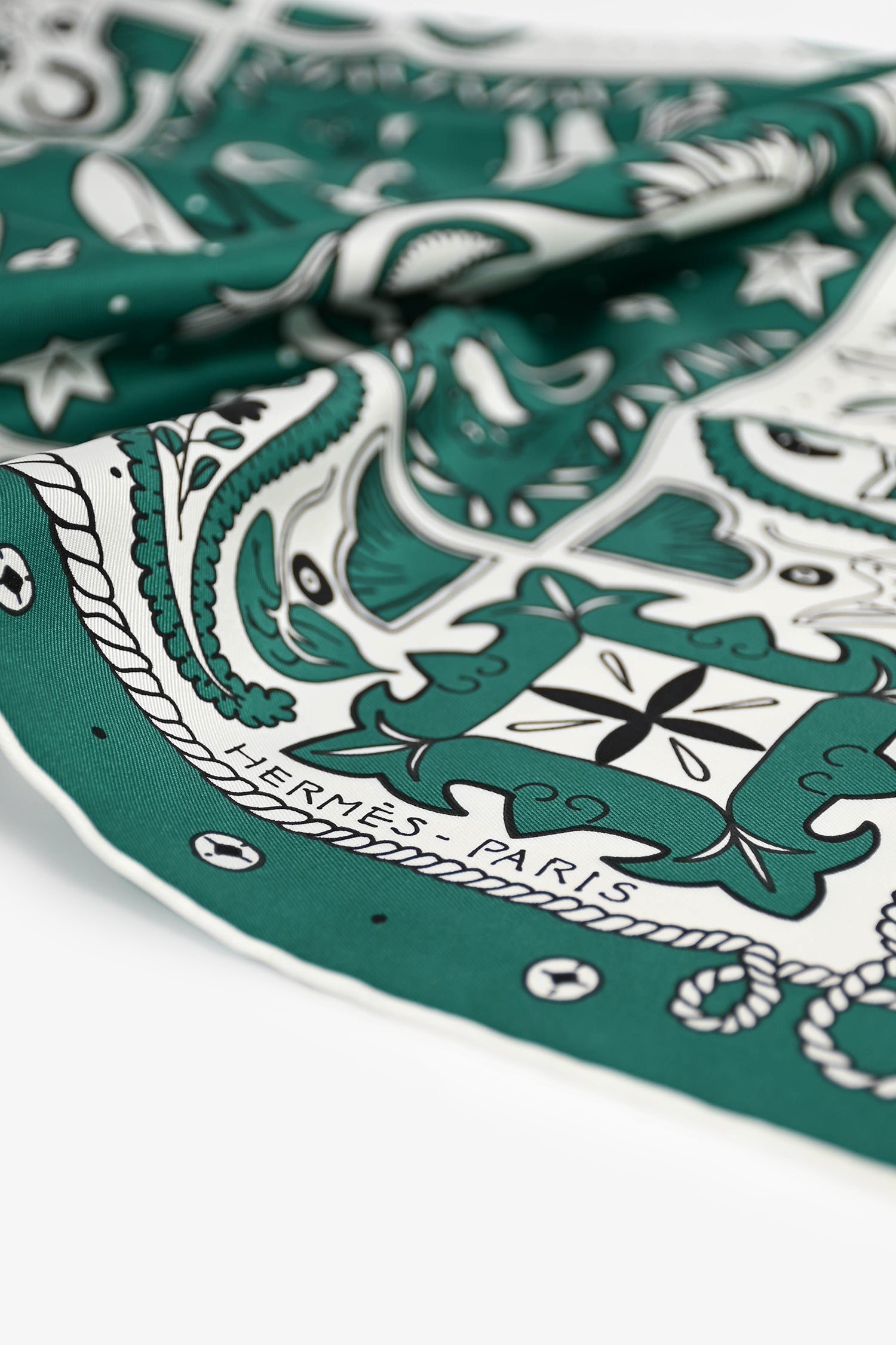 Refresh availabilityHermès Green/White Silk Scarf 55 Bandana. Tonal stitching.