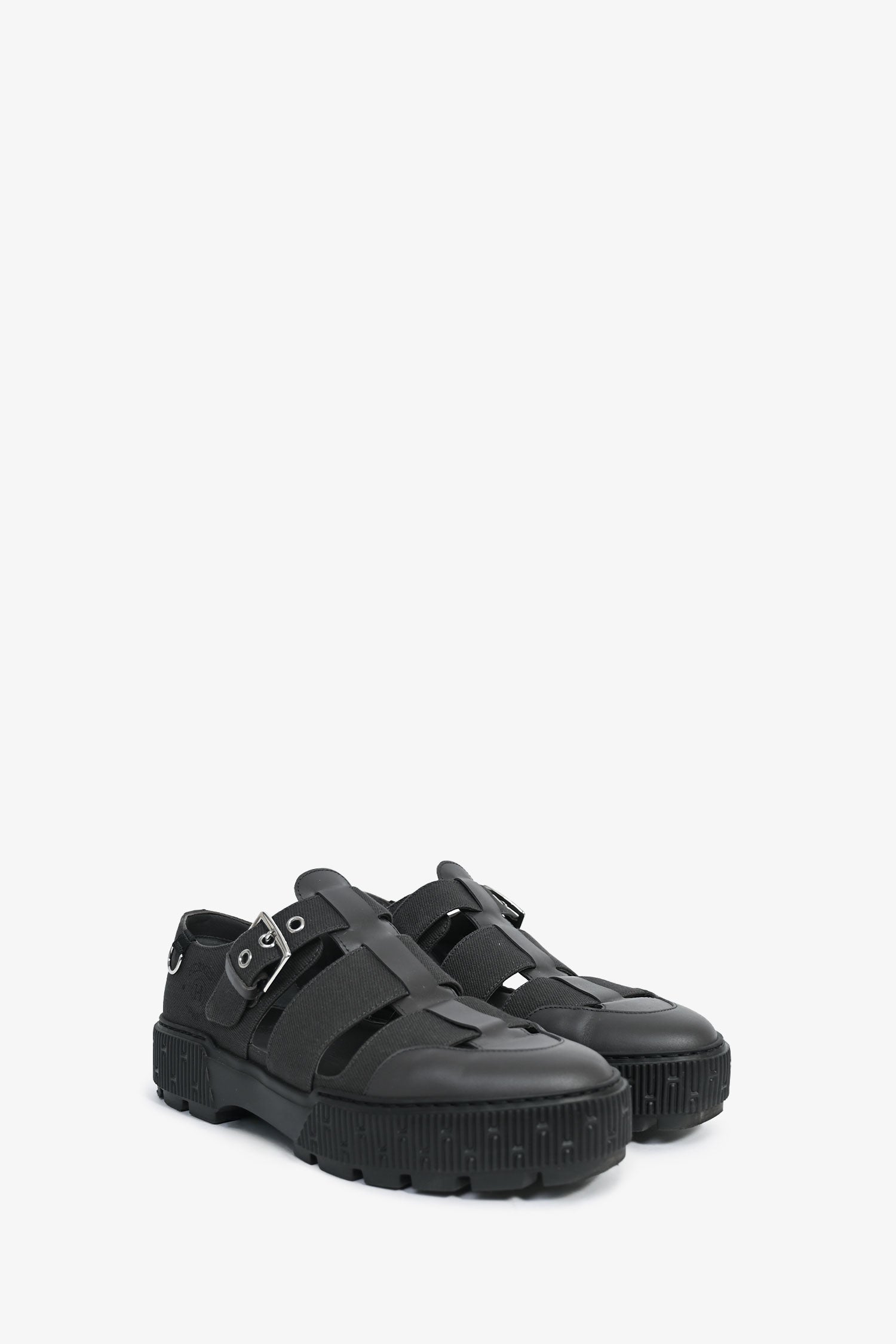Hermès Grey Leather/Canvas Fisherman Shoe Size 41