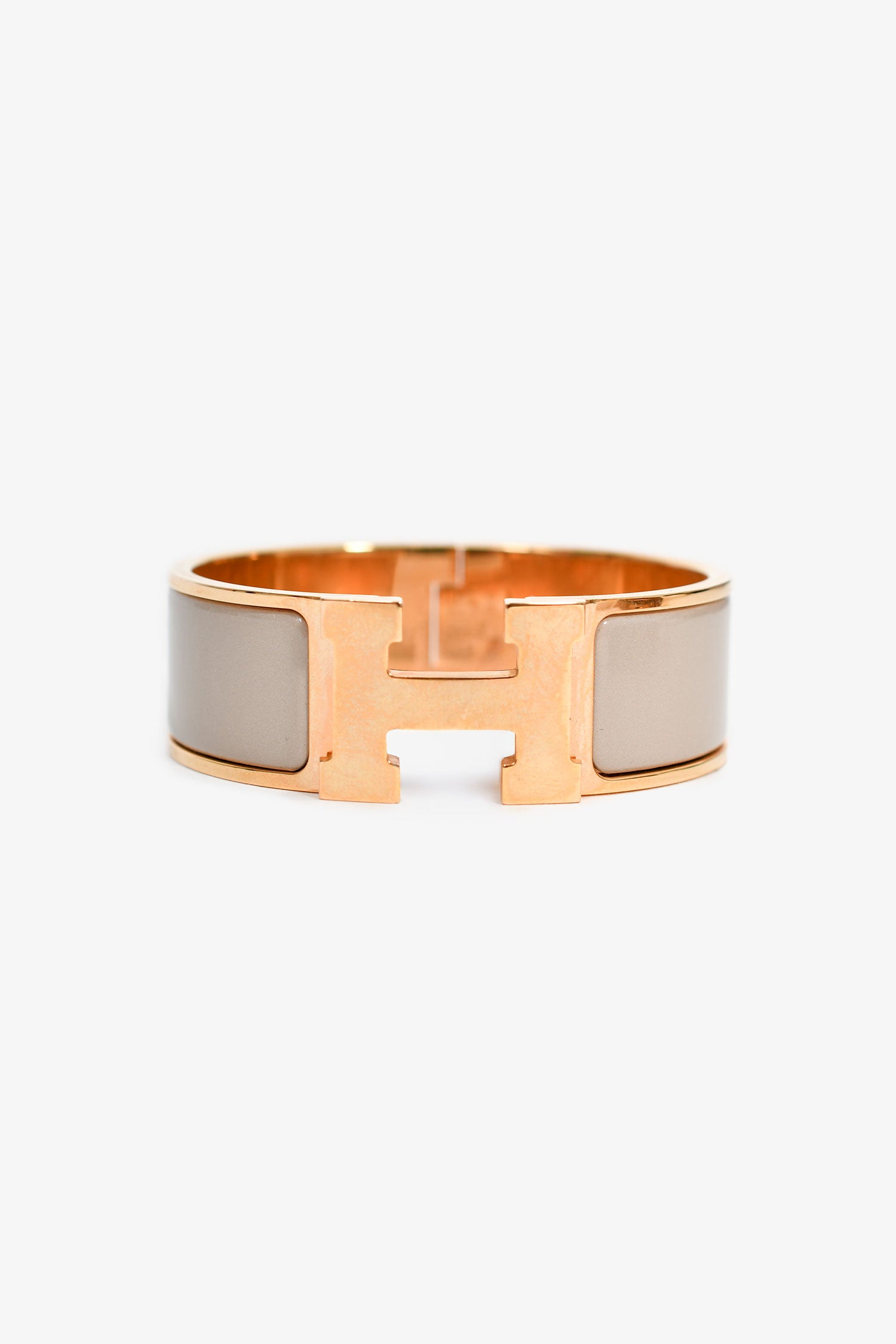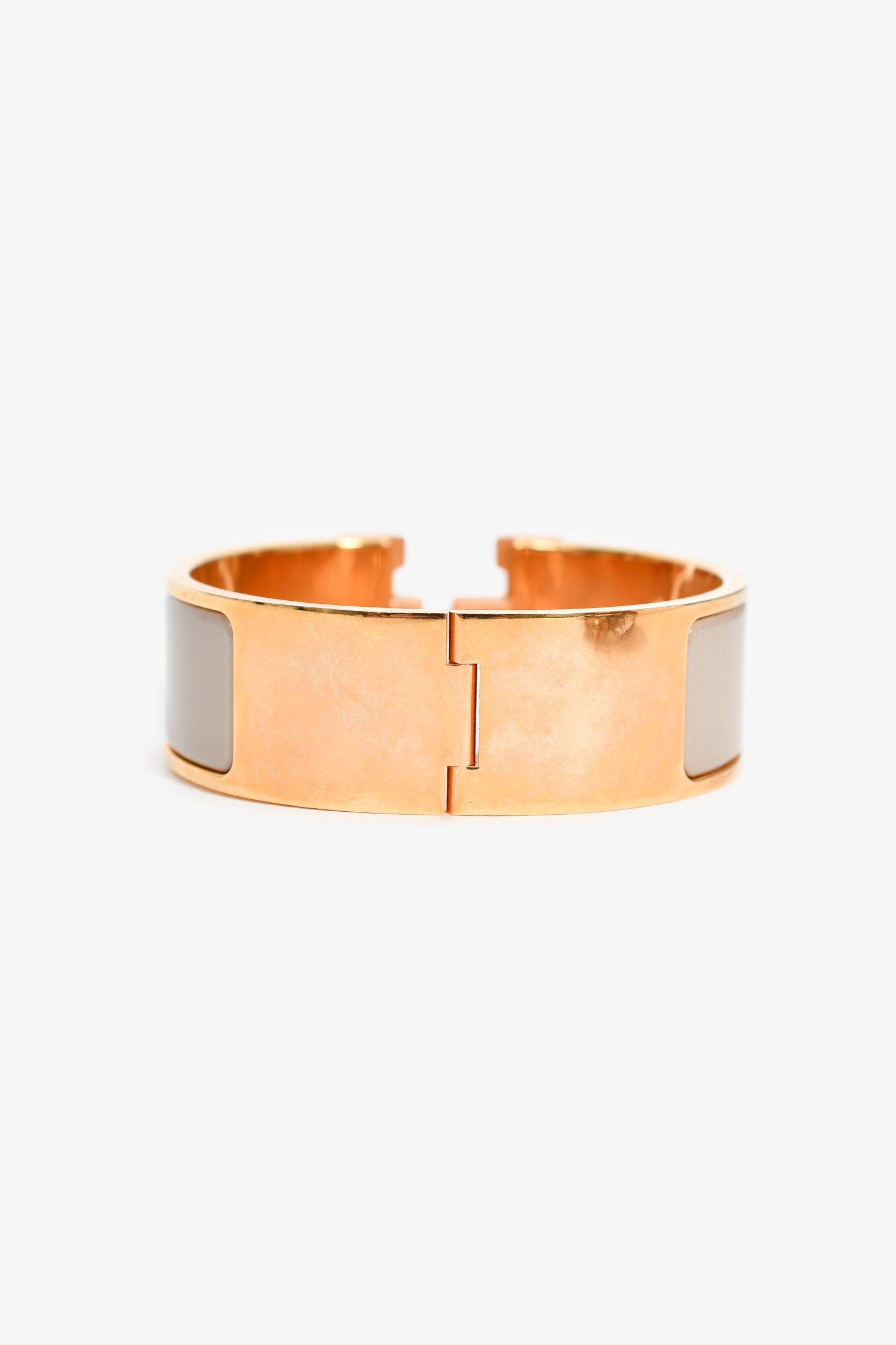 Hermès Taupe Enamel/Gold Toned Metal Clic Clac Bracelet