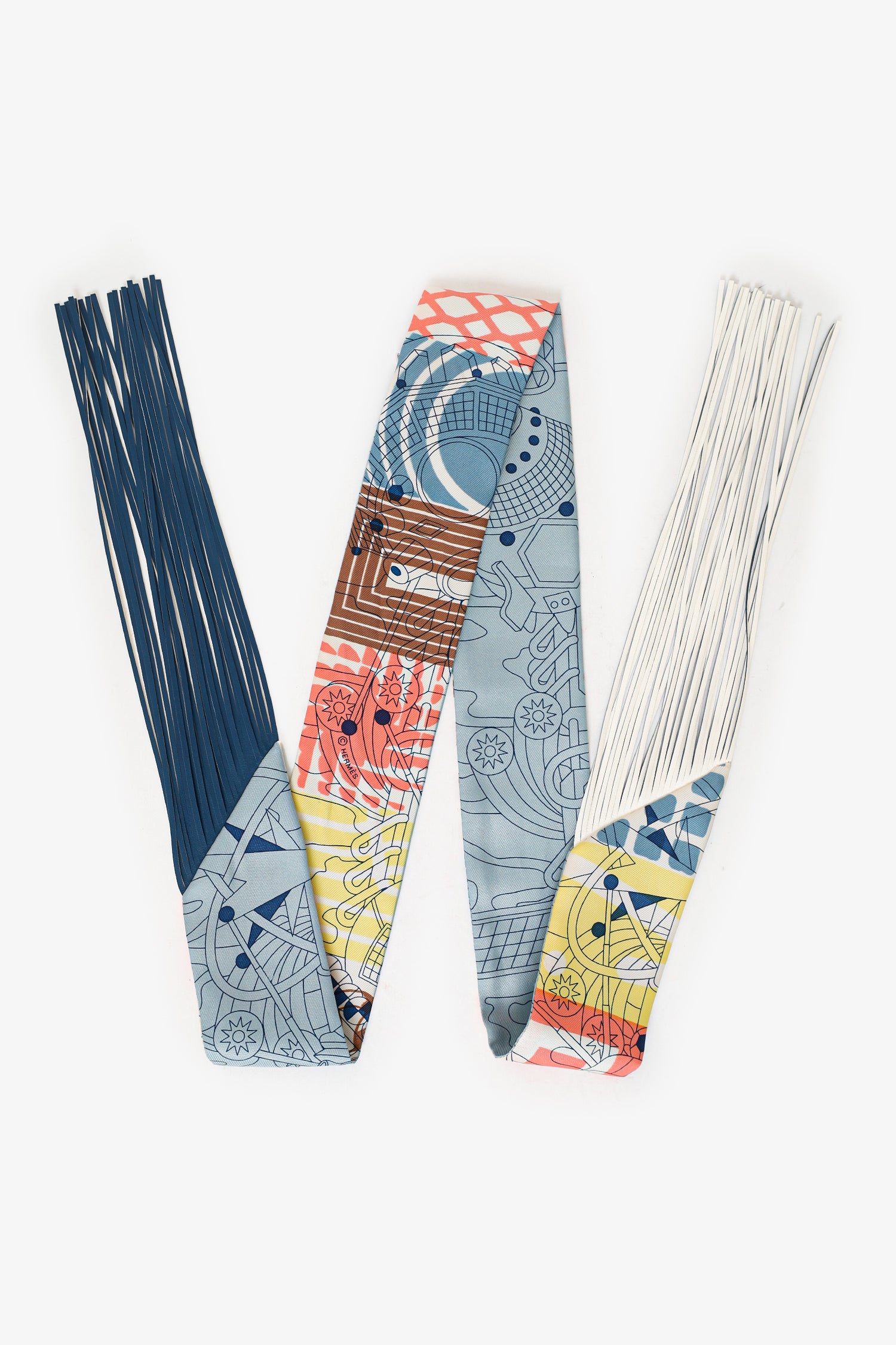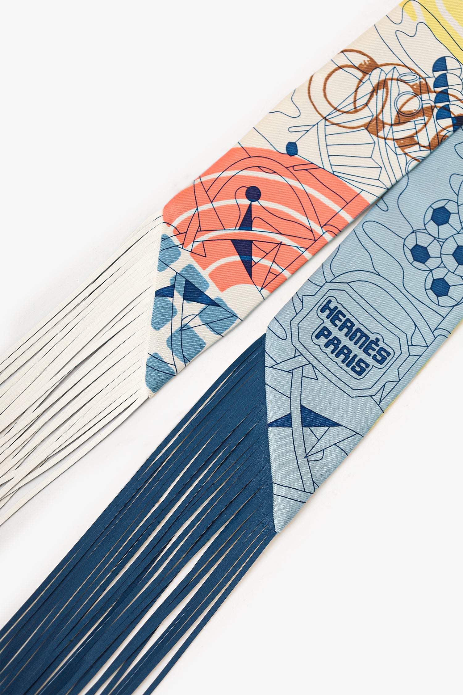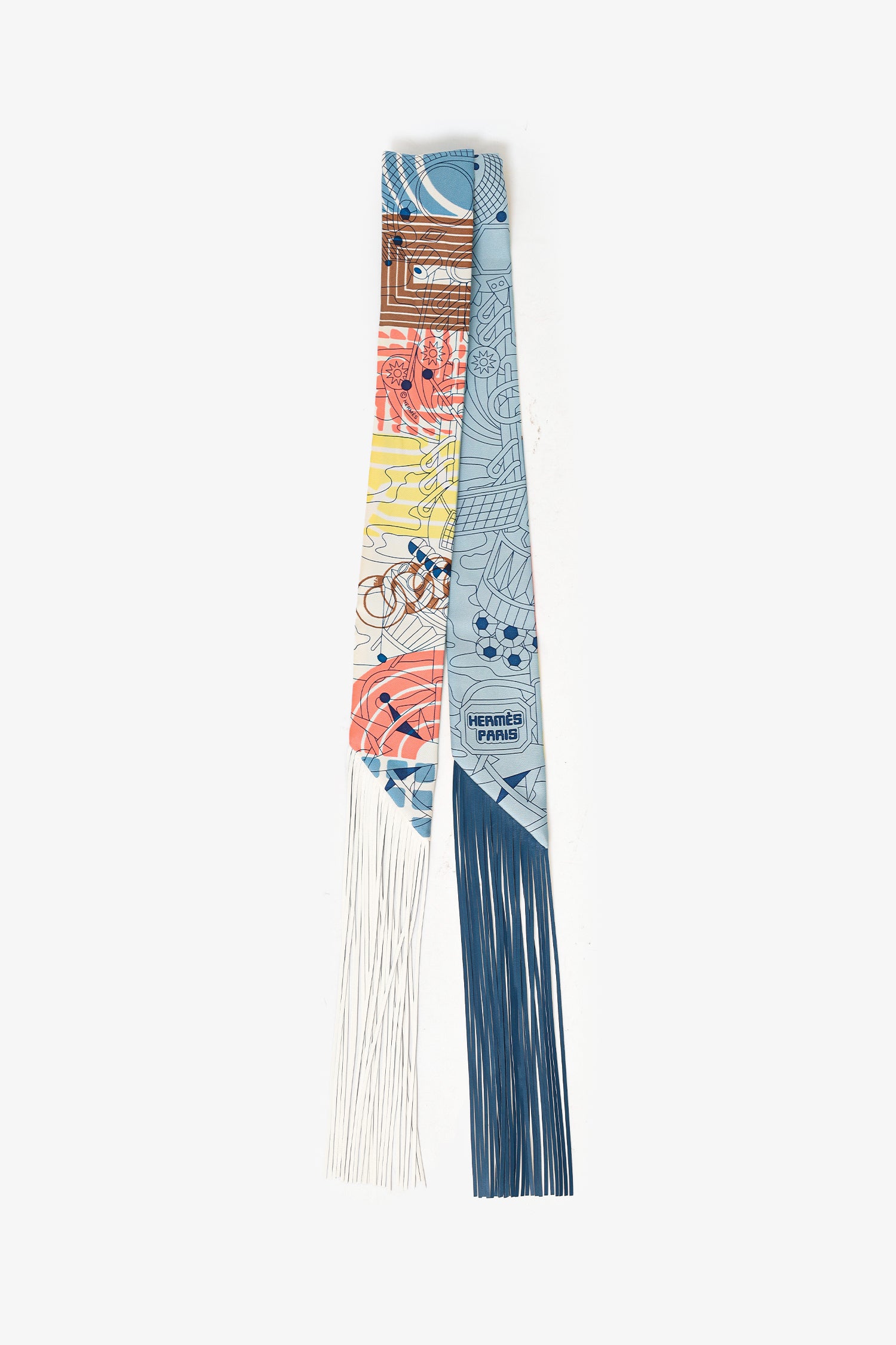 Refresh availabilityHermès Limited Edition Multicolour Silk Fringe Au Bloc Twilly. Fringes on each end. Tonal stitching.