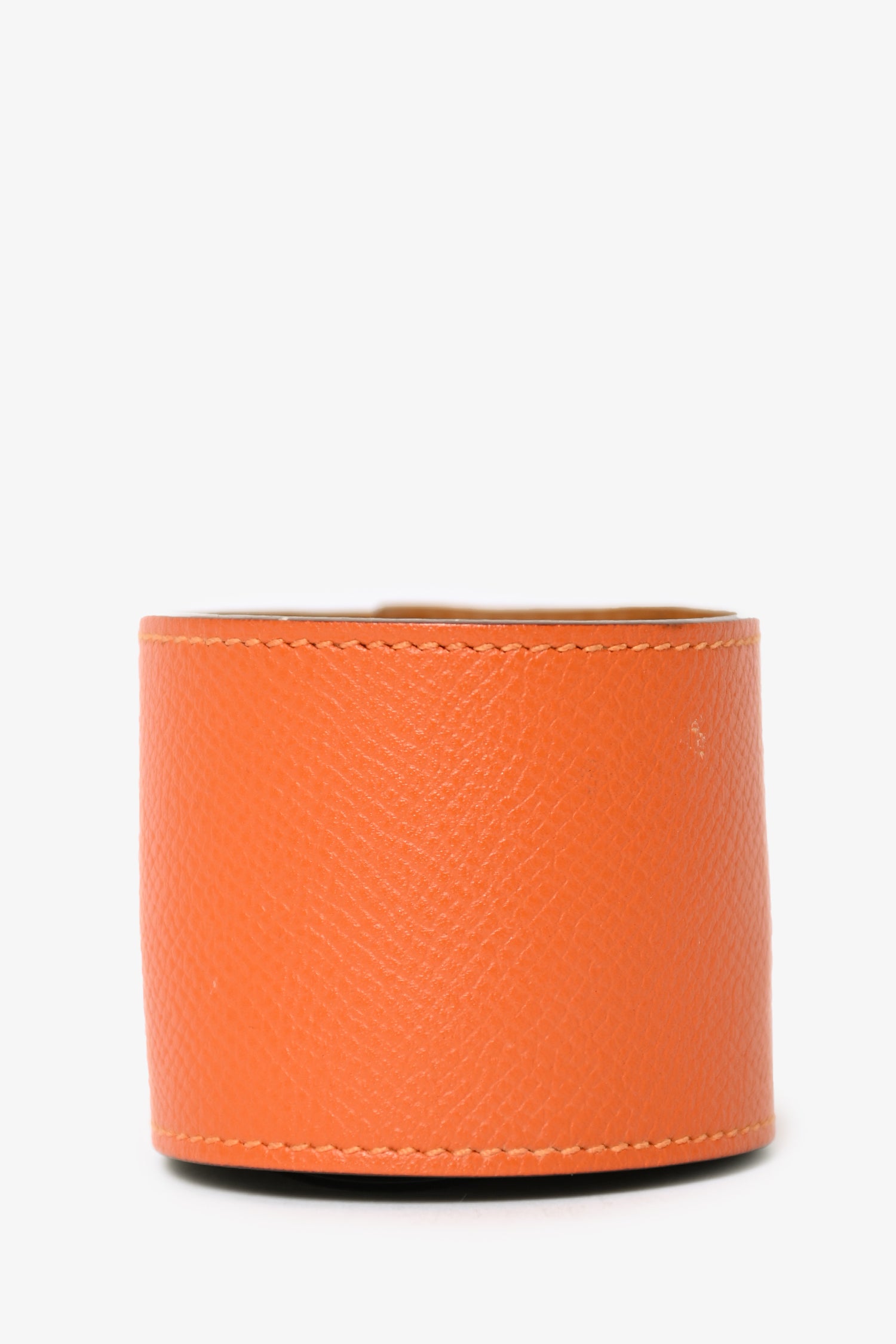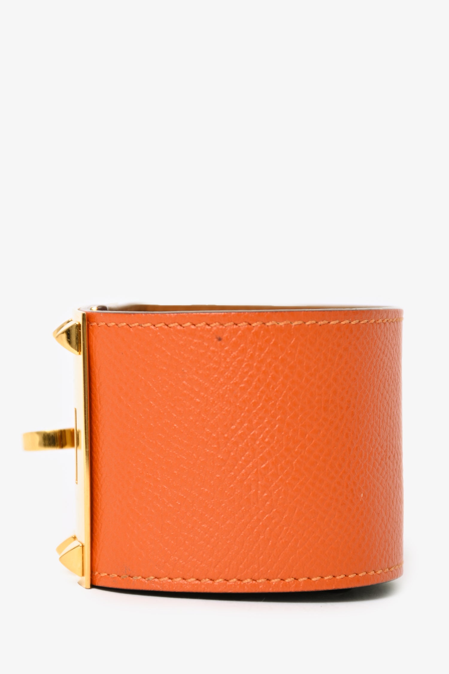 Hermes Orange/Gold Leather Collier De Chien Bracelet. Tonal stitching. Leather trimming. Adjustable closure.